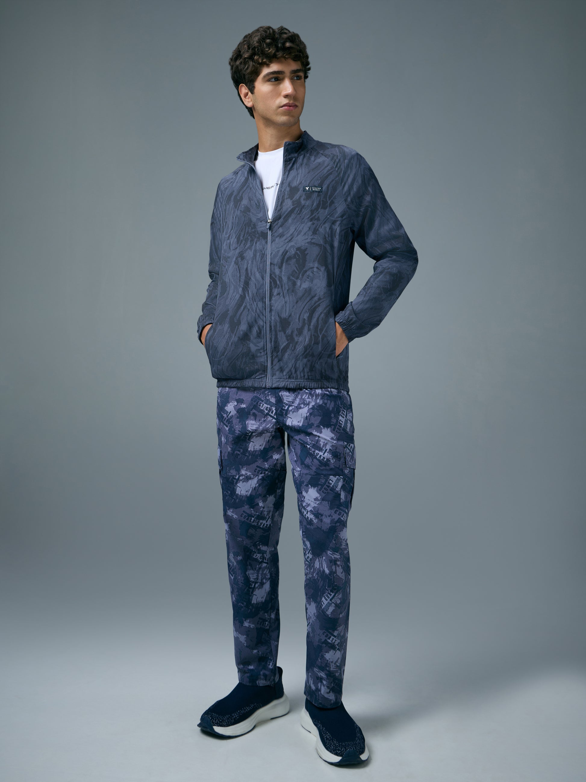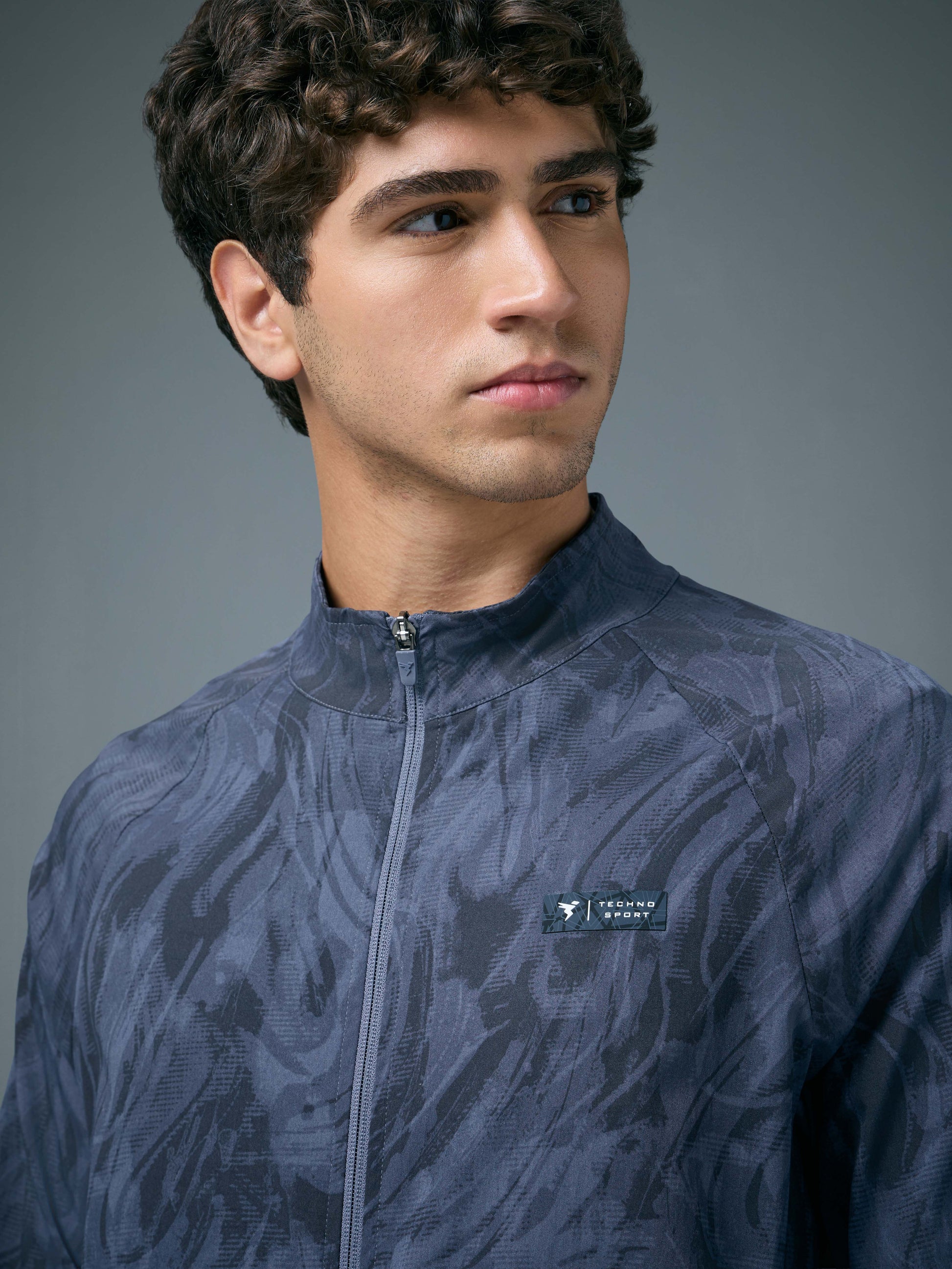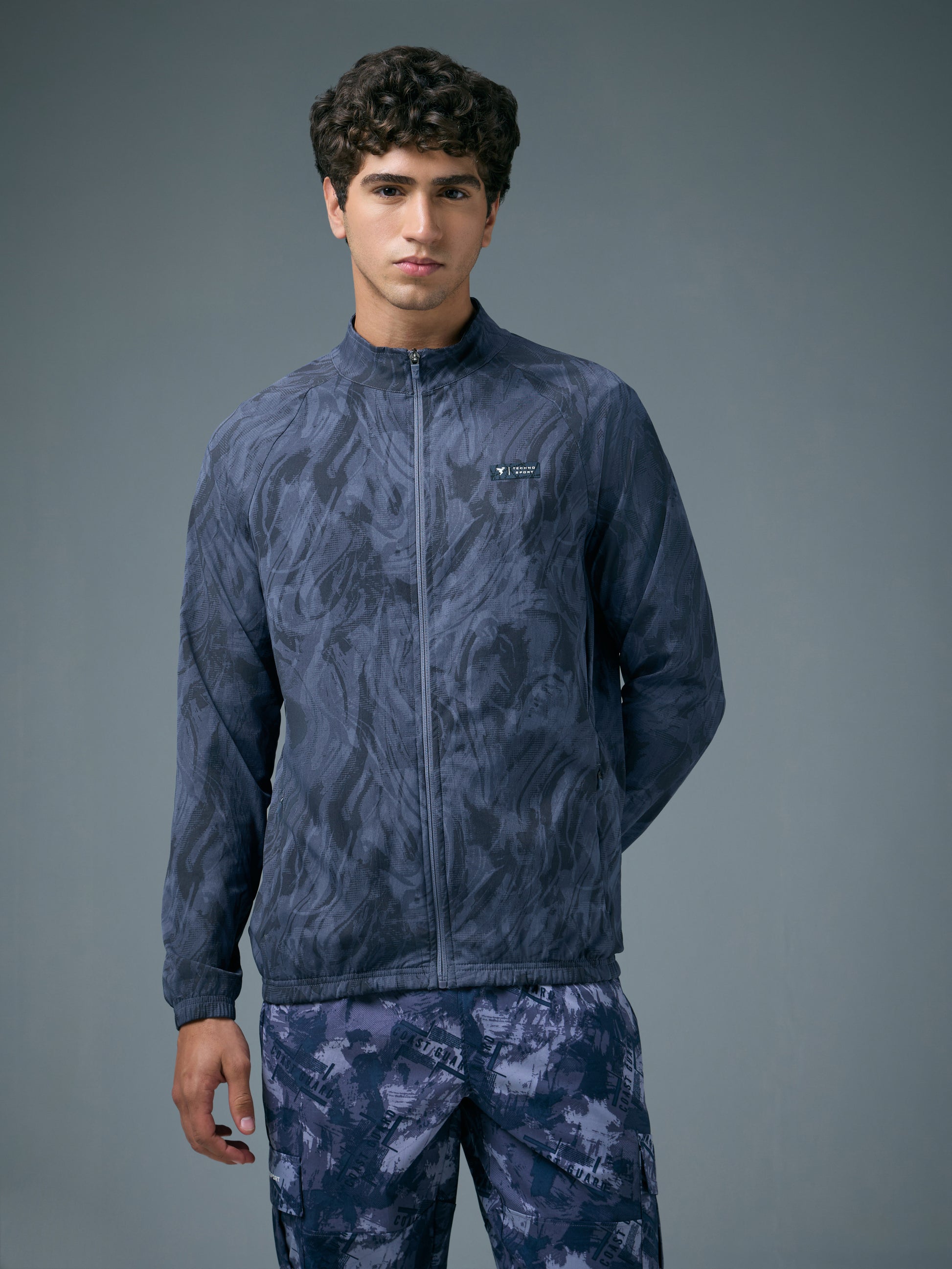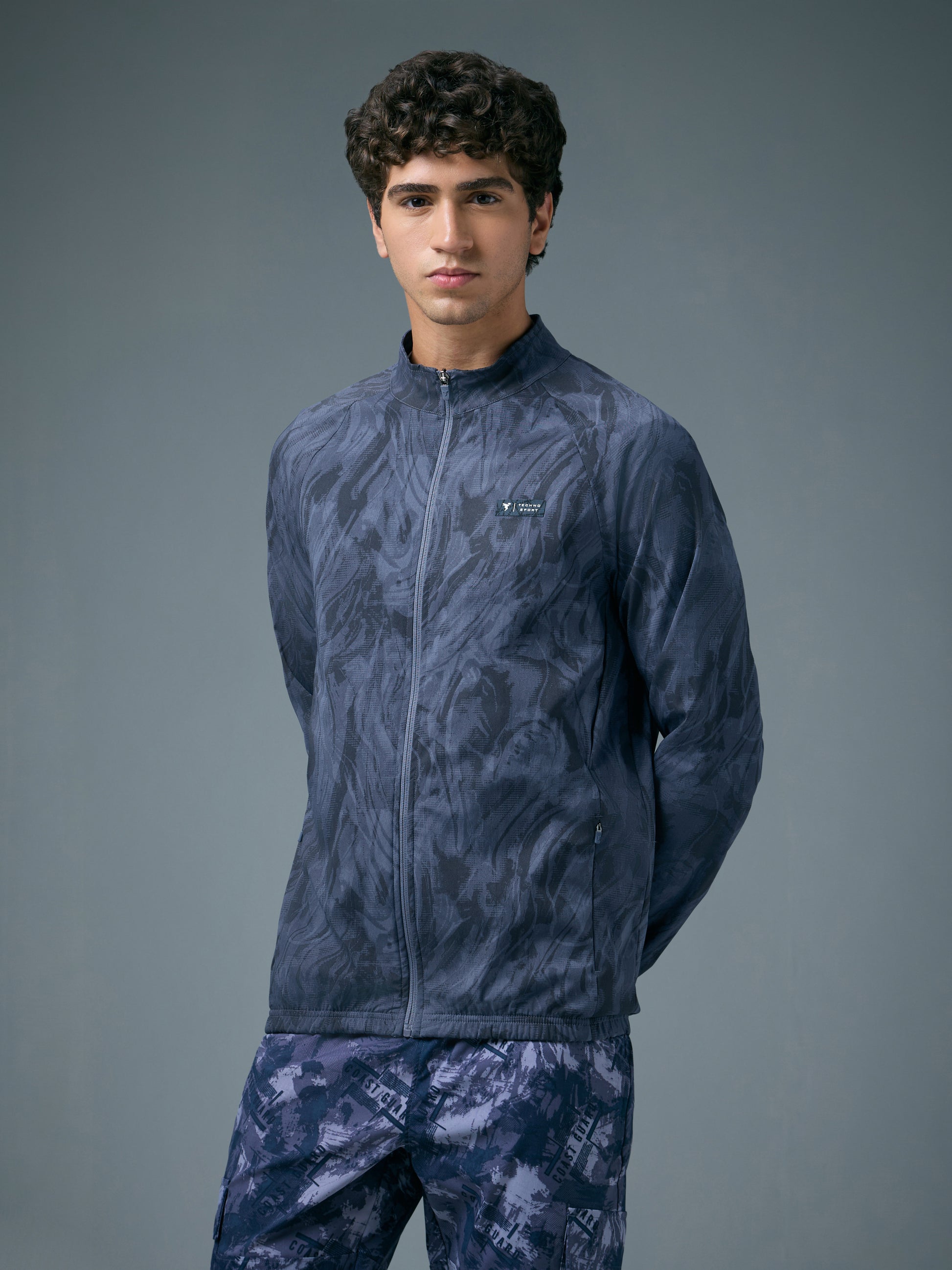 Offer Valid on a Minimum Cart Value of ₹999Men Printed Slim Fit Mock Neck Jacket with TS FLEXI