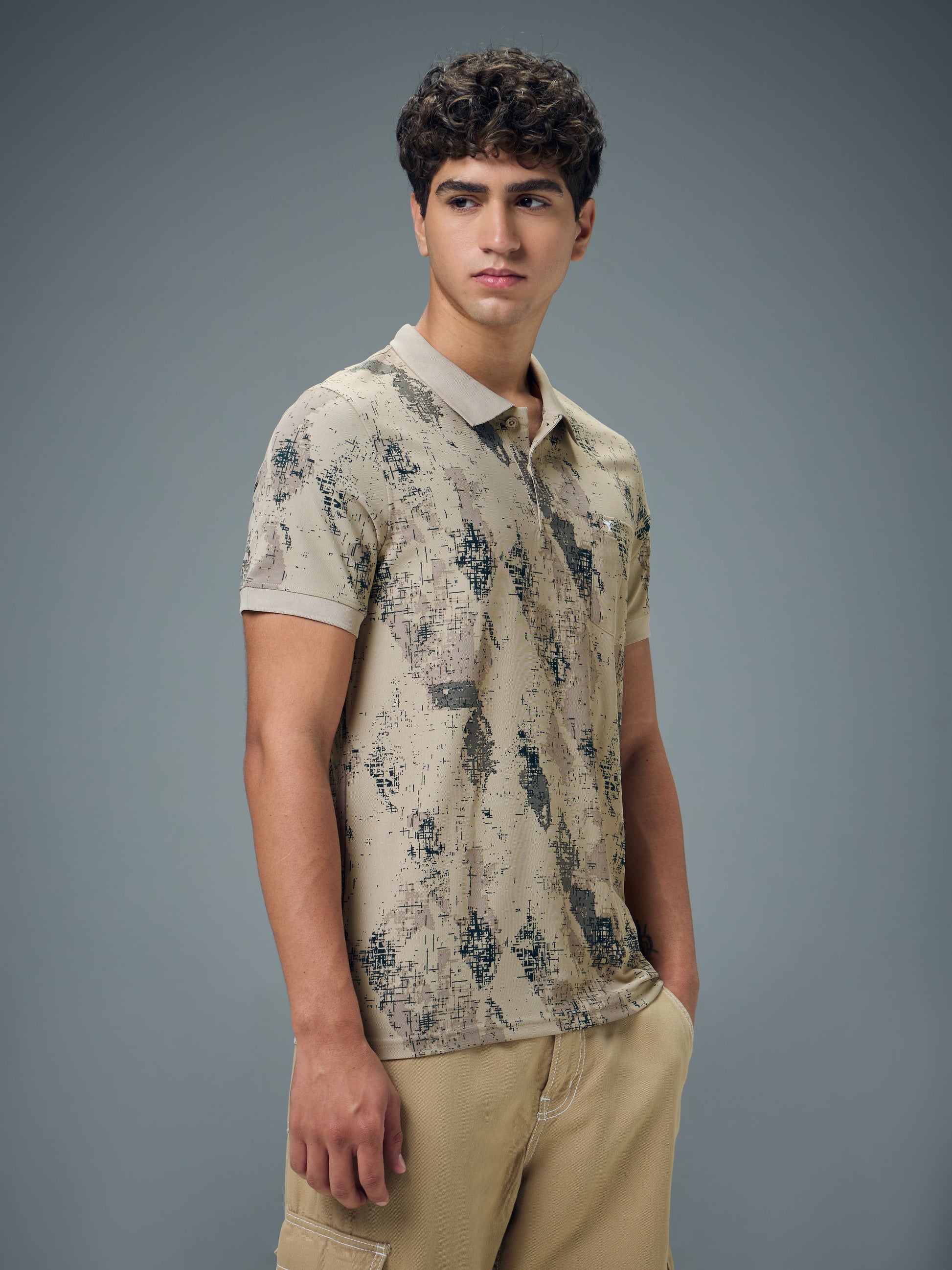 Men Printed Slim Fit Polo Sports T-shirt with MATPIQ