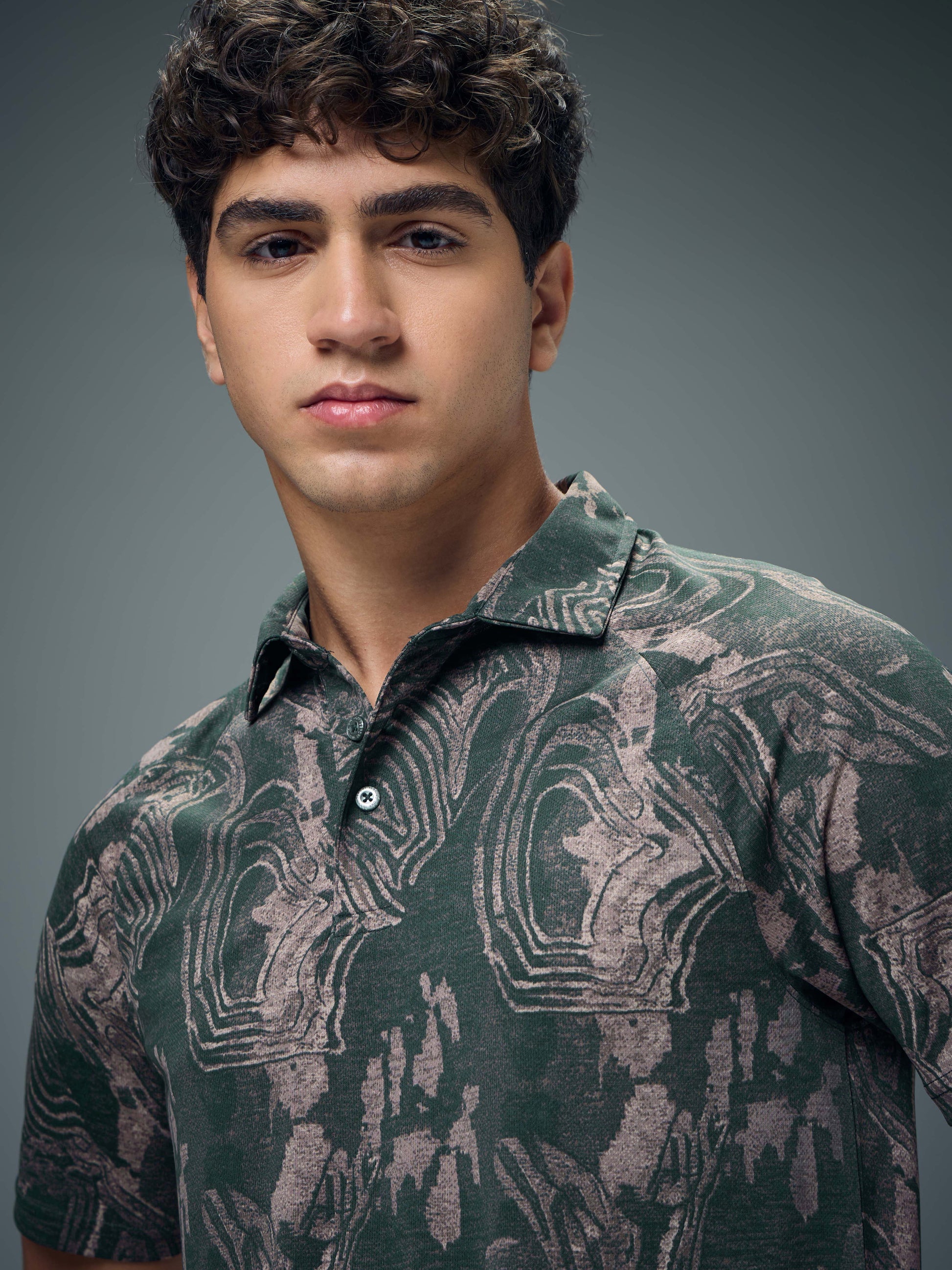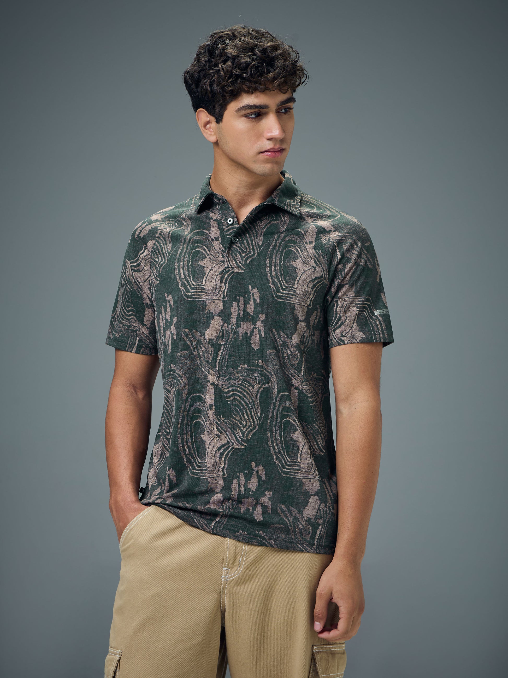 Offer Valid on a Minimum Cart Value of ₹999Men Printed Slim Fit Polo T-shirt with TECHNOCOOL+