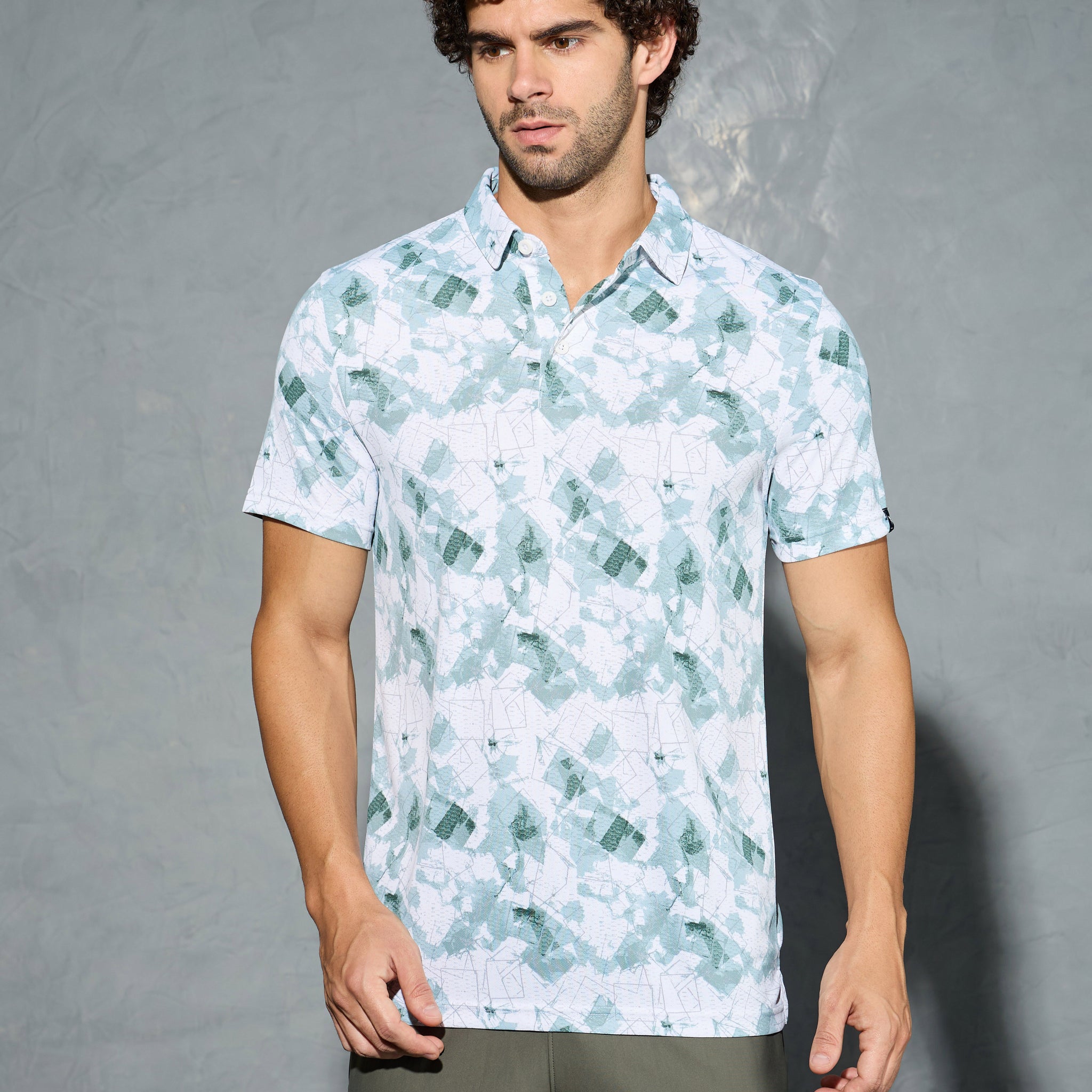 Men Printed Slim Fit Polo T-shirt with TECHNOCOOL+