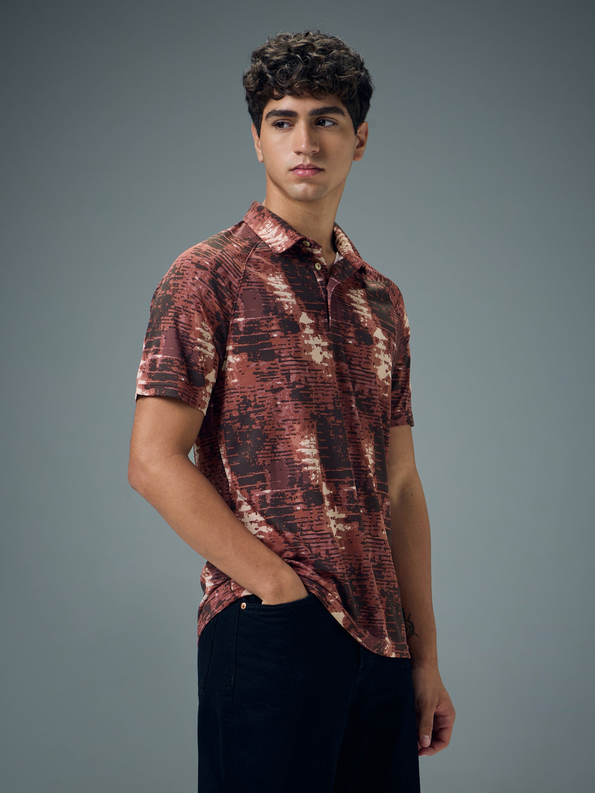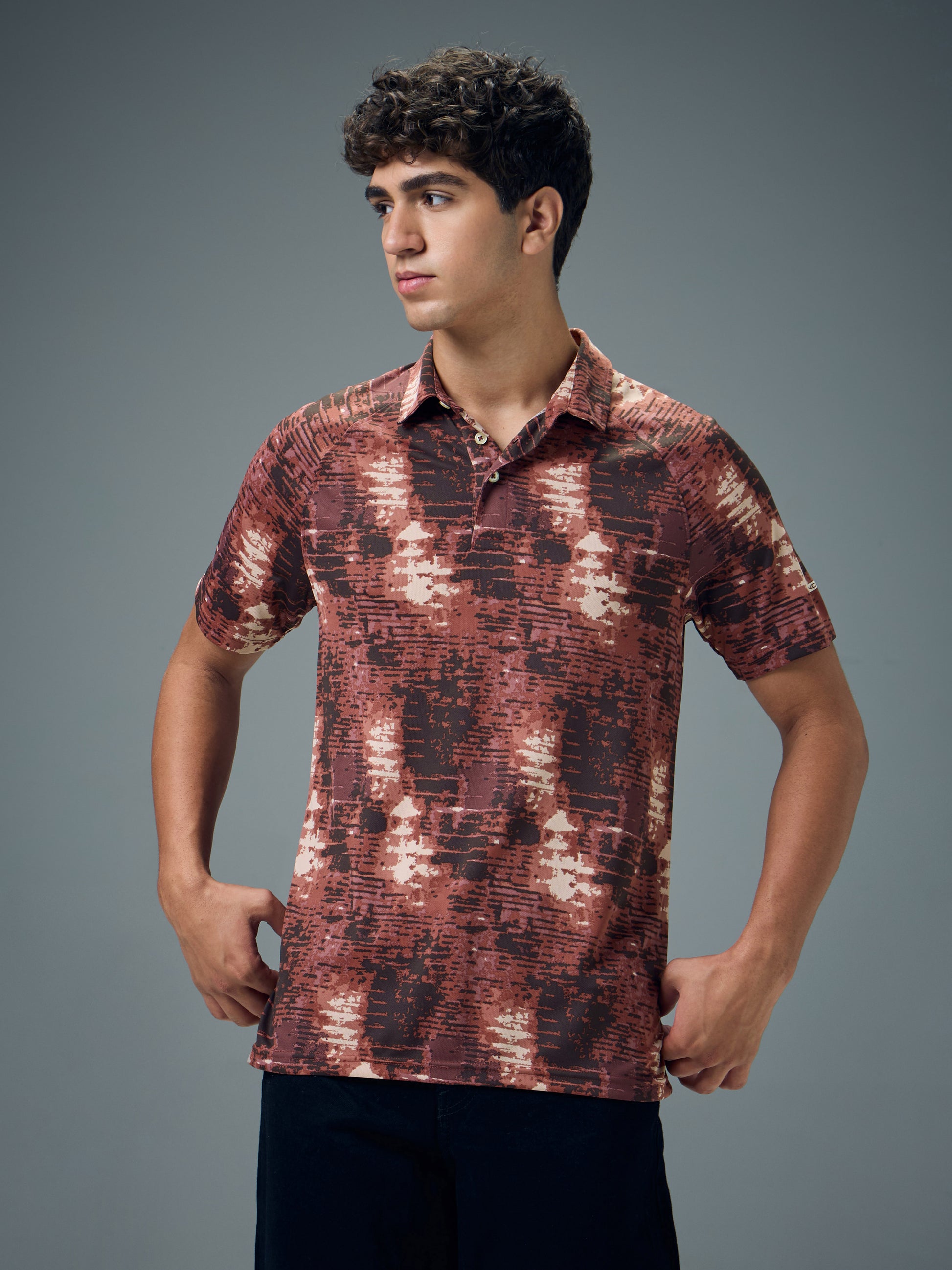 Men Printed Slim Fit Polo T-shirt with TECHNOCOOL+