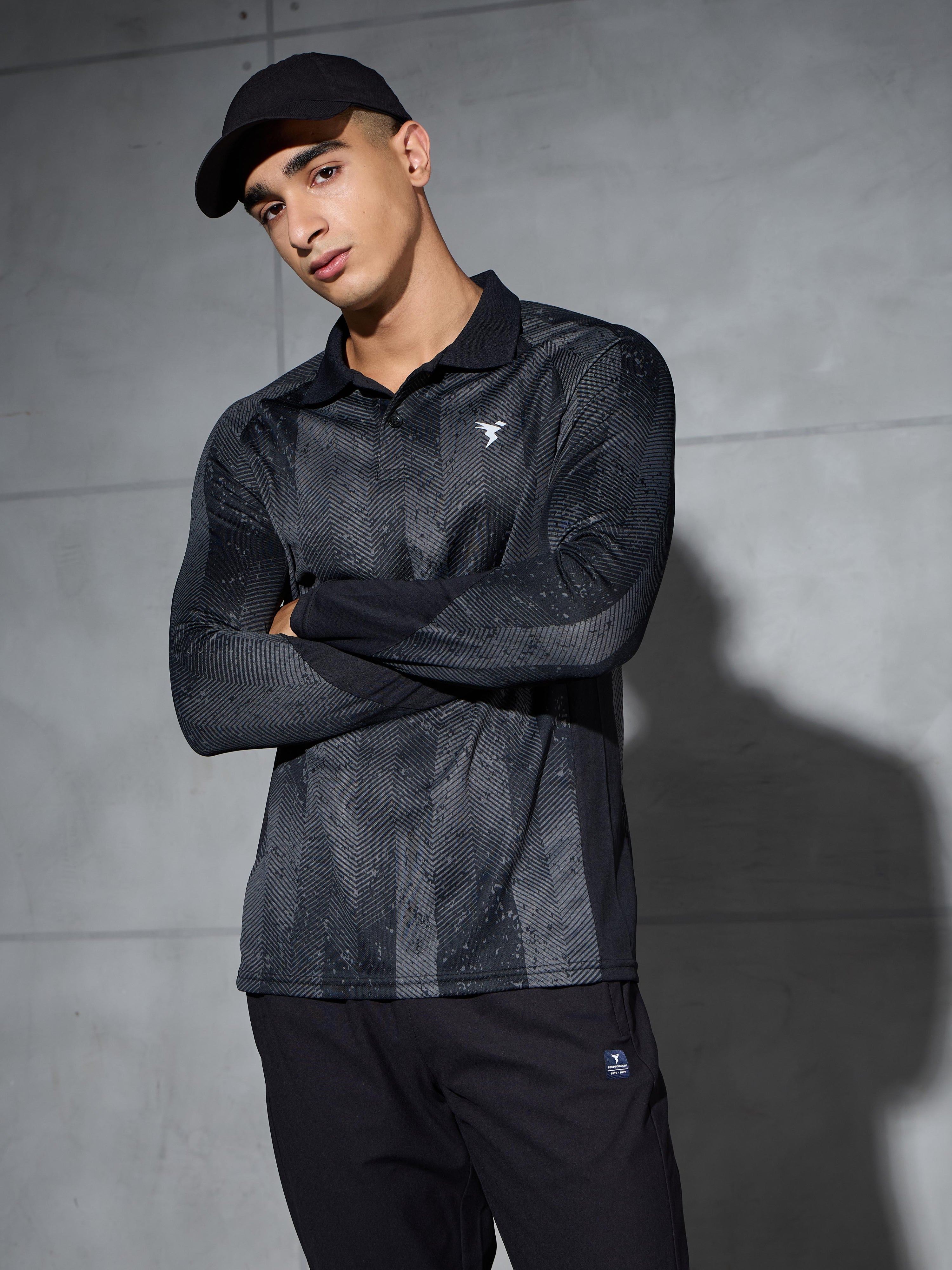 Men Printed Slim Fit Polo Sports T-shirt with TECHNOCOOL+