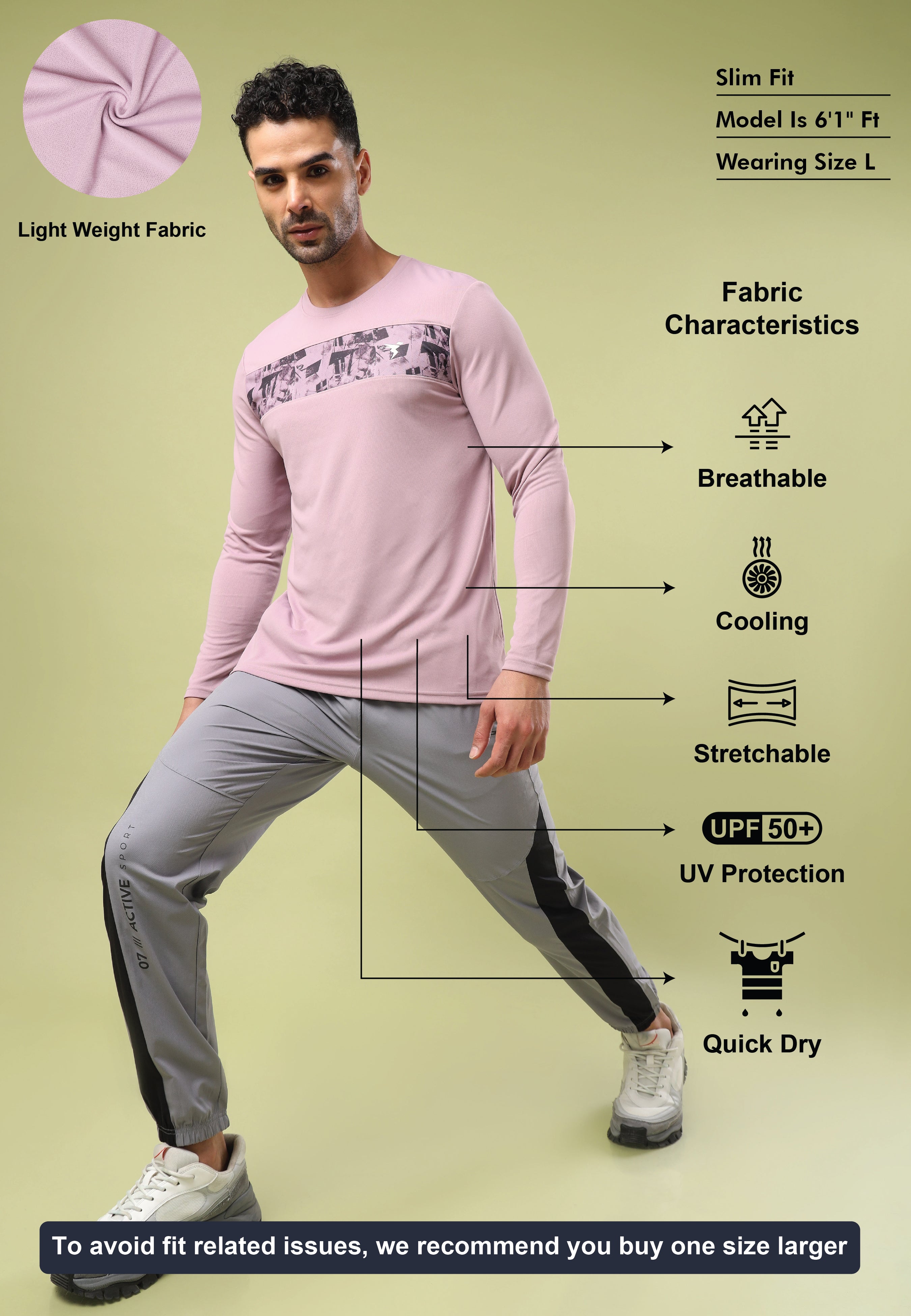 Men Printed Slim Fit Round Neck Sports T-shirt with TECHNO COOL+