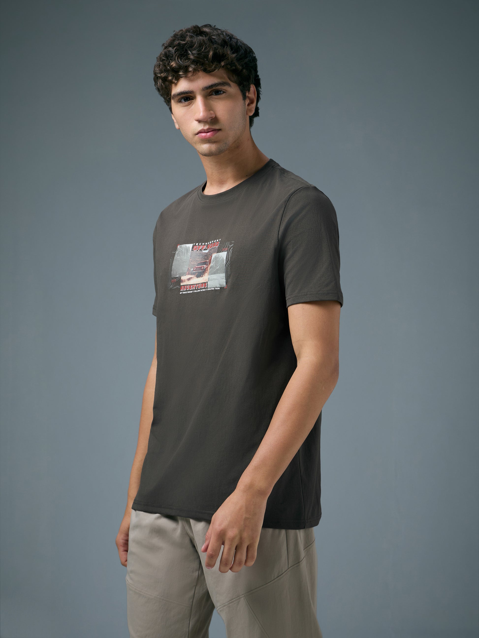 Offer Valid on a Minimum Cart Value of ₹999Men Printed Slim Fit Round Neck T-shirt with COTFLEX