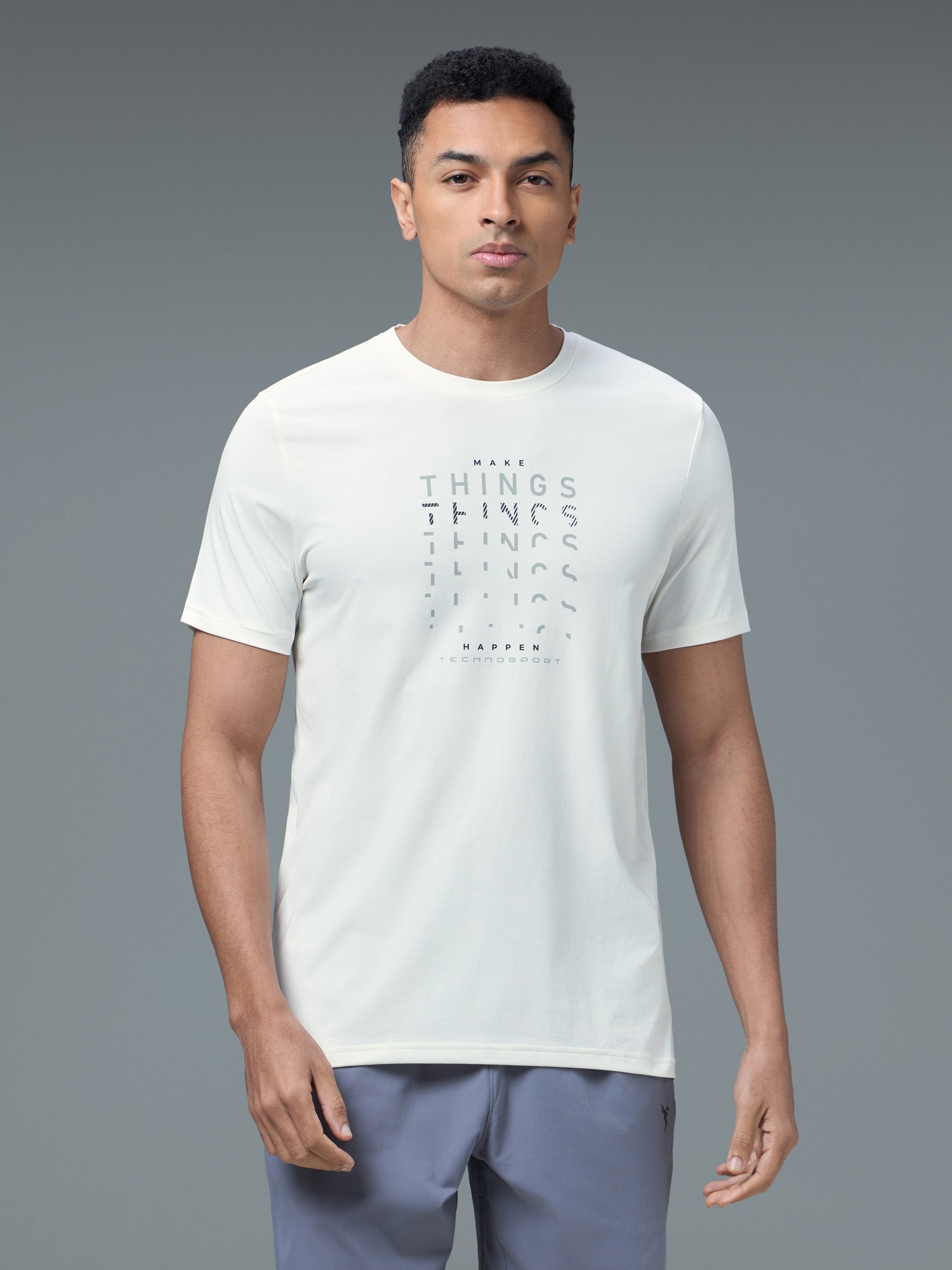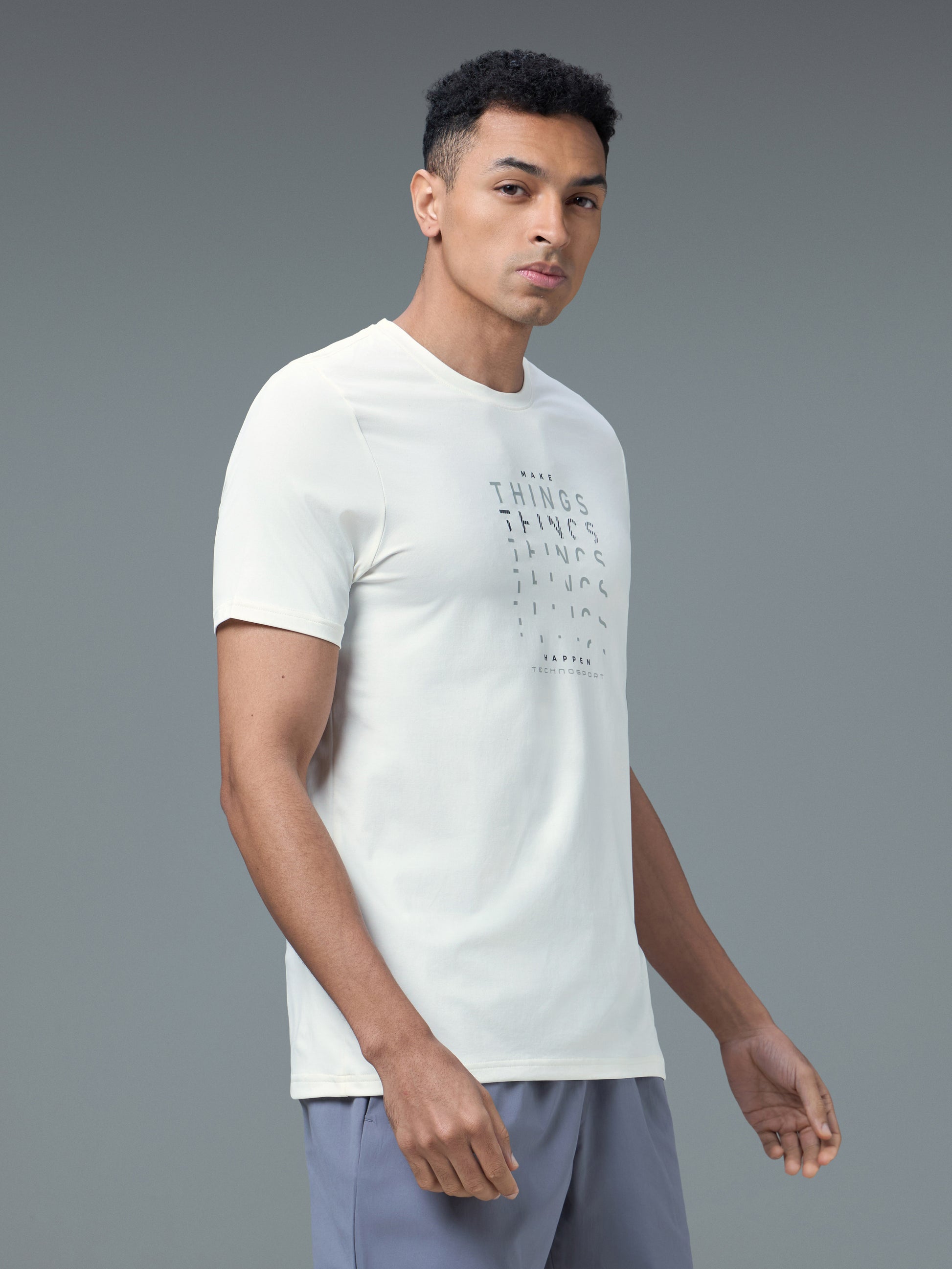 Men Printed Slim Fit Round Neck T-shirt with COTFLEX