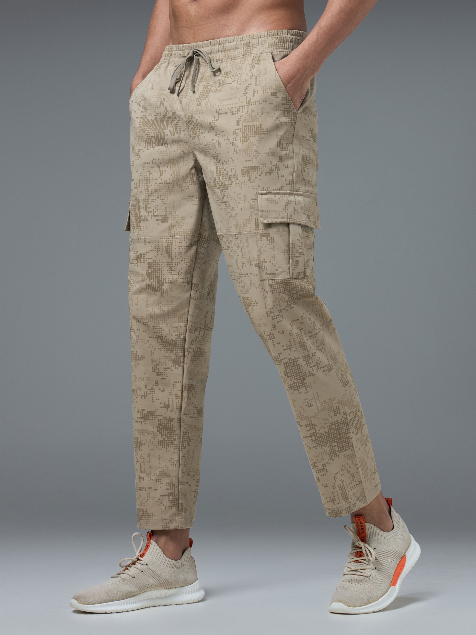 Men Printed Straight Fit Sports Cargo Trackpants with TS LYTRA