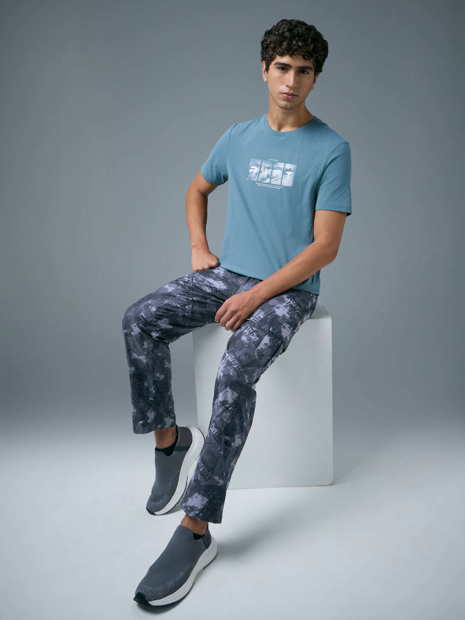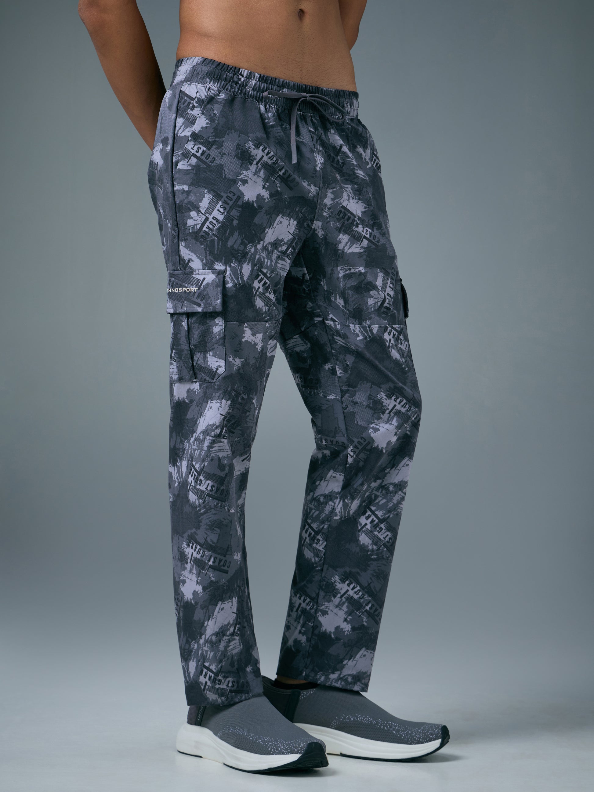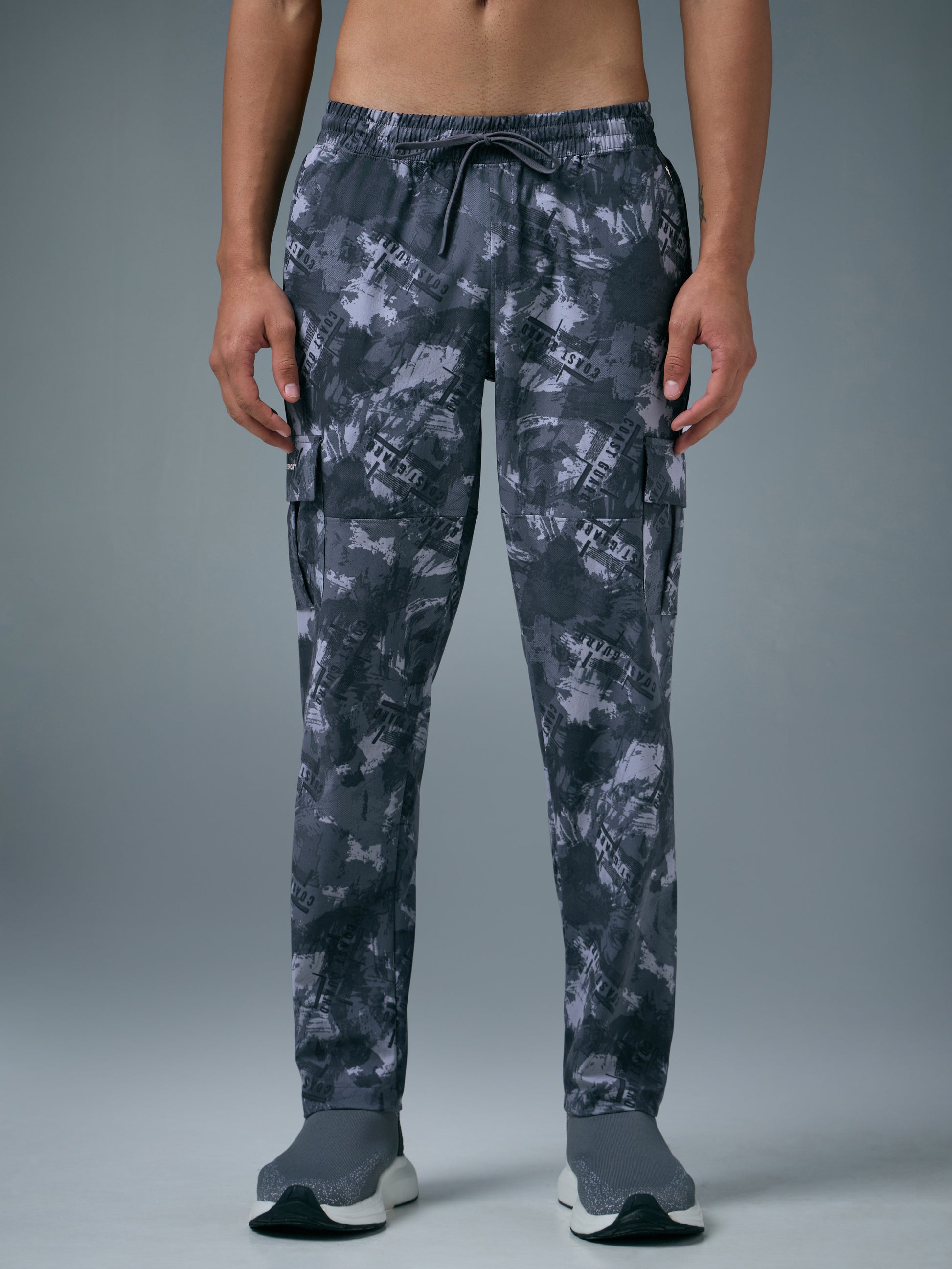 Men Printed Straight Fit Sports Cargo Trackpants with TS LYTRA