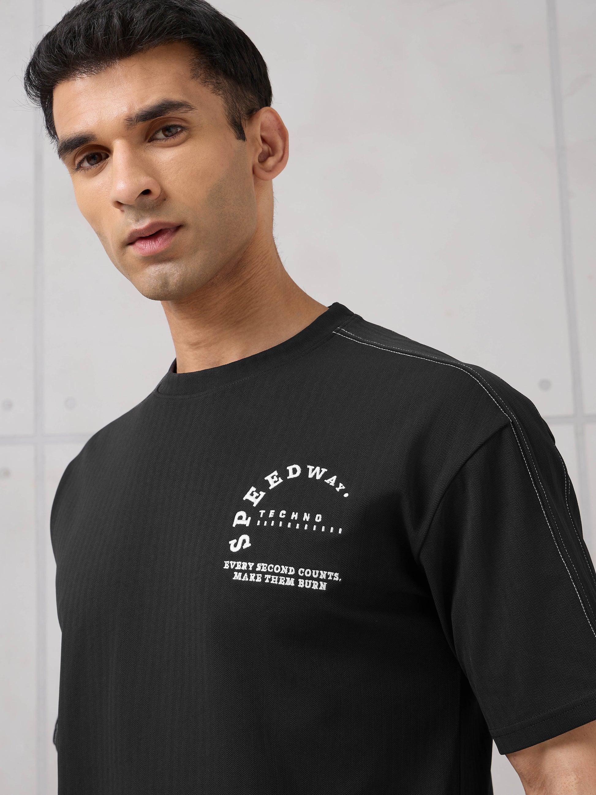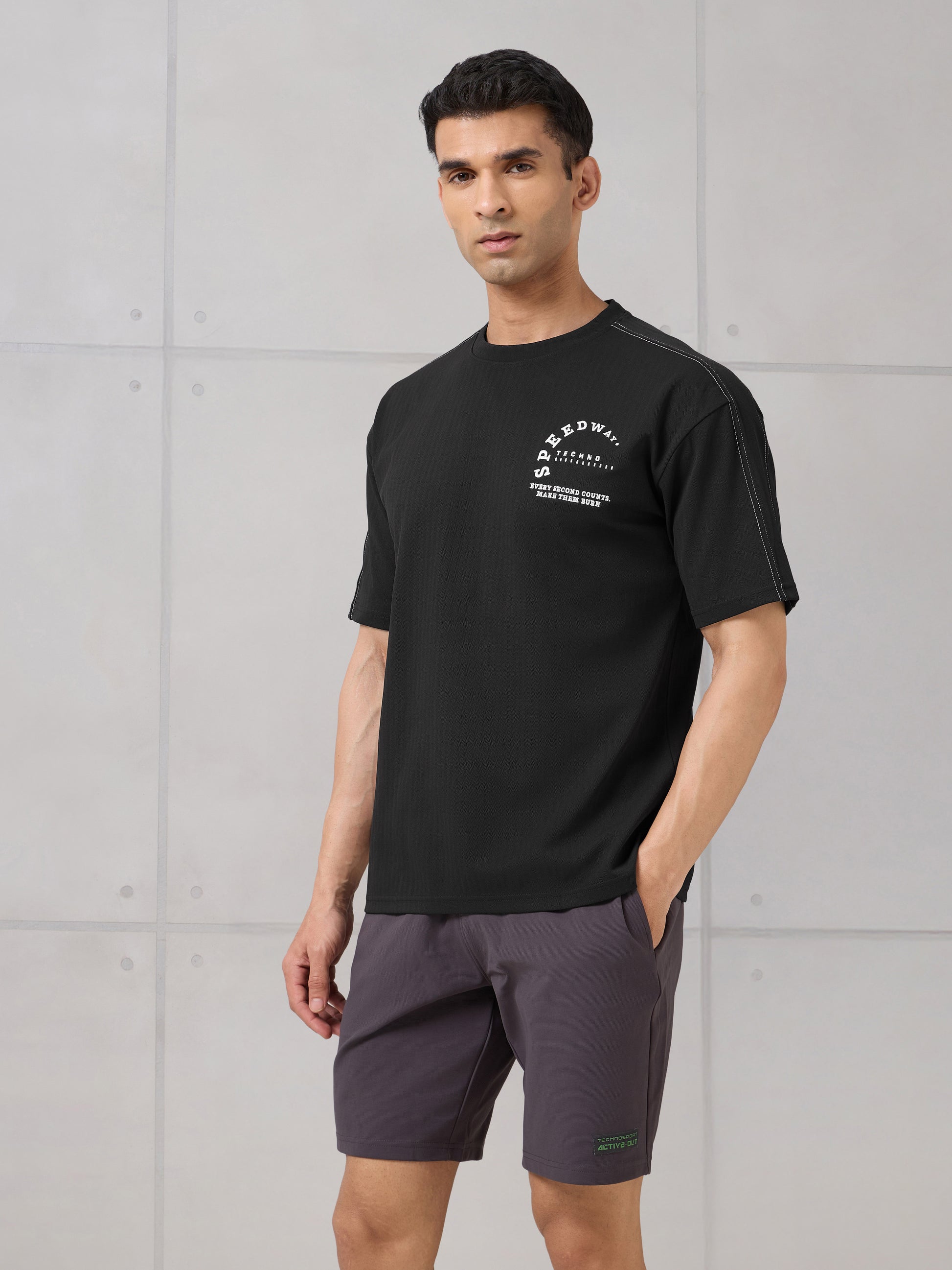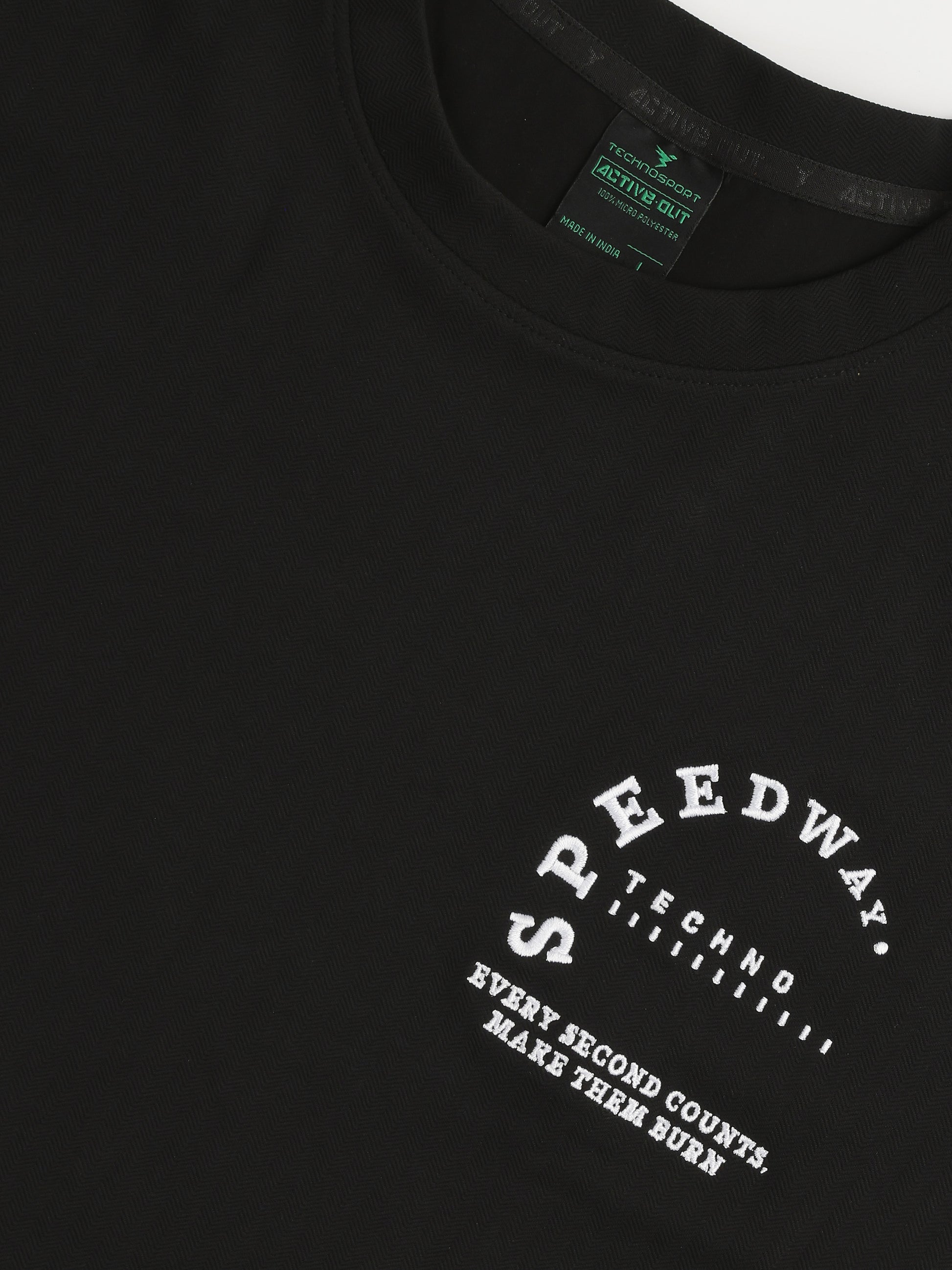 Men Round Neck Self Design Active Out Regular Fit T-Shirt with ELASTOPLUS
