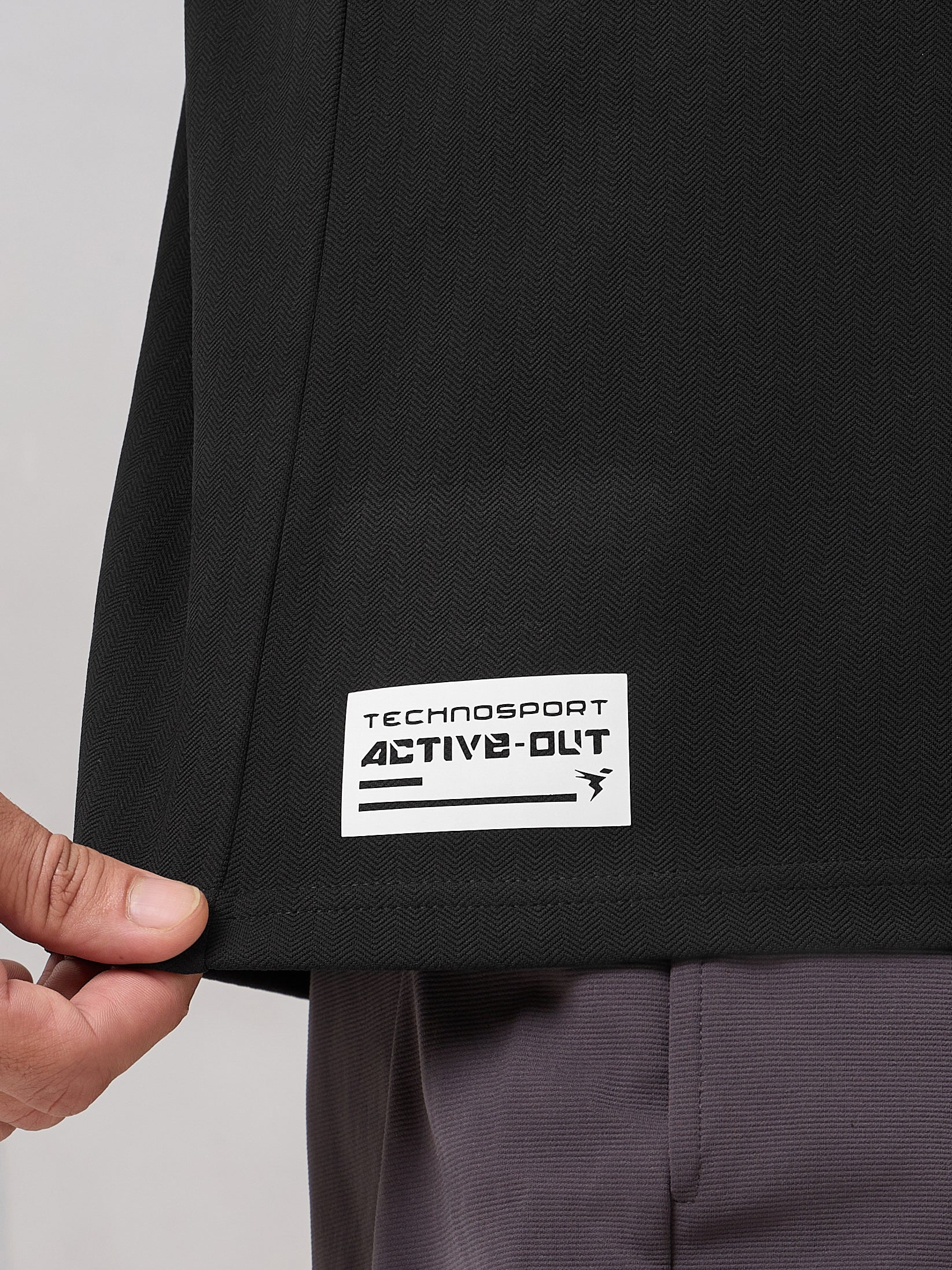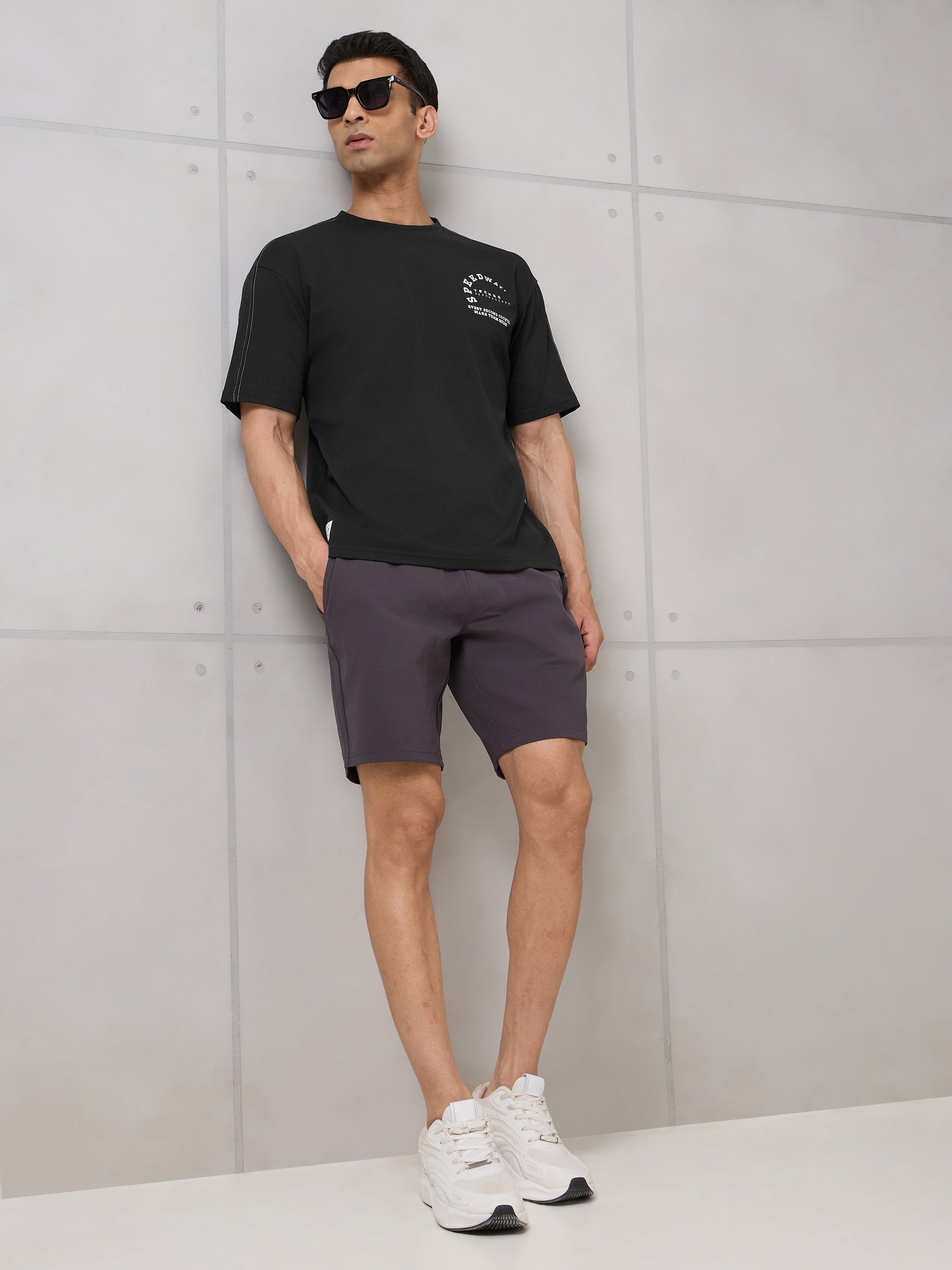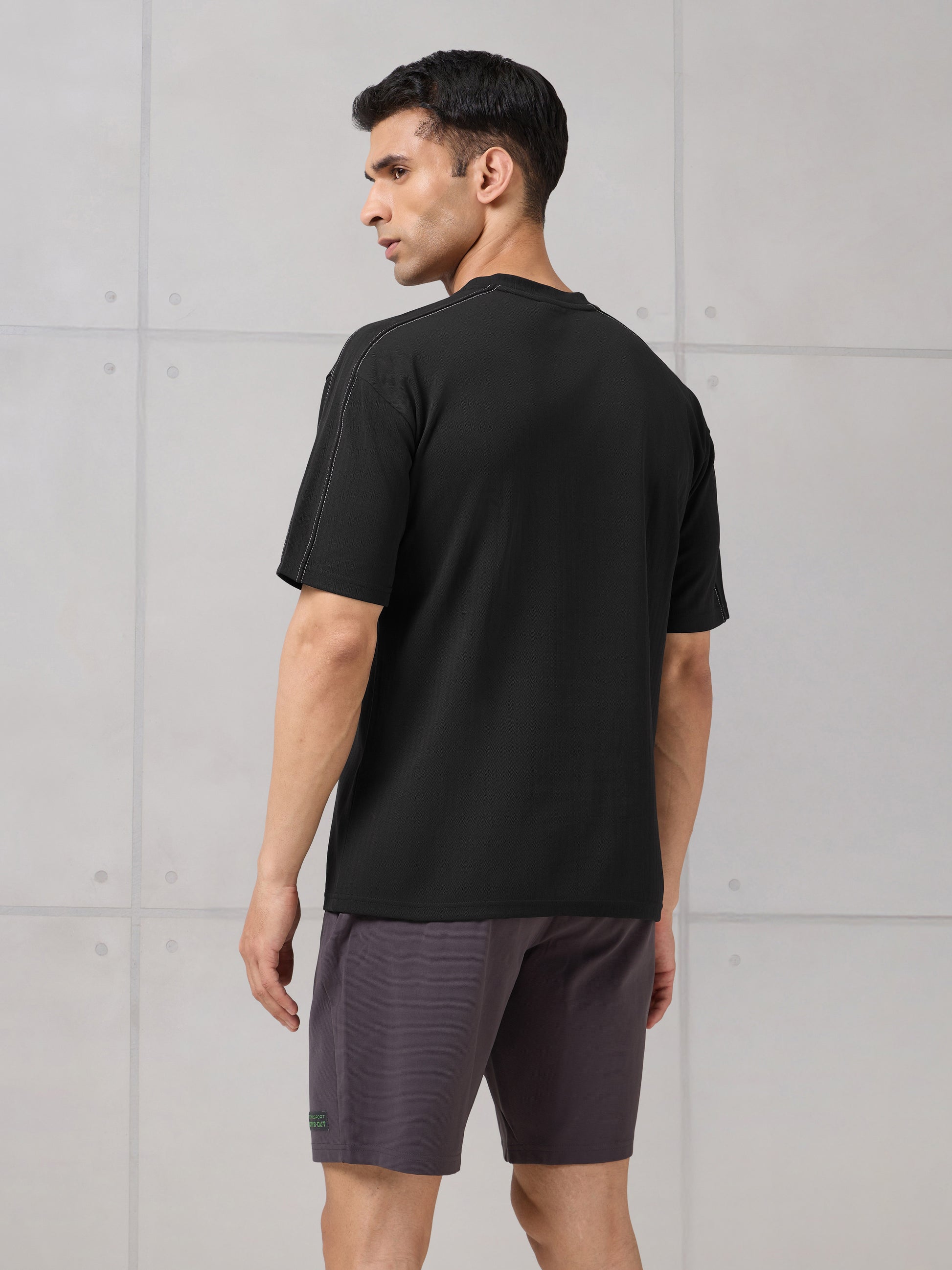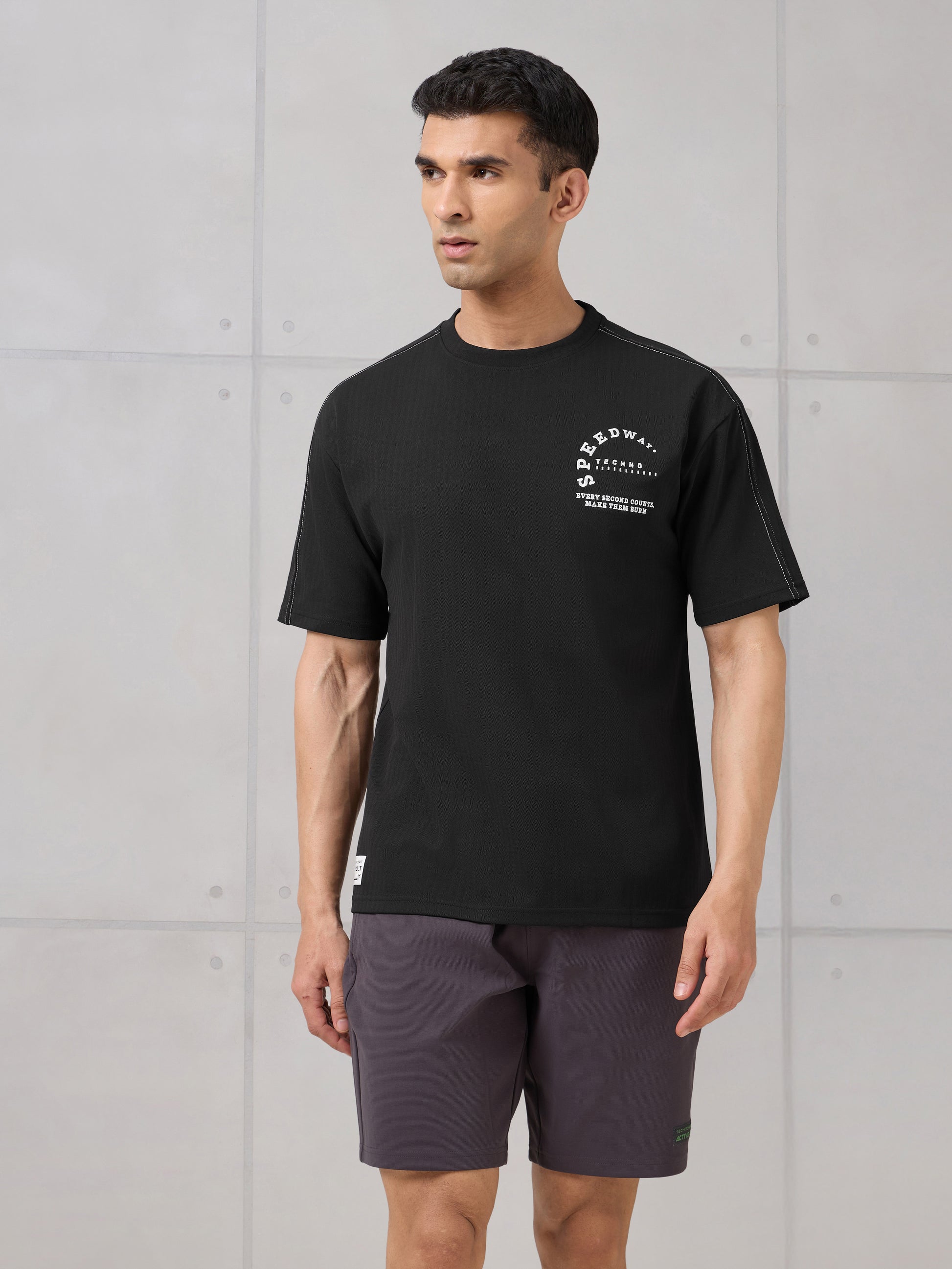 Men Round Neck Self Design Active Out Regular Fit T-Shirt with ELASTOPLUS