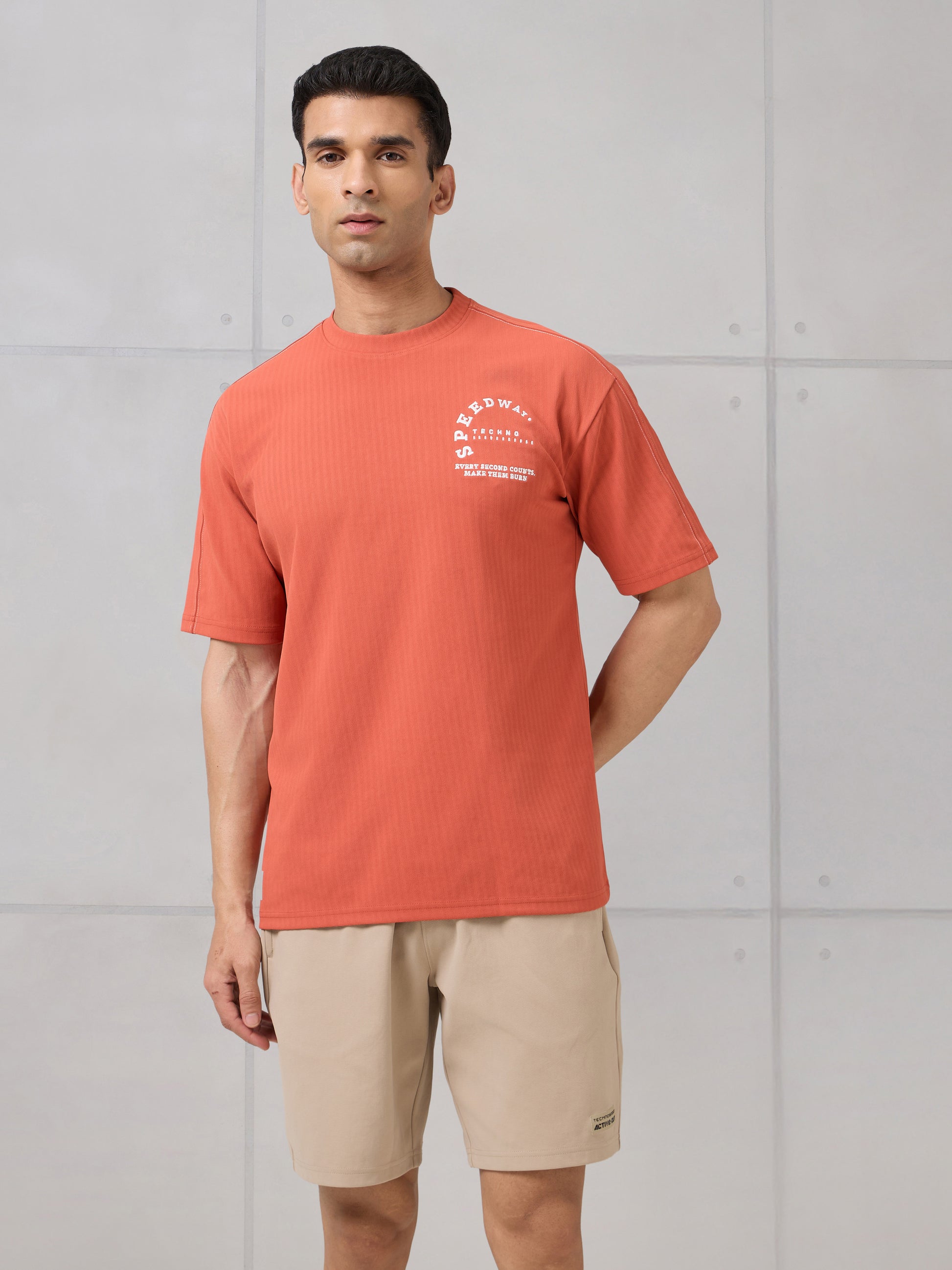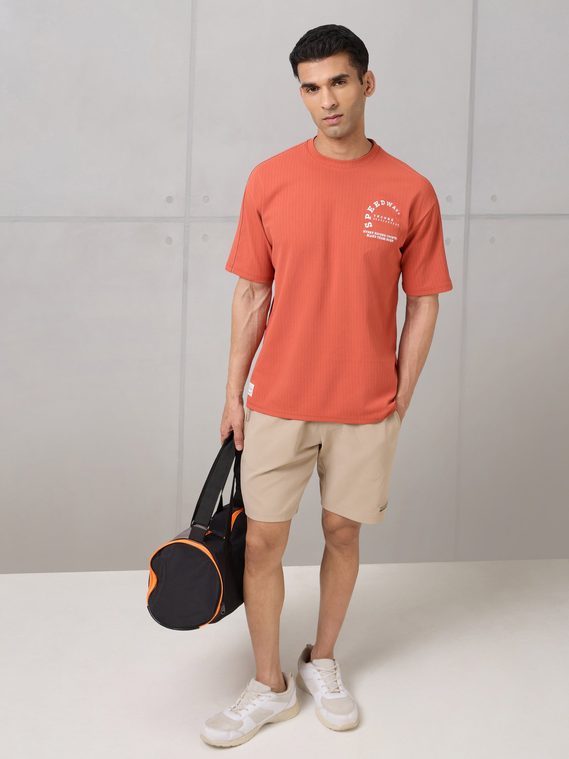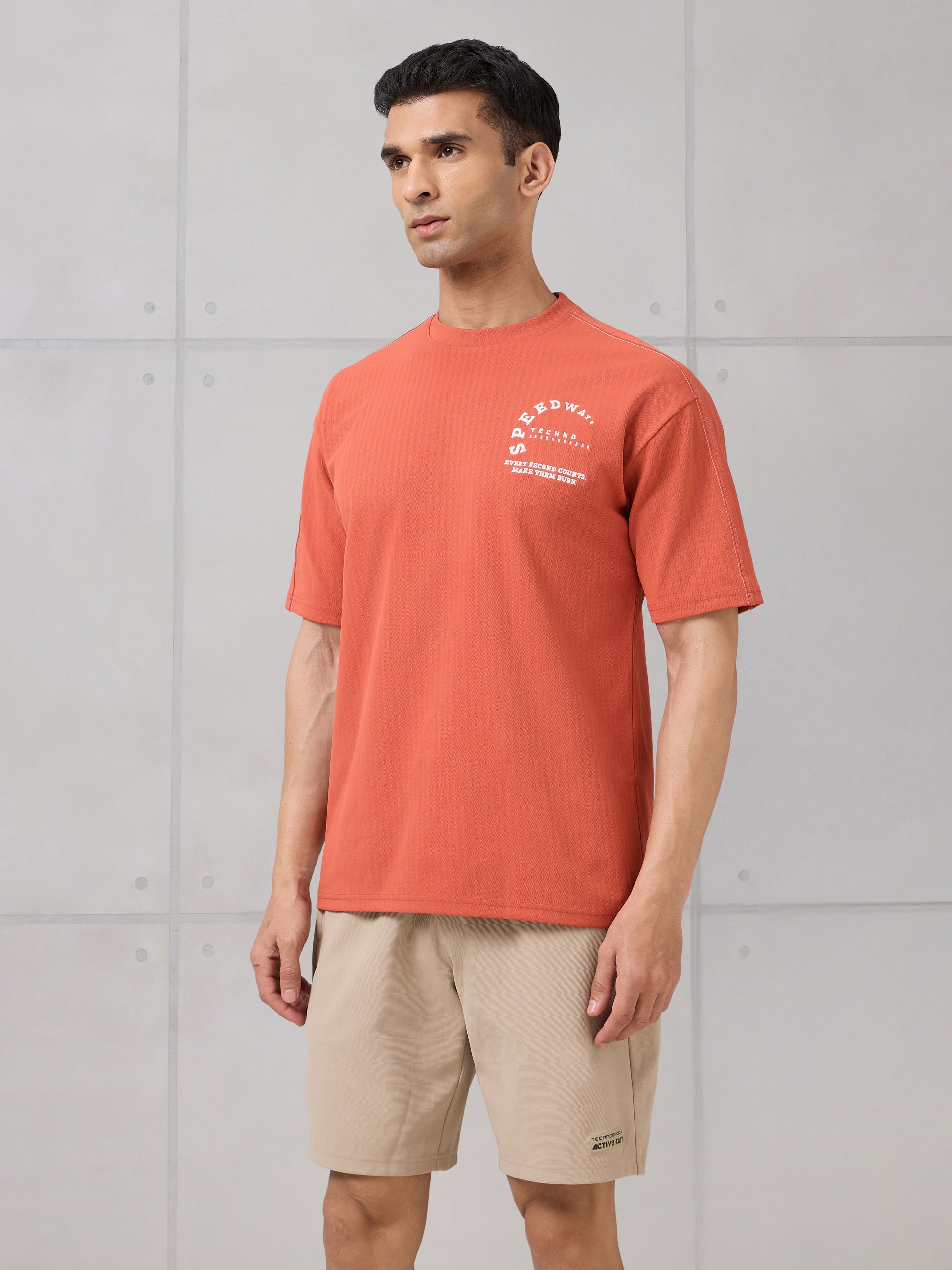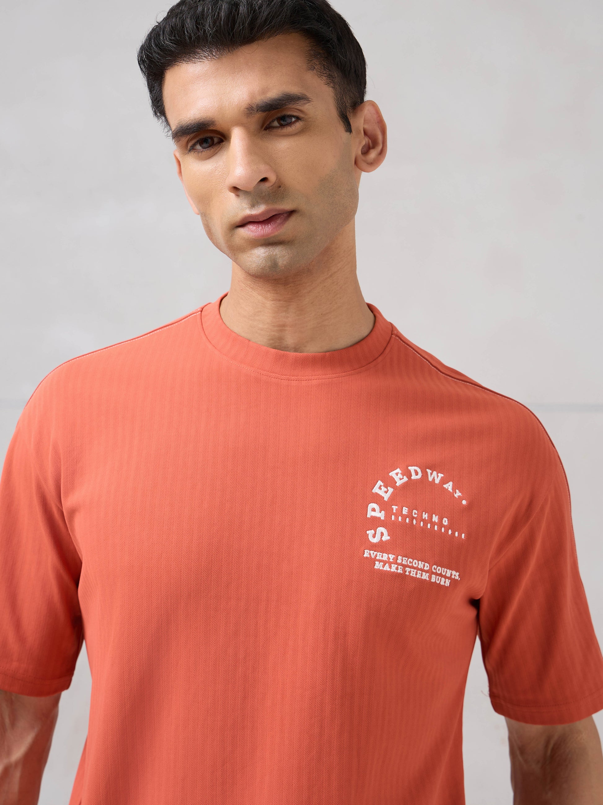 Men Round Neck Self Design Active Out Regular Fit T-Shirt with ELASTOPLUS