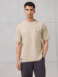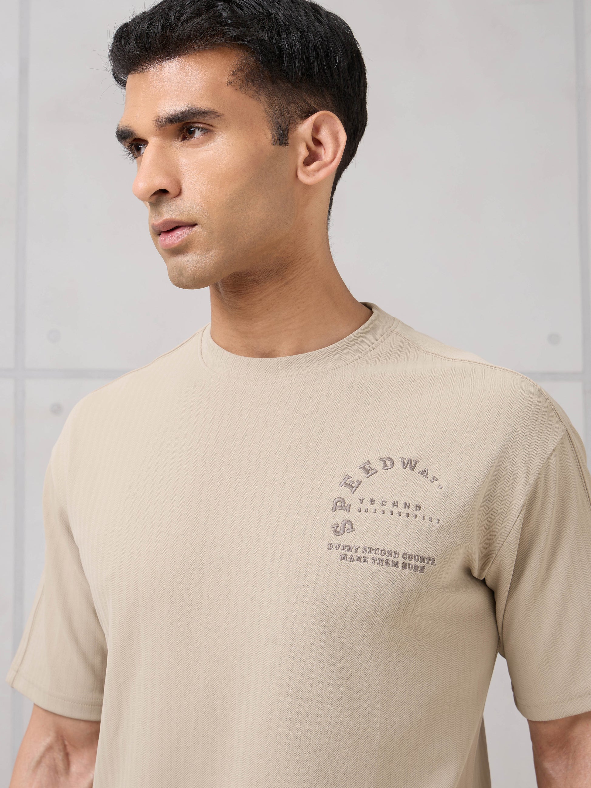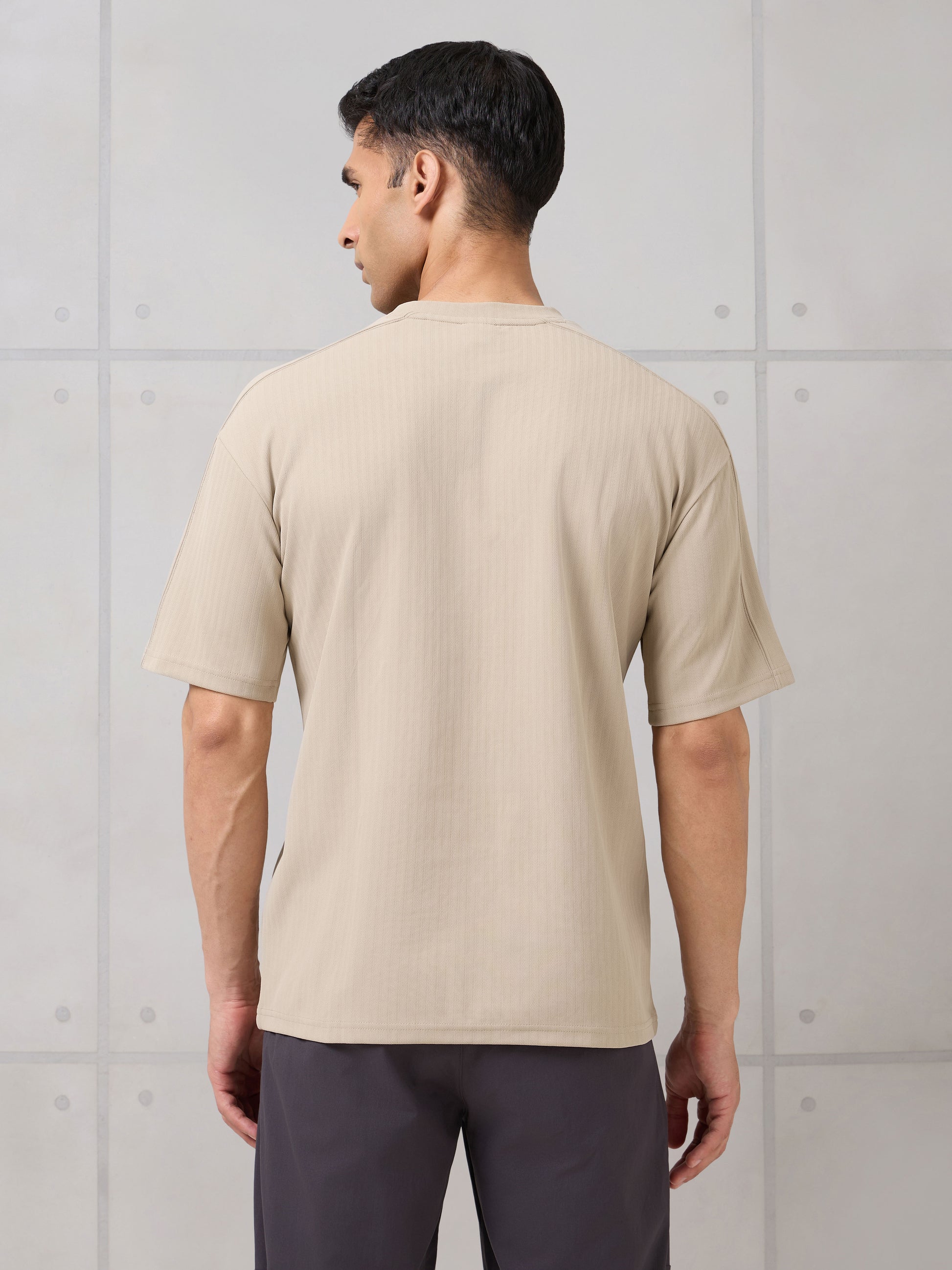 Men Round Neck Self Design Active Out Regular Fit T-Shirt with ELASTOPLUS