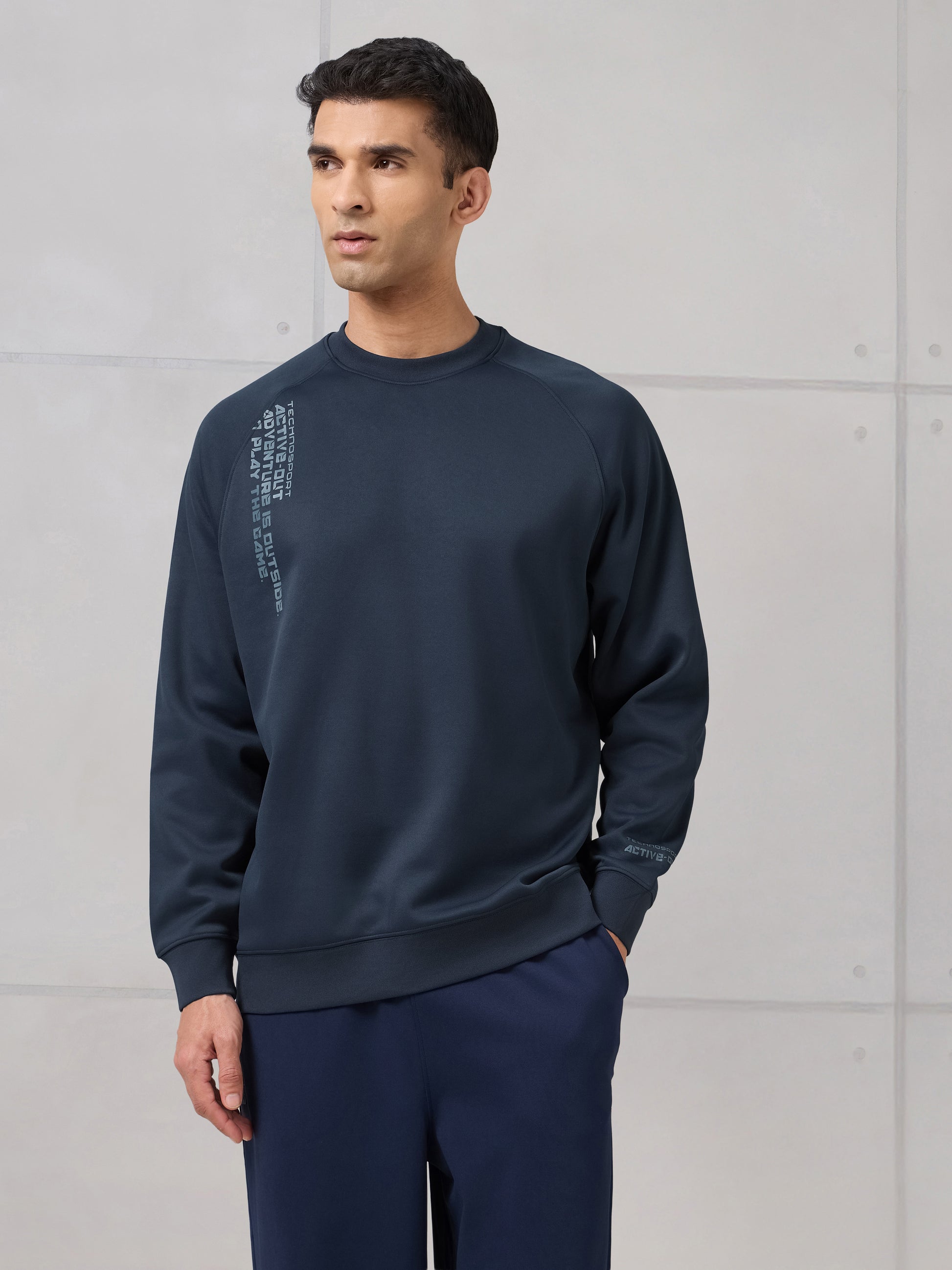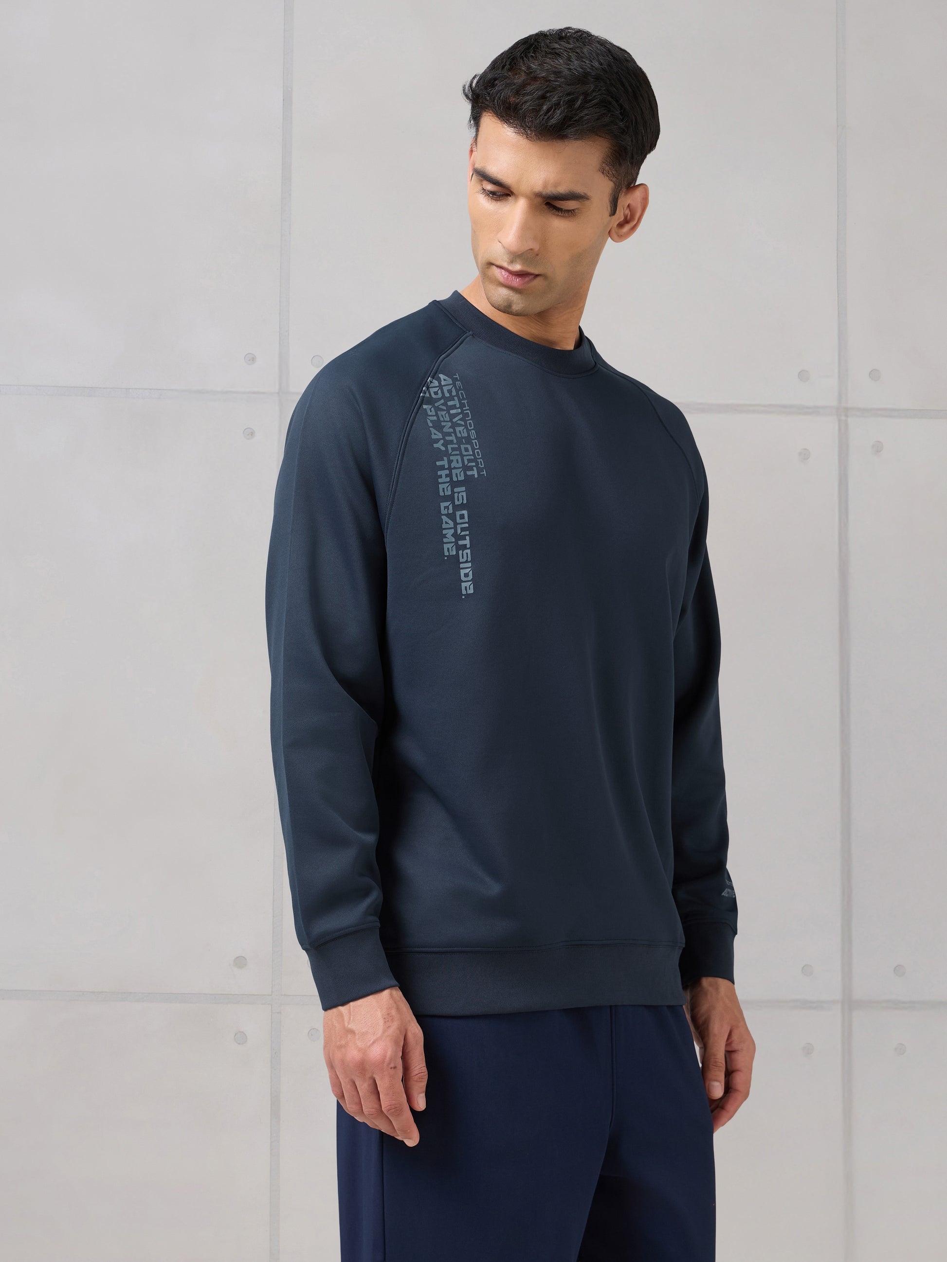 Offer Valid on a Minimum Cart Value of ₹999Men Round Neck Slim Fit Printed Active Out Sweatshirt with TECHNOWARM+