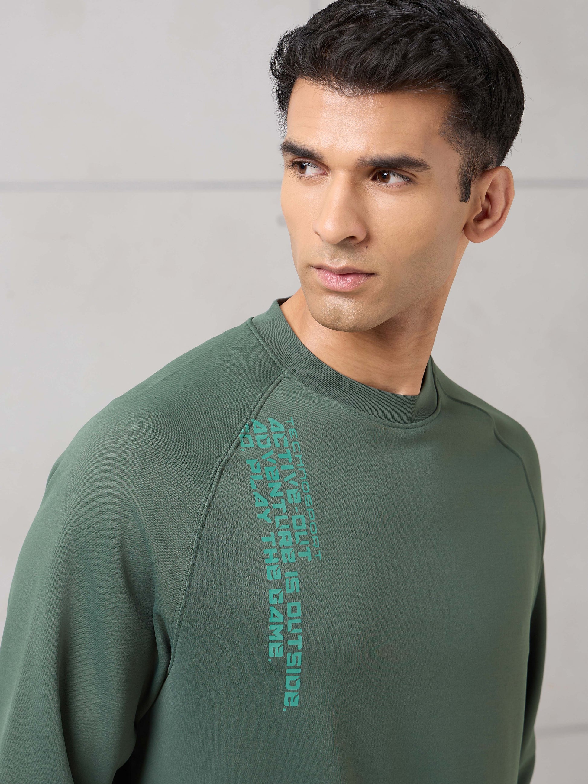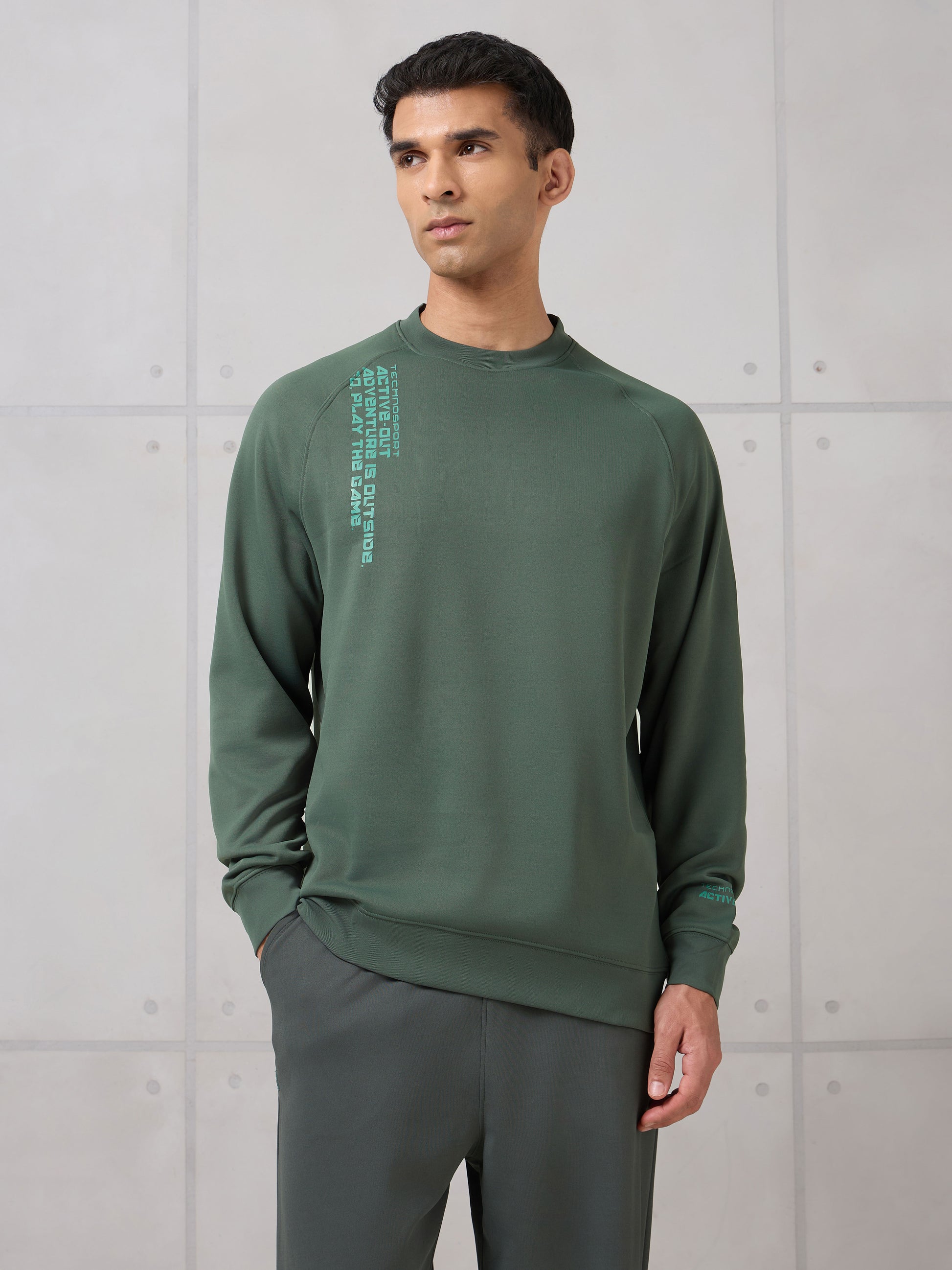 Offer Valid on a Minimum Cart Value of ₹999Men Round Neck Slim Fit Printed Active Out Sweatshirt with TECHNOWARM+
