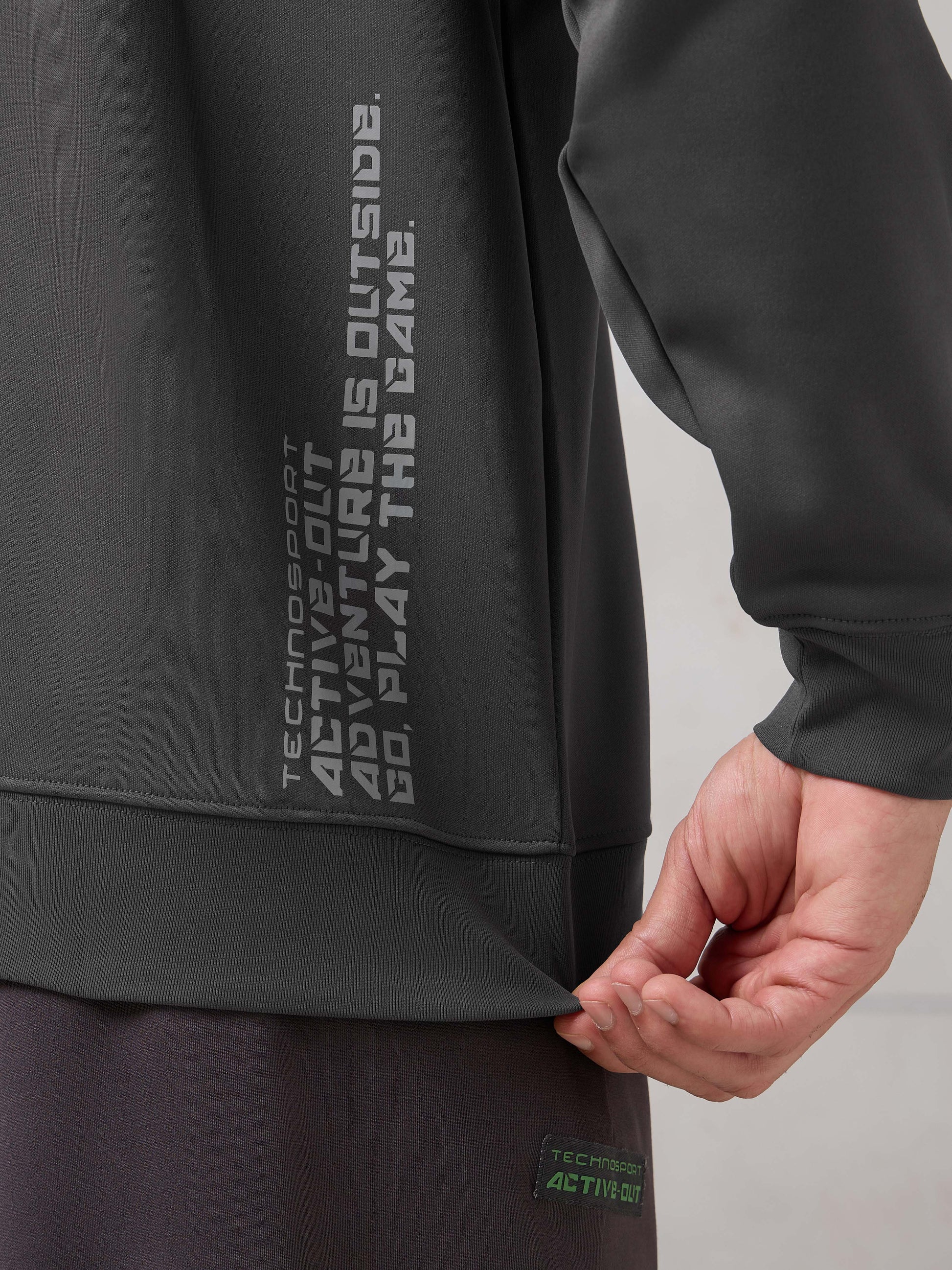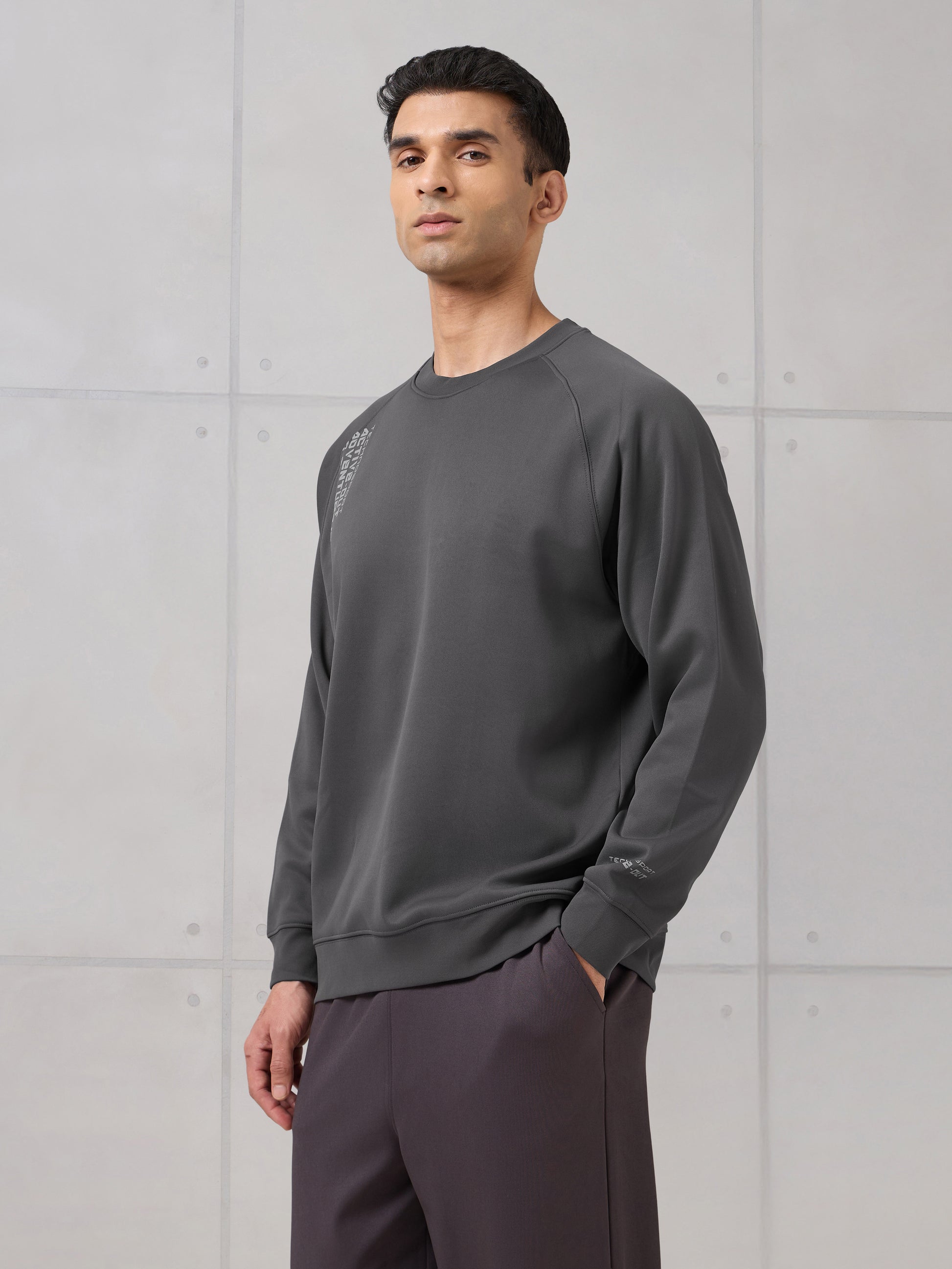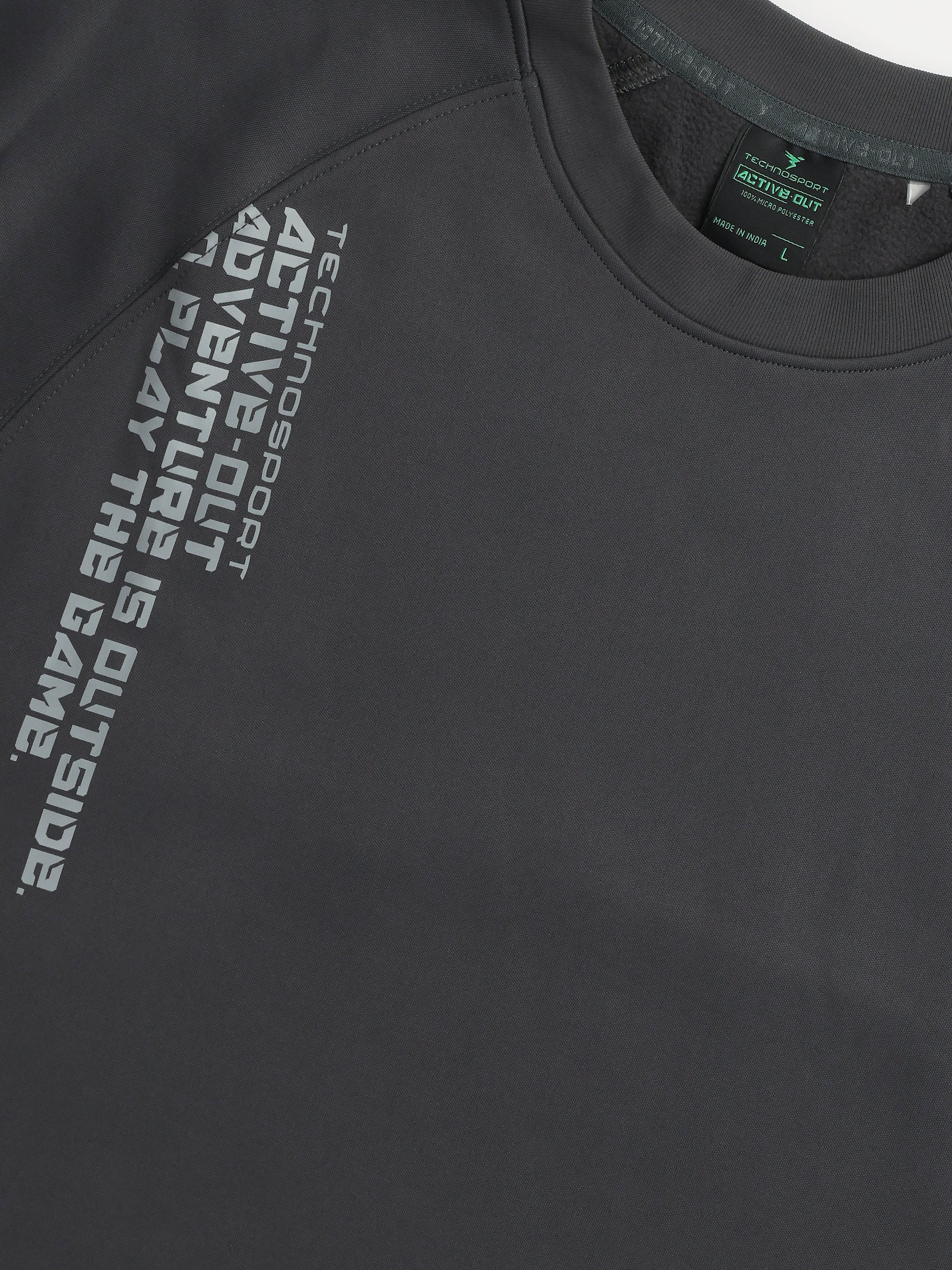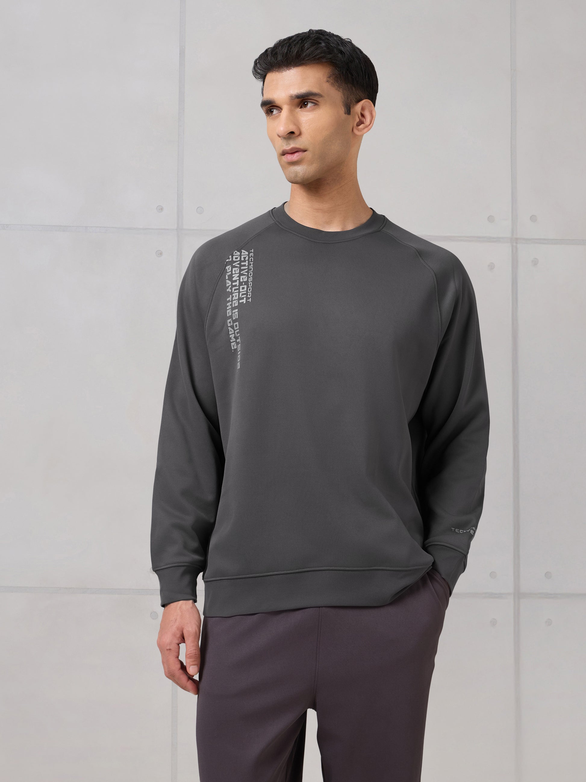 Offer Valid on a Minimum Cart Value of ₹999Men Round Neck Slim Fit Printed Active Out Sweatshirt with TECHNOWARM+
