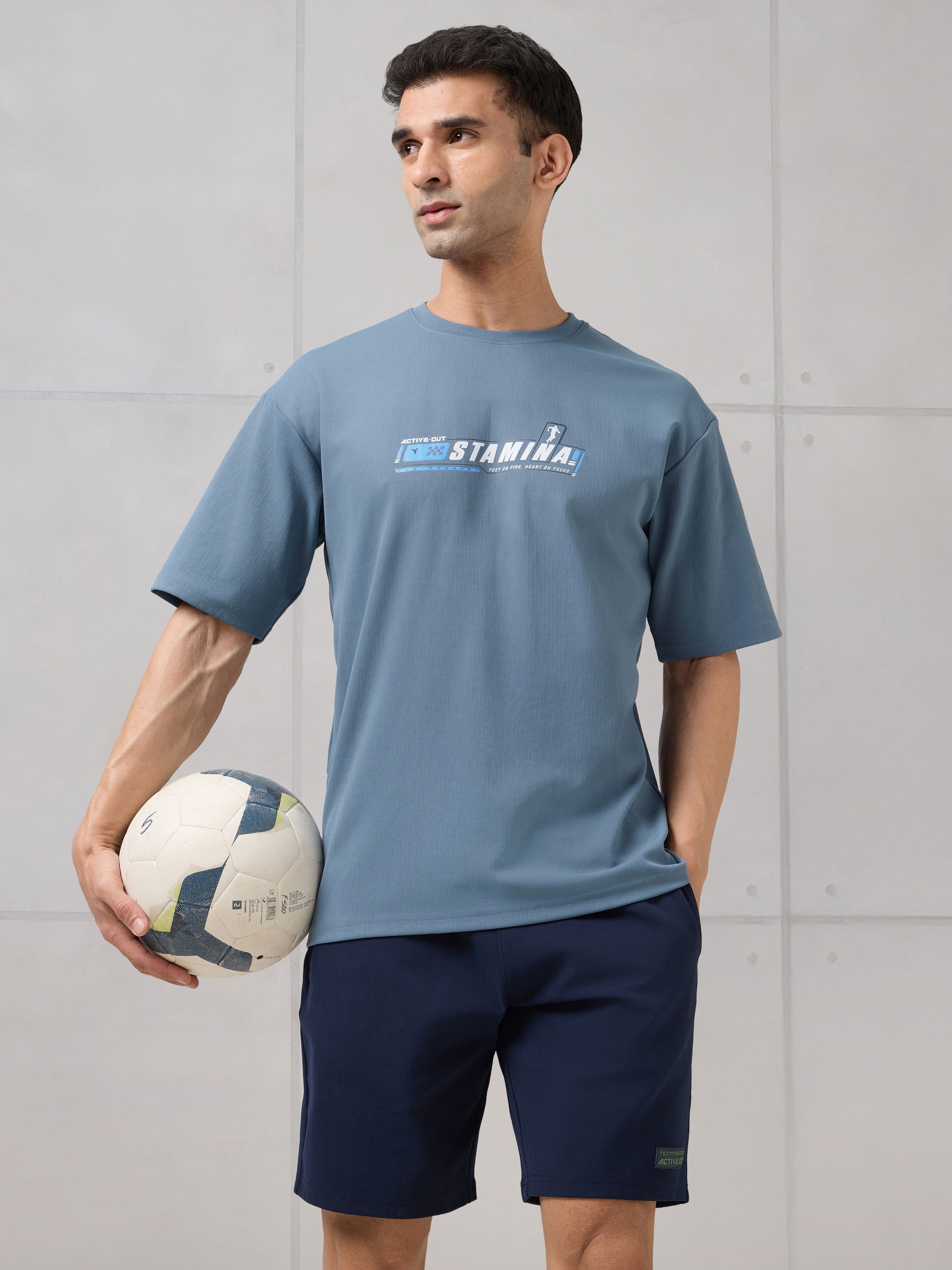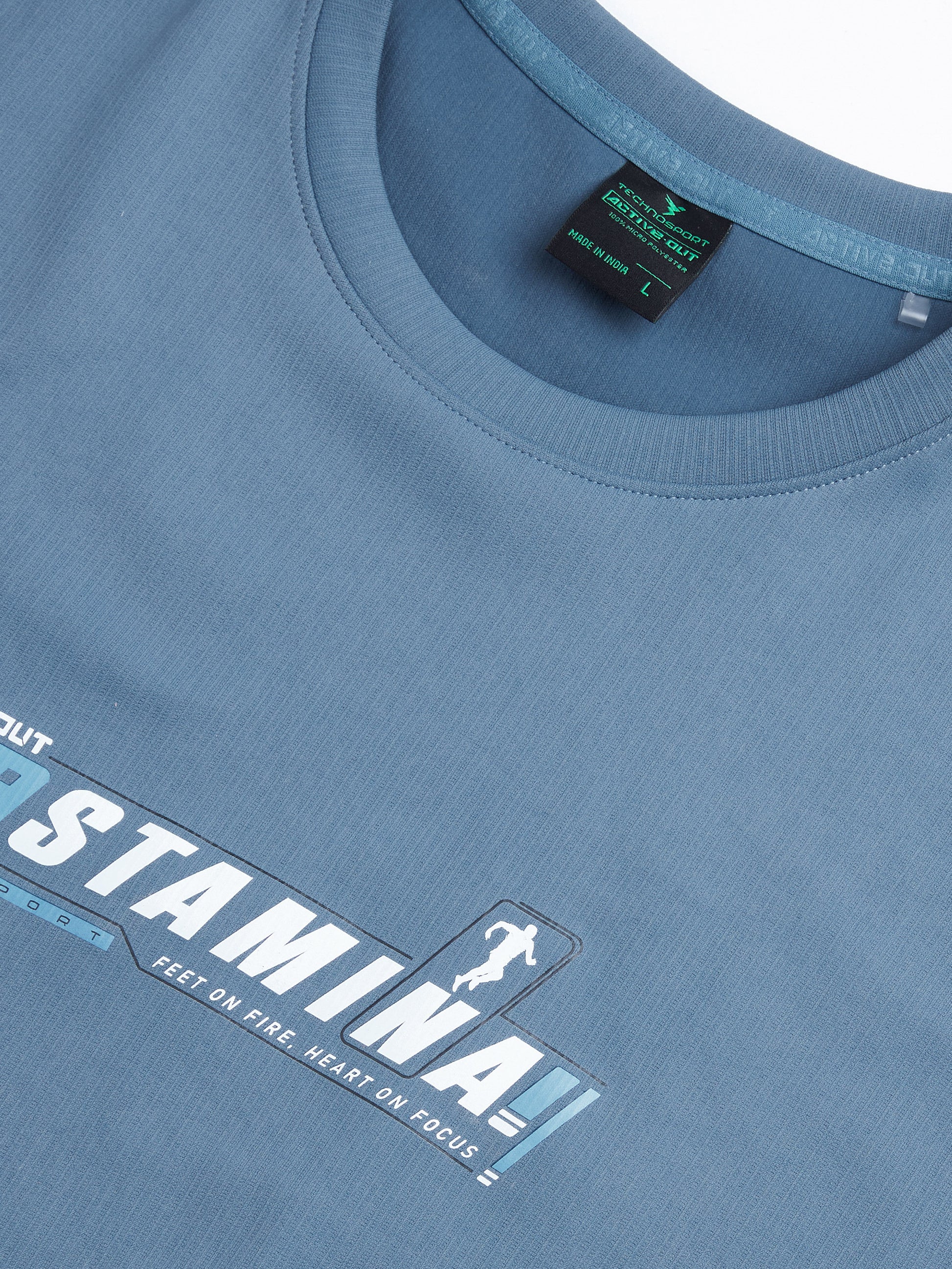 Offer Valid on a Minimum Cart Value of ₹999Men Round Neck Typography Printed Active Out Slim Fit T-Shirt with ELASTOPLUS