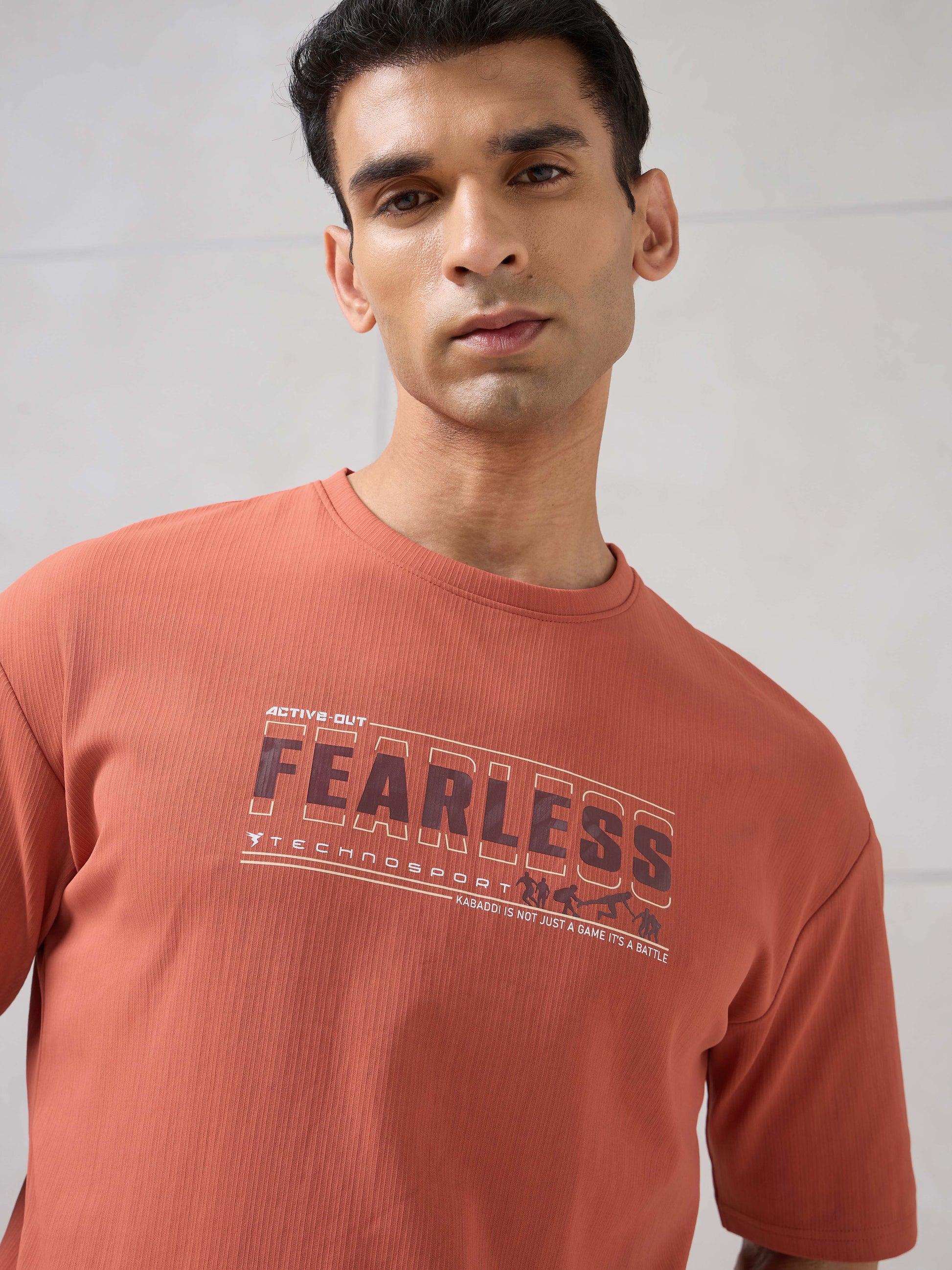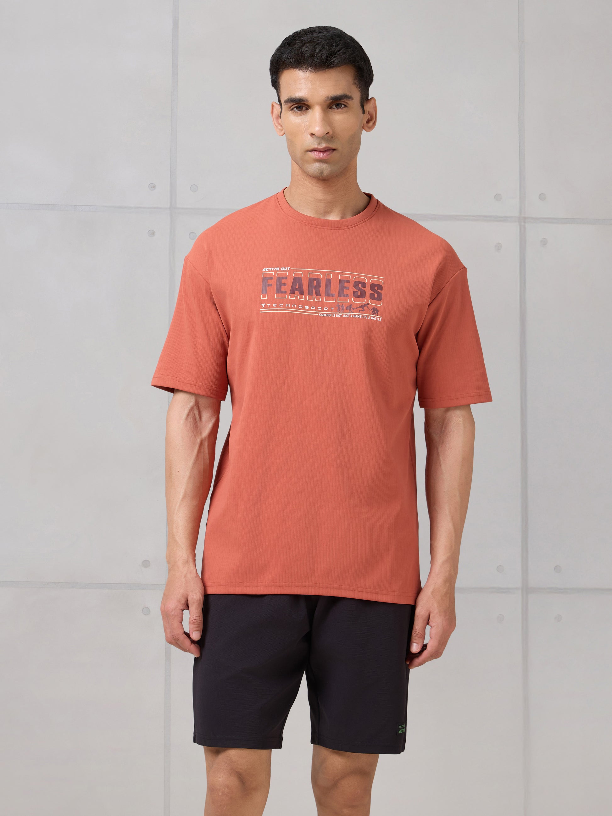 Men Round Neck Typography Printed Active Out Slim Fit T-Shirt with ELASTOPLUS