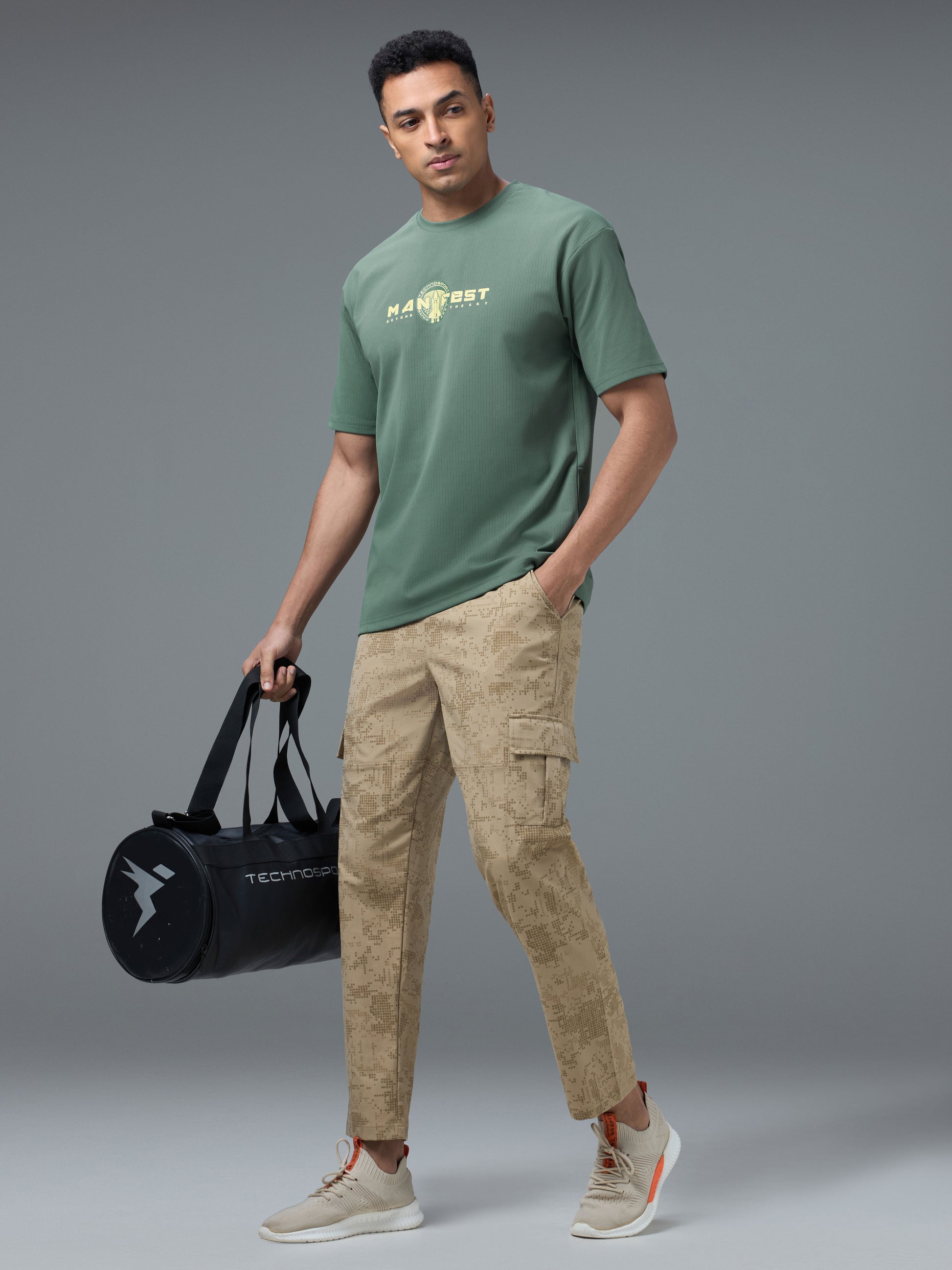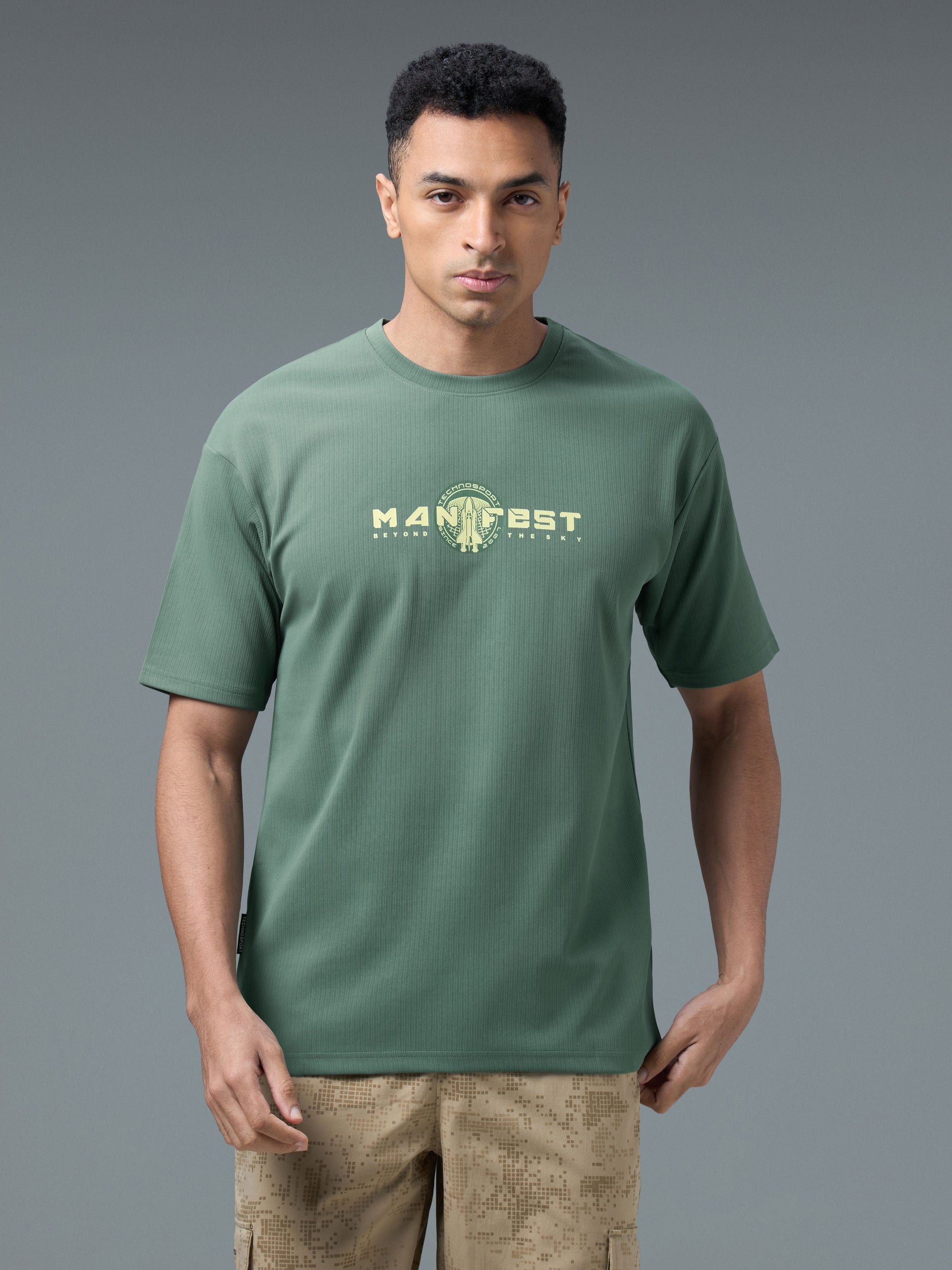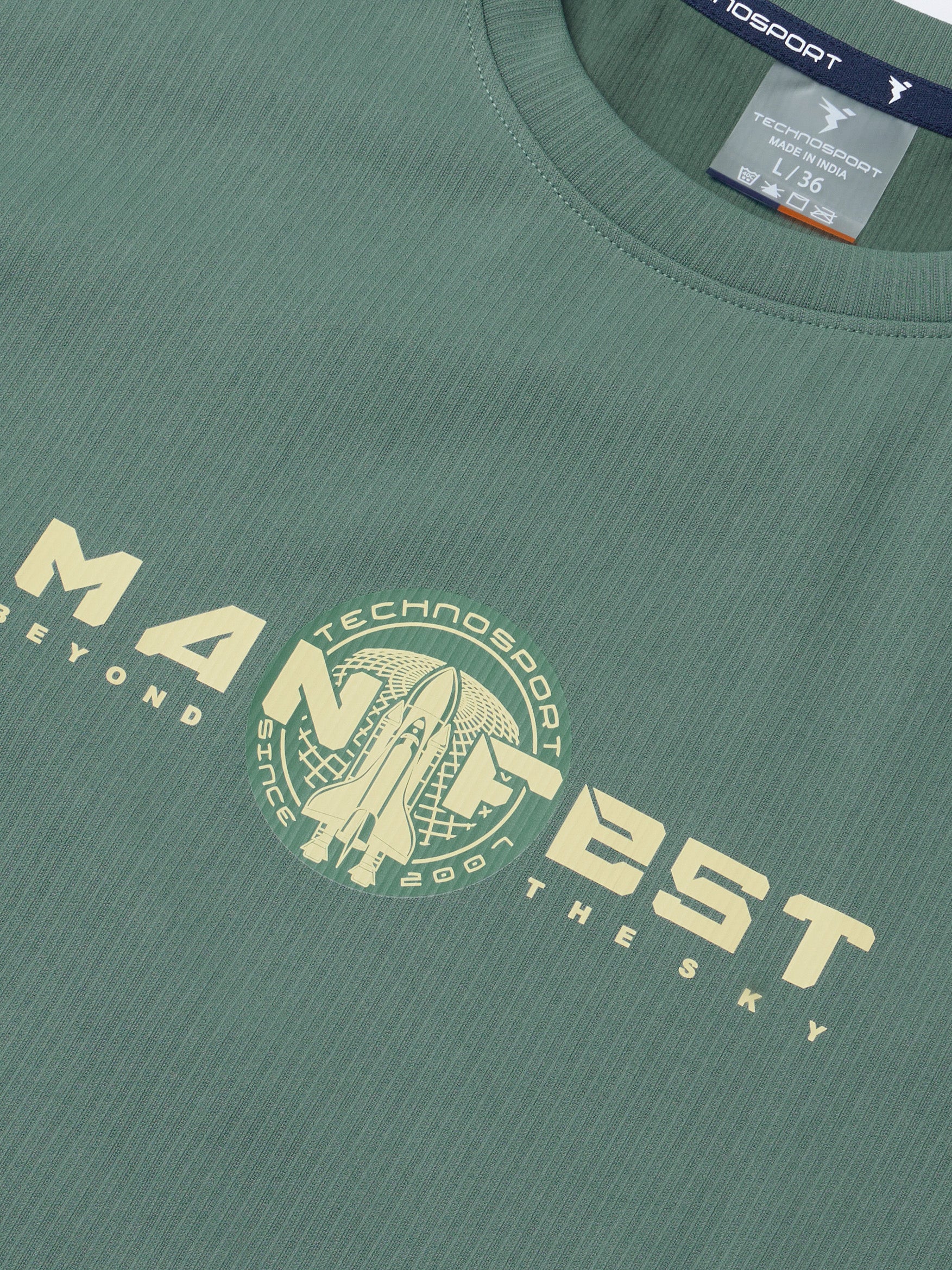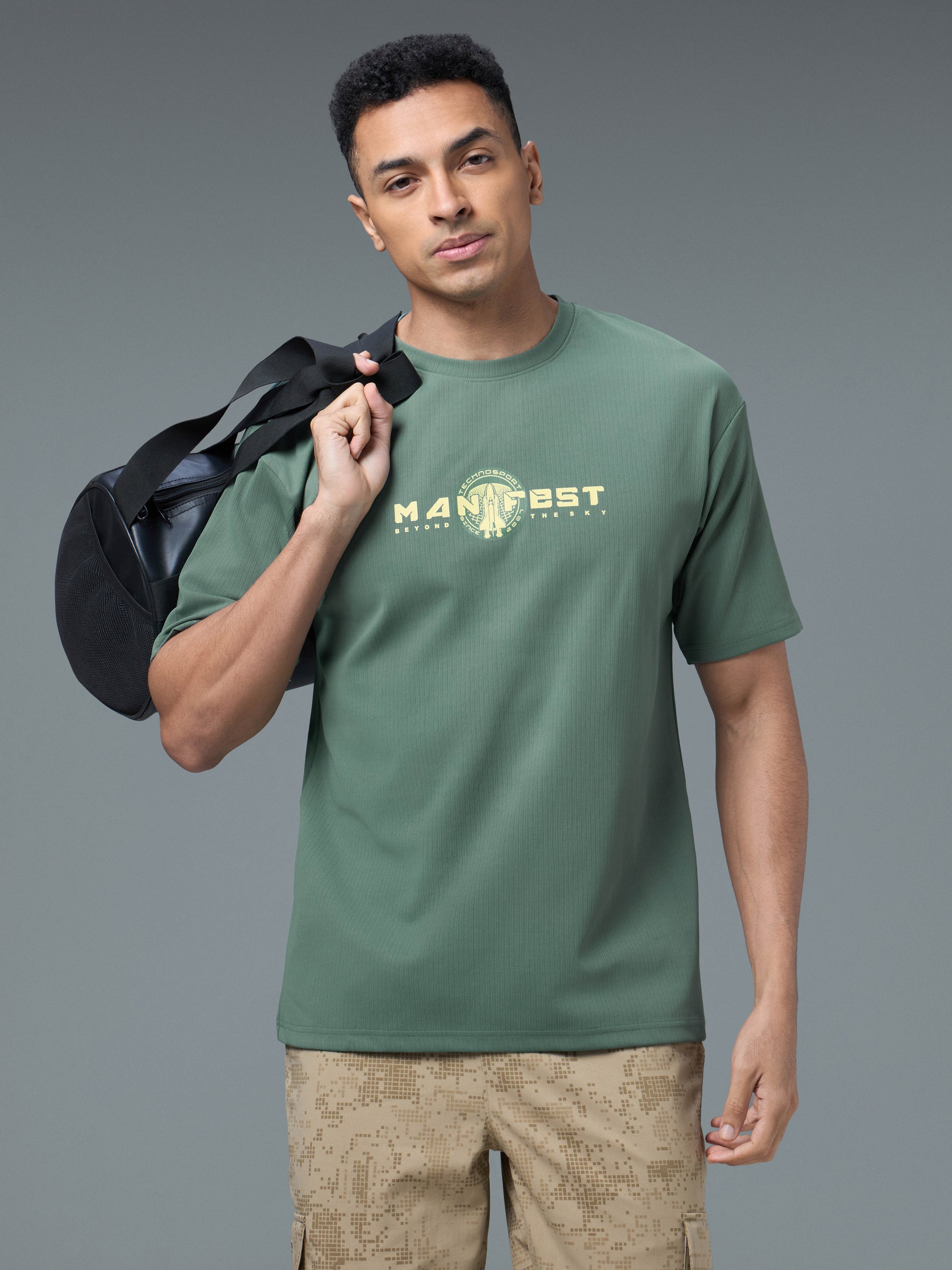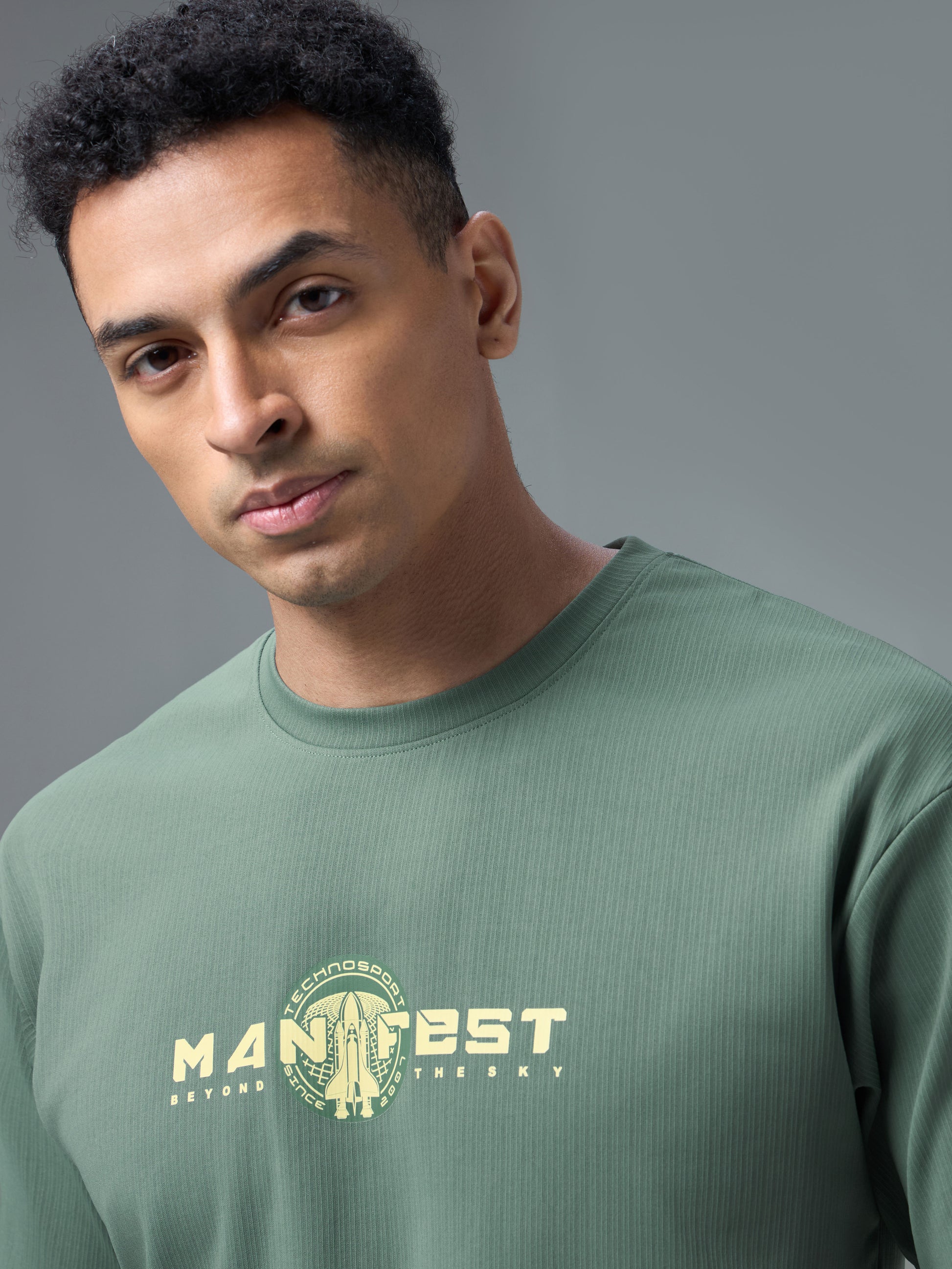 Men Round Neck Typography Printed Active Out Slim Fit T-Shirt with ELASTOPLUS
