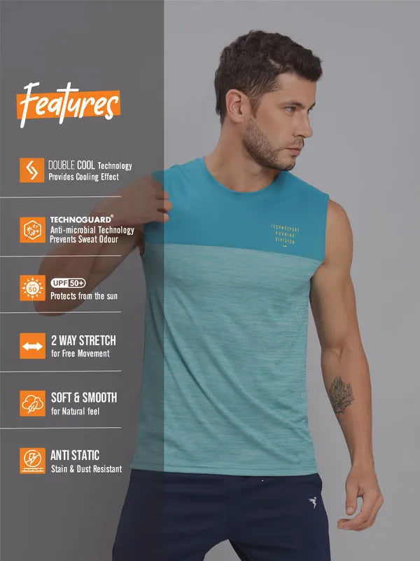 Maximize your cool factor in our Men's Gym Vest with DOUBLE COOL for an extra cooling effect. Featuring UPF50+ sun protection, ODOURFREE freshness, TECHNOGUARD anti-microbial shield, 2-Way Stretch for freedom of movement, Soft & Smooth touch, and Anti Static technology. Elevate your workout experience with unparalleled comfort.