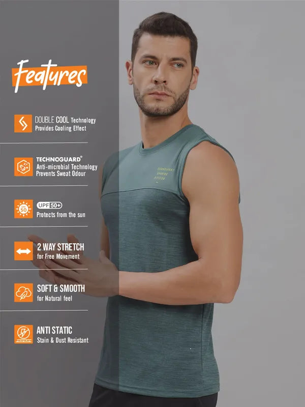 Maximize your cool factor in our Men's Gym Vest with DOUBLE COOL for an extra cooling effect. Featuring UPF50+ sun protection, ODOURFREE freshness, TECHNOGUARD anti-microbial shield, 2-Way Stretch for freedom of movement, Soft & Smooth touch, and Anti Static technology. Elevate your workout experience with unparalleled comfort.