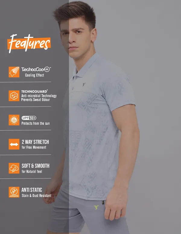 Stay cool and stylish in our Men's Polo Active T-Shirt, featuring TECHNOCOOL+ for dryness in hot conditions. Enjoy UPF50+ sun protection, ODOURFREE freshness, TECHNOGUARD anti-microbial shield, 2-Way Stretch for freedom of movement, Soft & Smooth touch, and Anti Static technology. Embrace comfort that goes beyond expectations