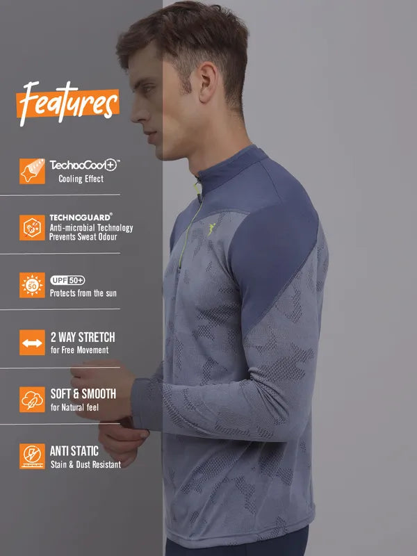 Men Jacquard Slim Fit Mock Neck T-shirt with TECHNO COOL+