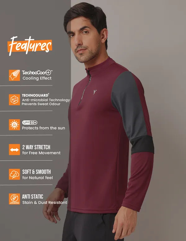 Offer Valid on a Minimum Cart Value of ₹999Men Colorblock Slim Fit Mock Neck T-shirt with TECHNO COOL+