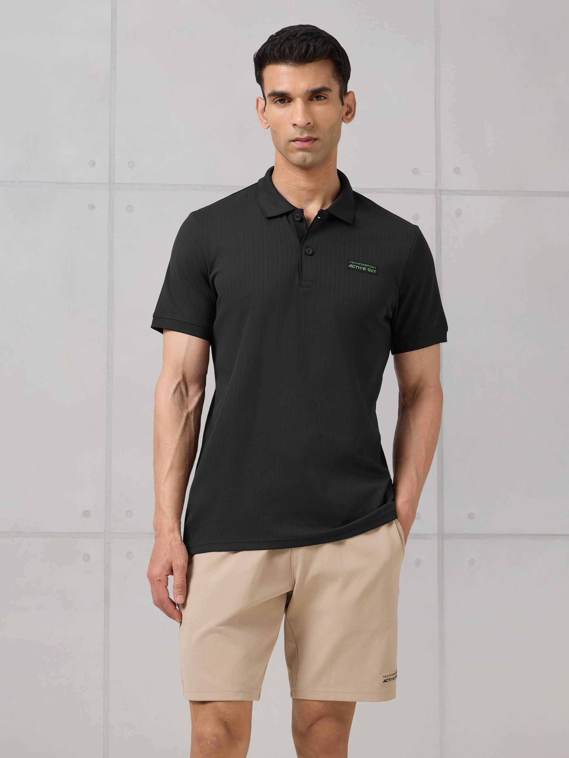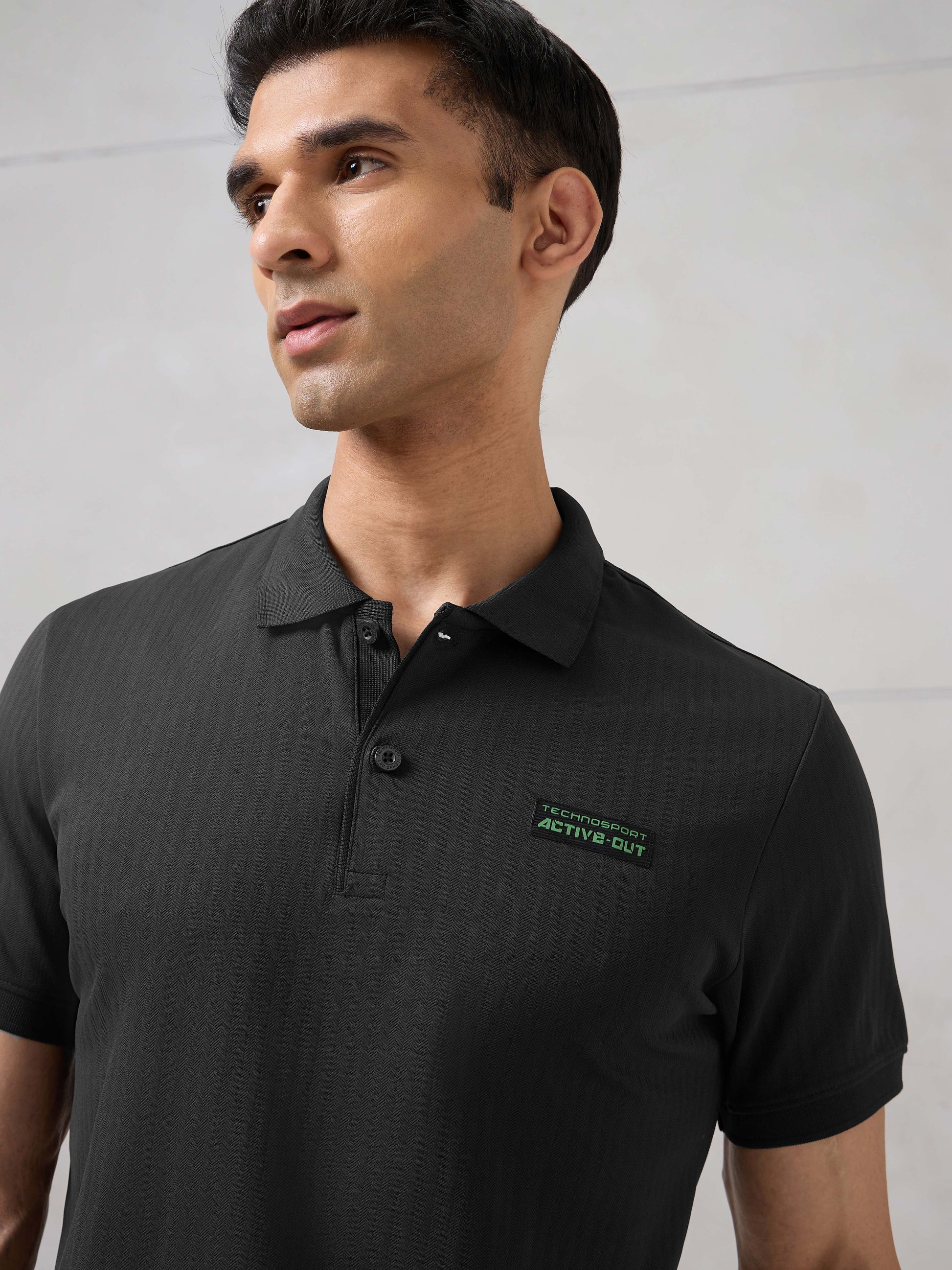 Offer Valid on a Minimum Cart Value of ₹999Men Self Design Active Out Slim Fit Polo T-Shirt with ELASTO PLUS