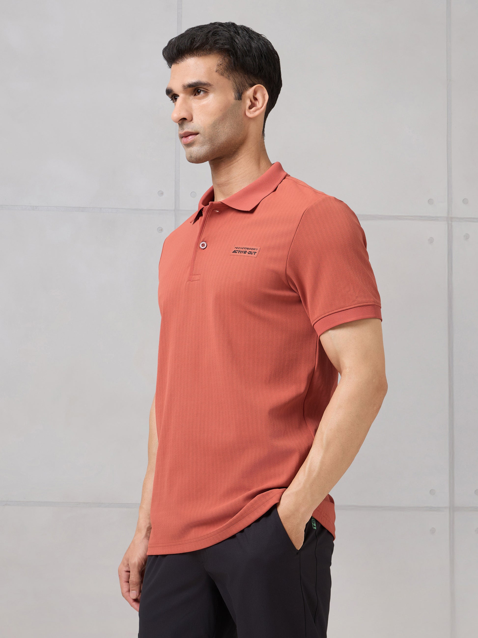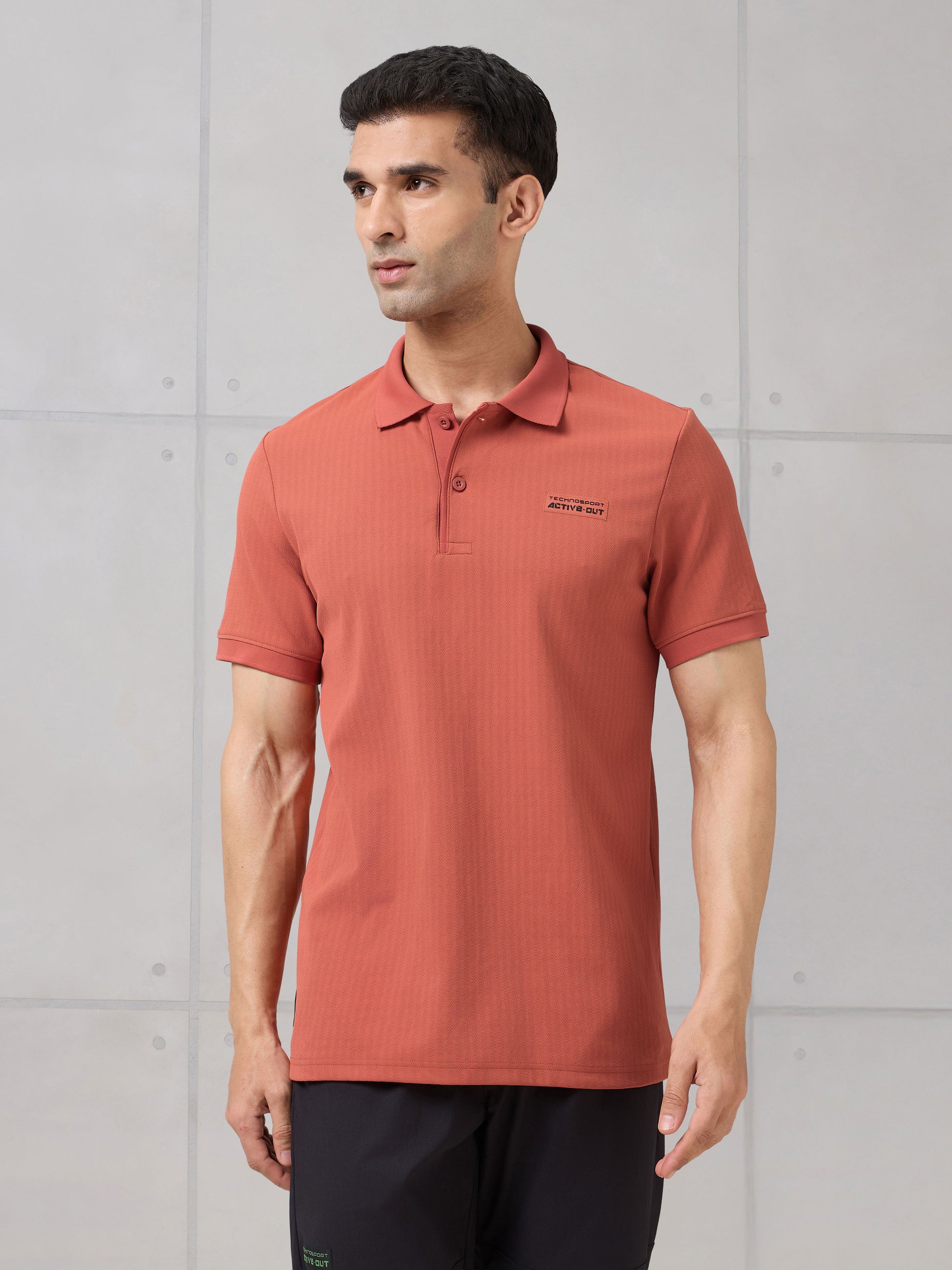 Offer Valid on a Minimum Cart Value of ₹999Men Self Design Active Out Slim Fit Polo T-Shirt with ELASTO PLUS