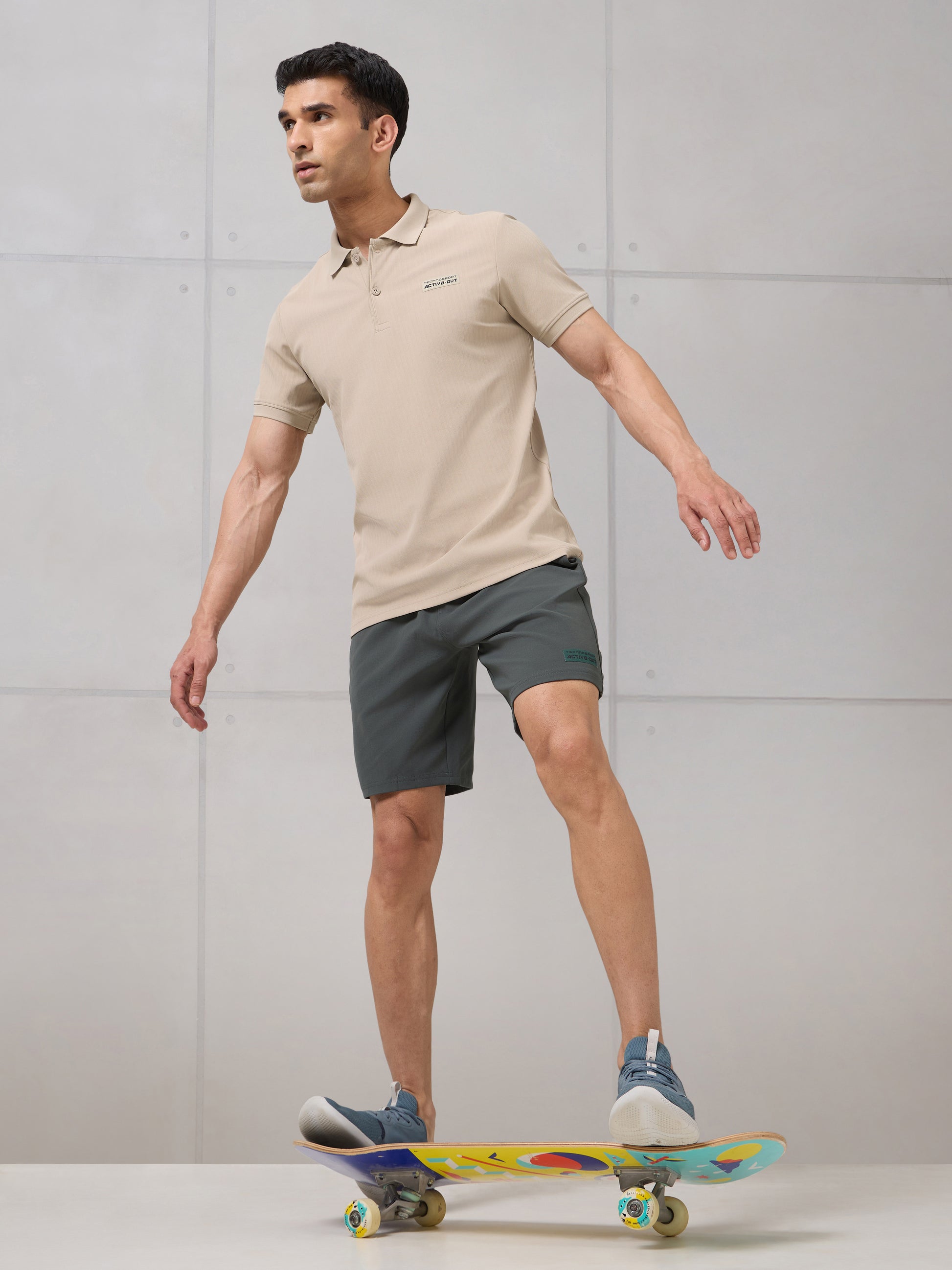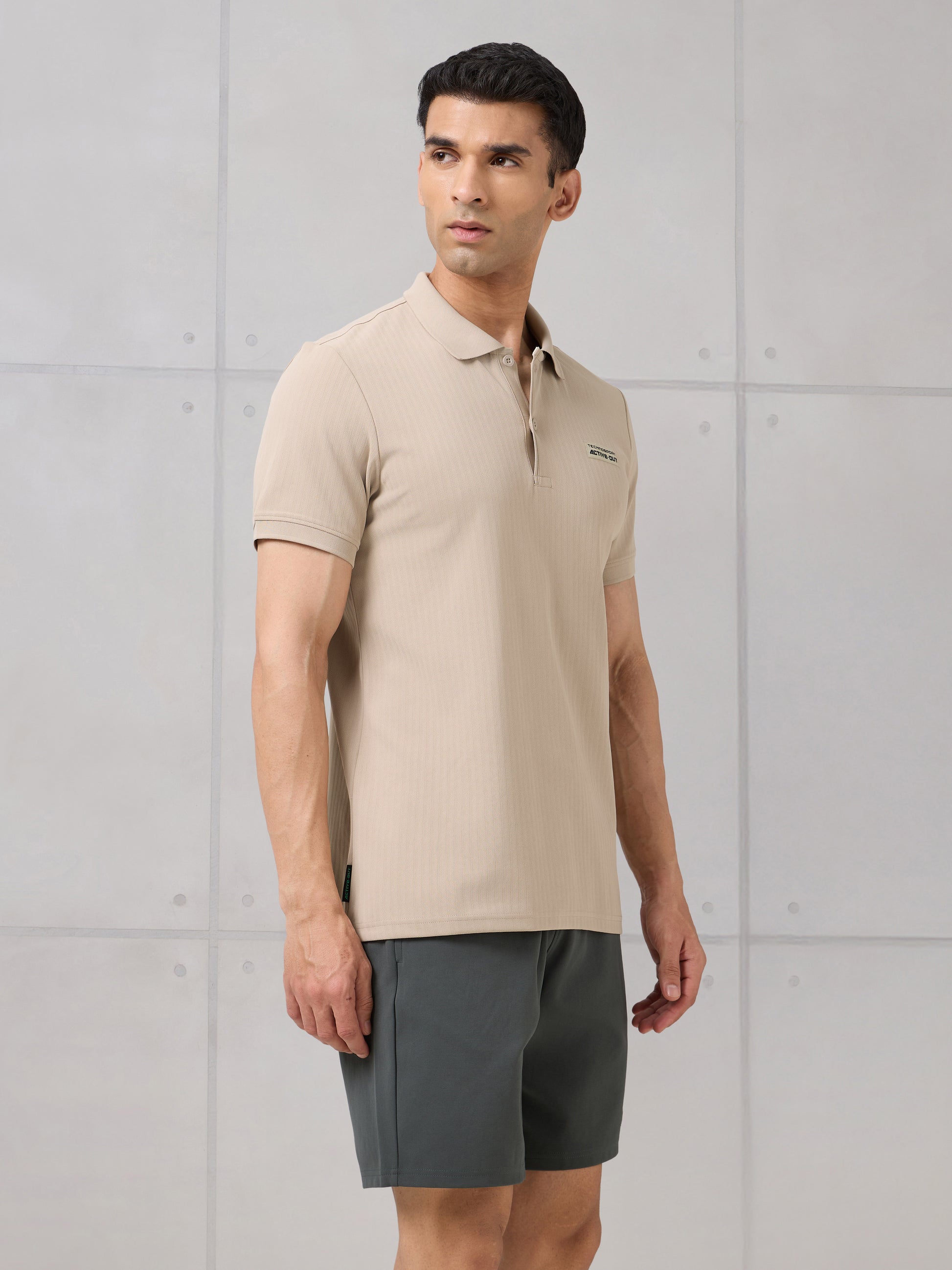 Offer Valid on a Minimum Cart Value of ₹999Men Self Design Active Out Slim Fit Polo T-Shirt with ELASTO PLUS