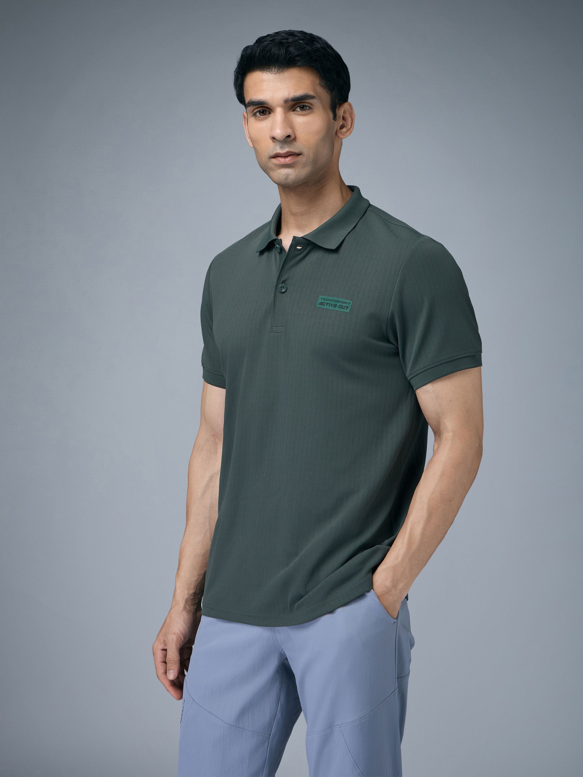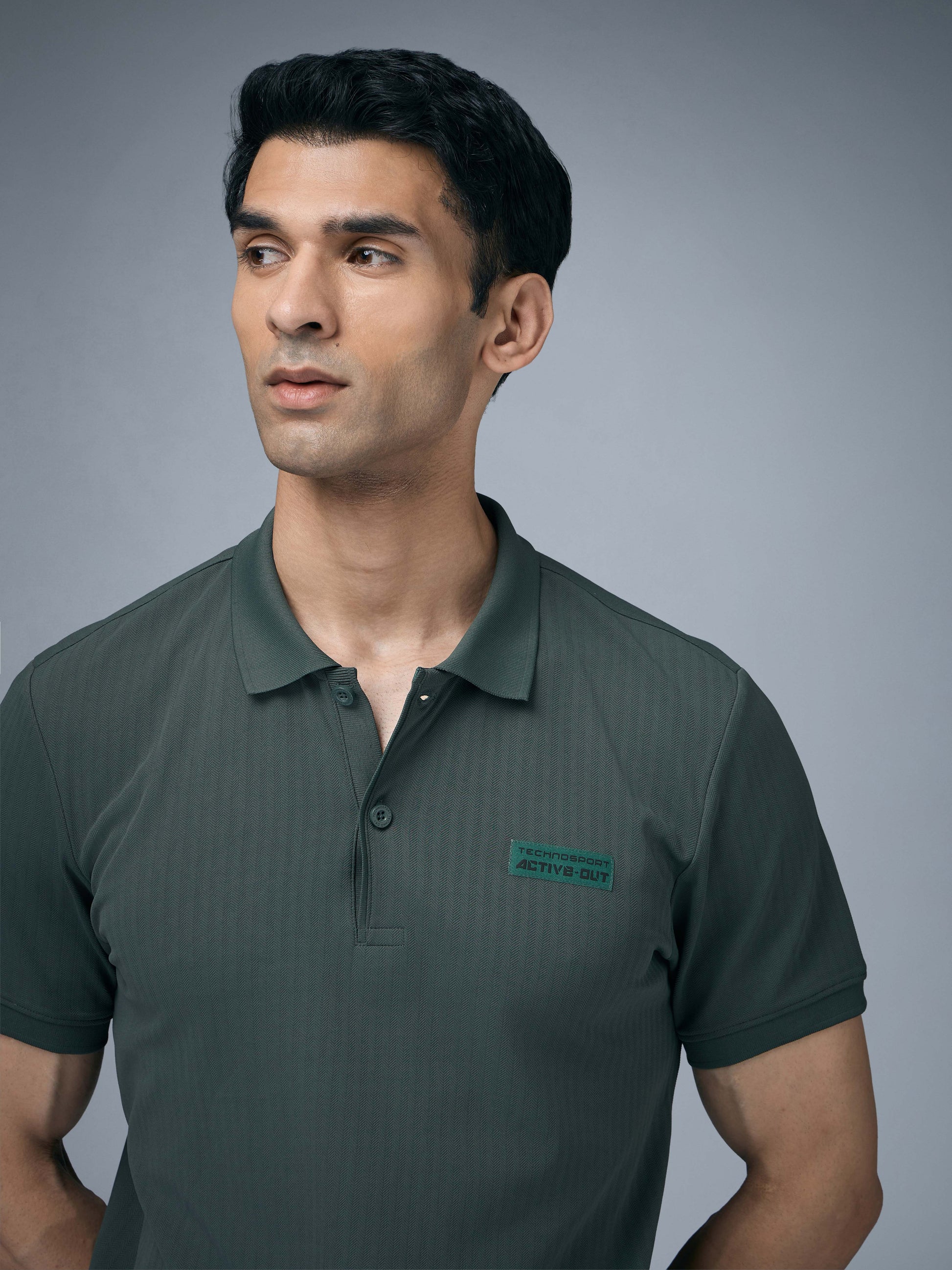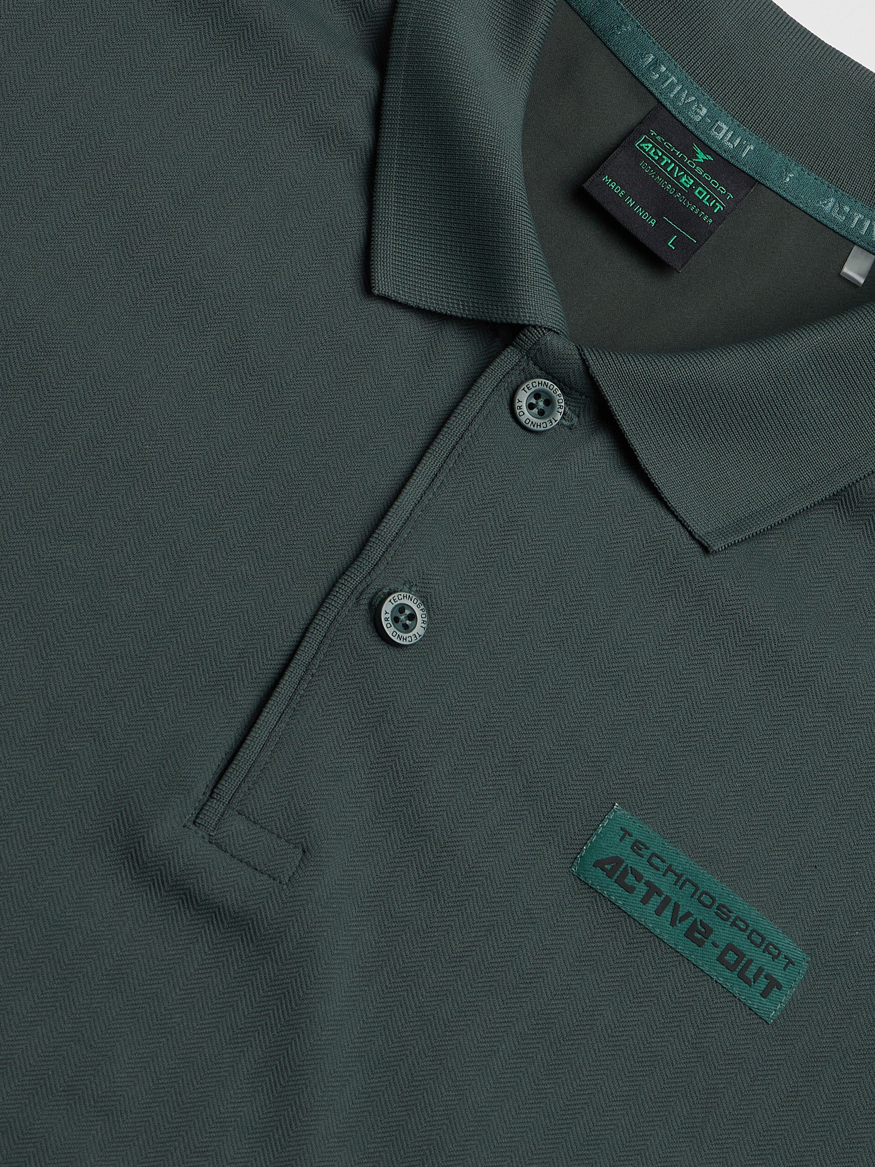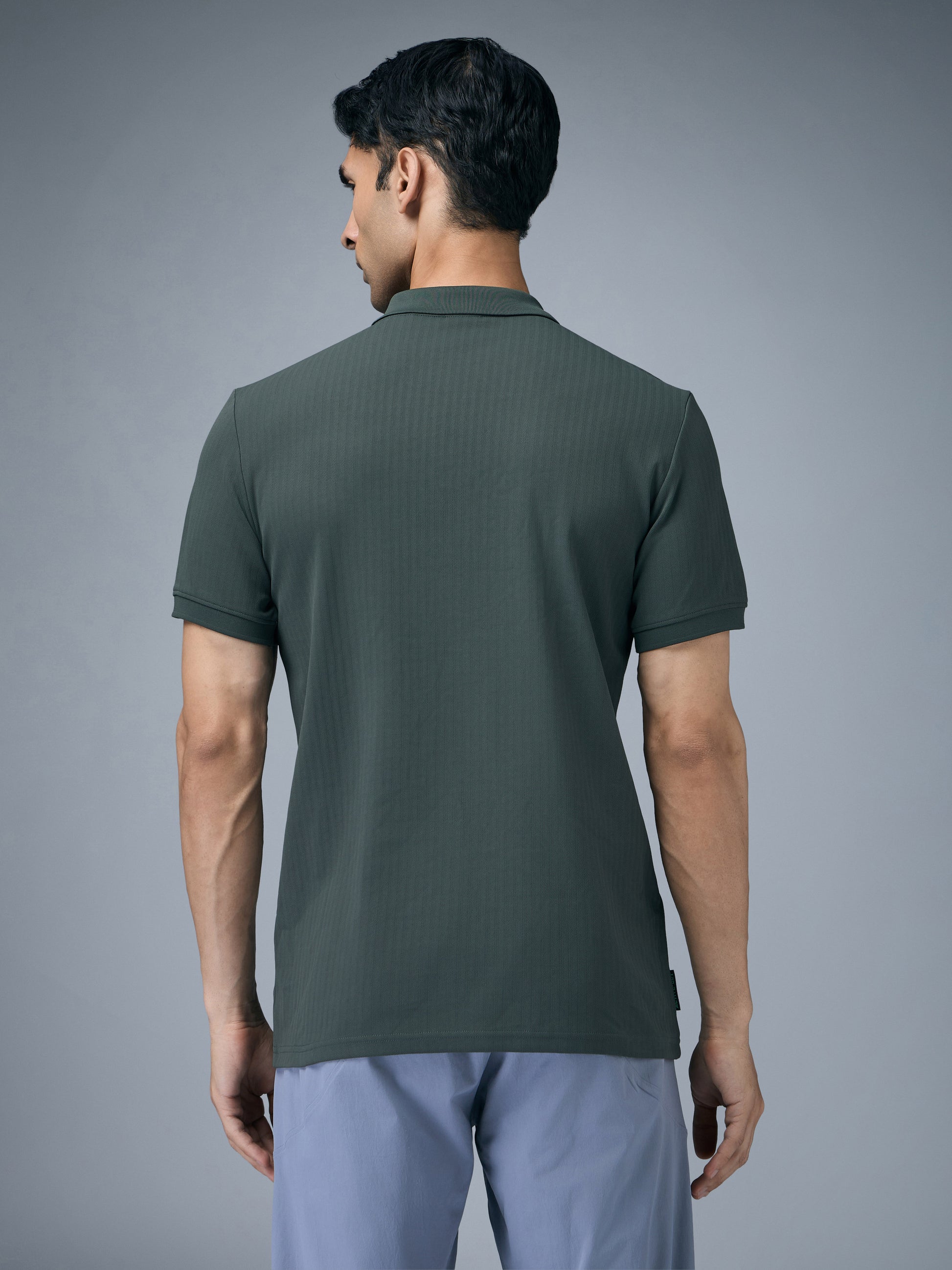 Offer Valid on a Minimum Cart Value of ₹999Men Self Design Active Out Slim Fit Polo T-Shirt with ELASTO PLUS