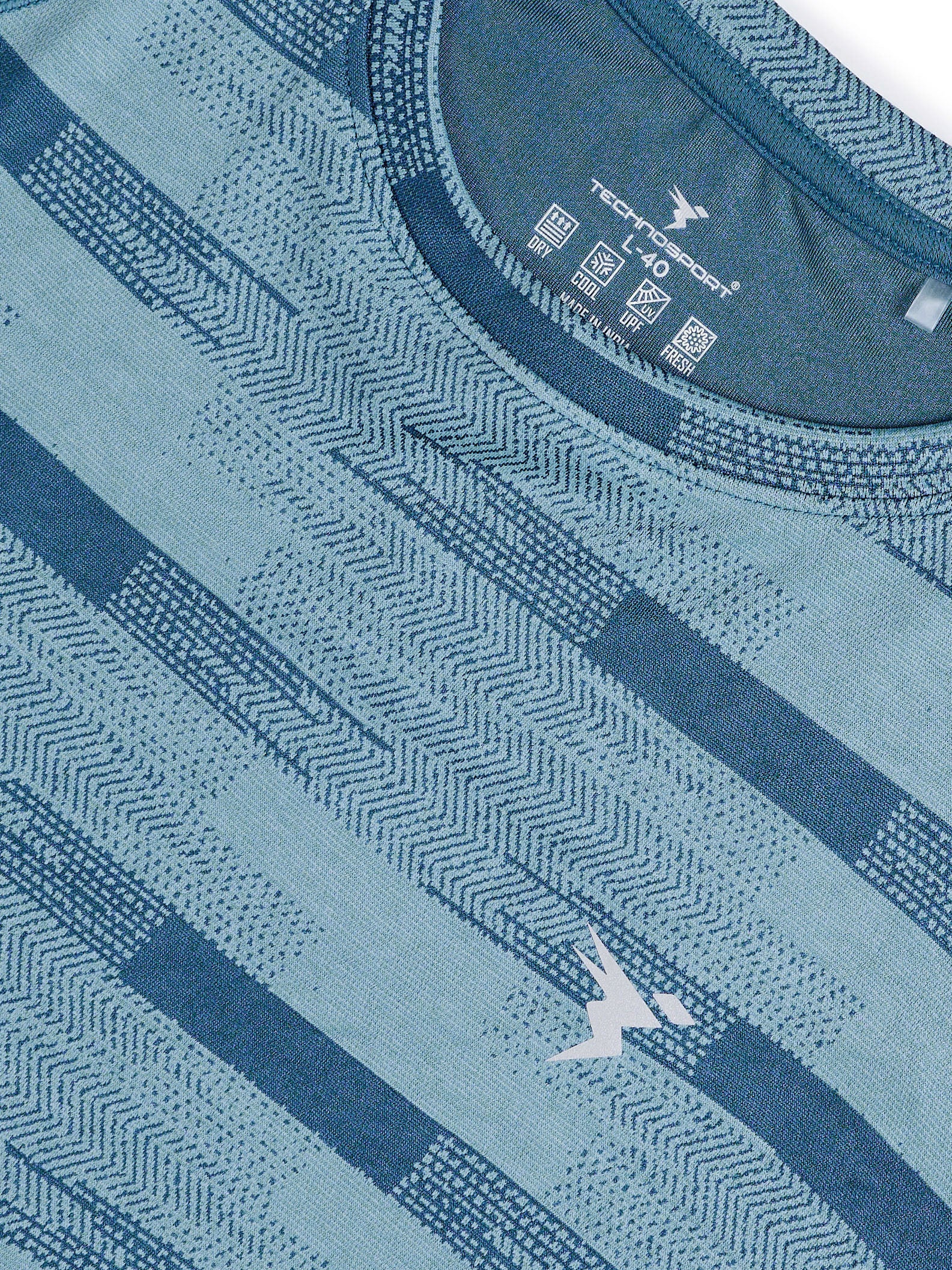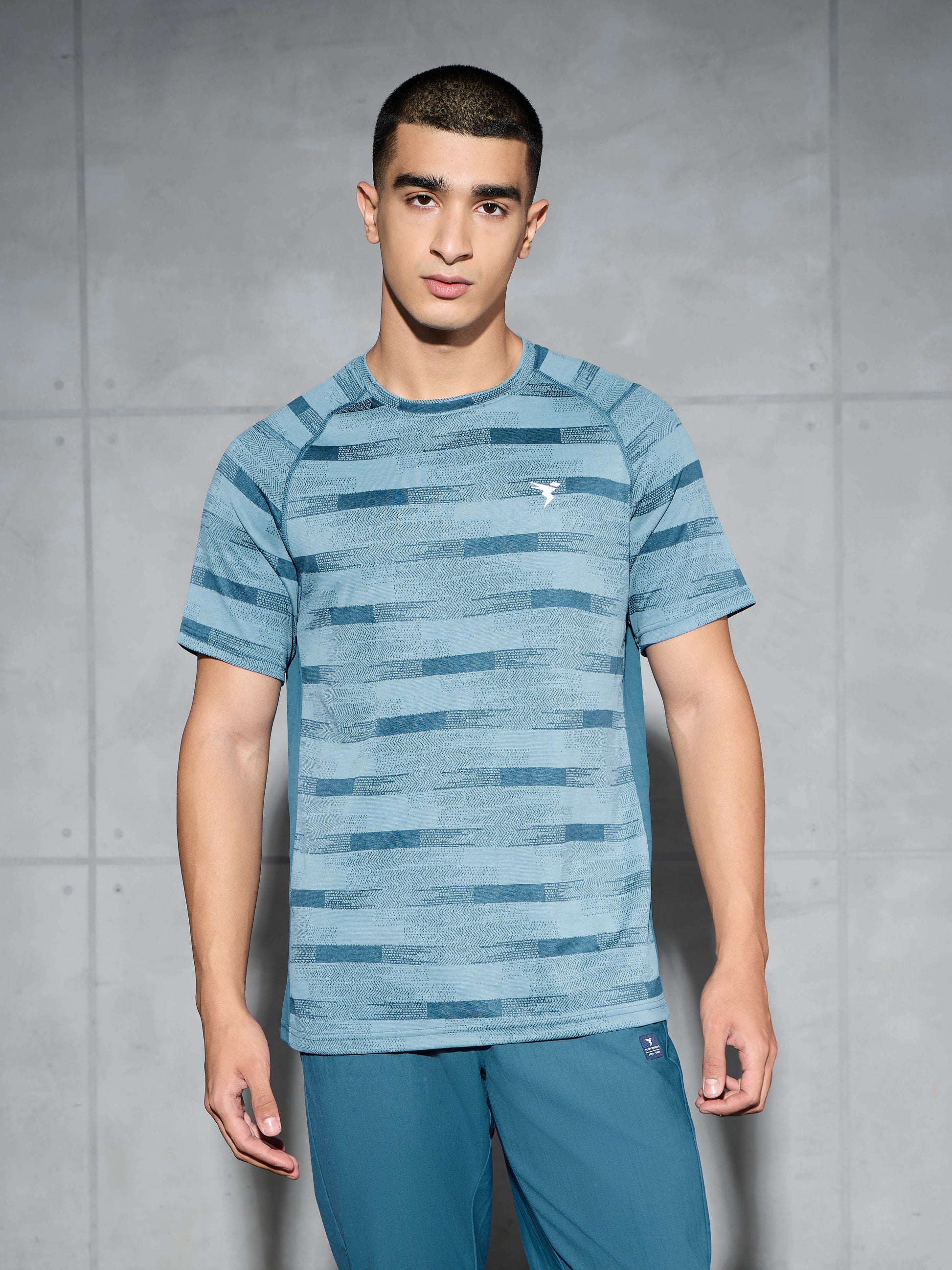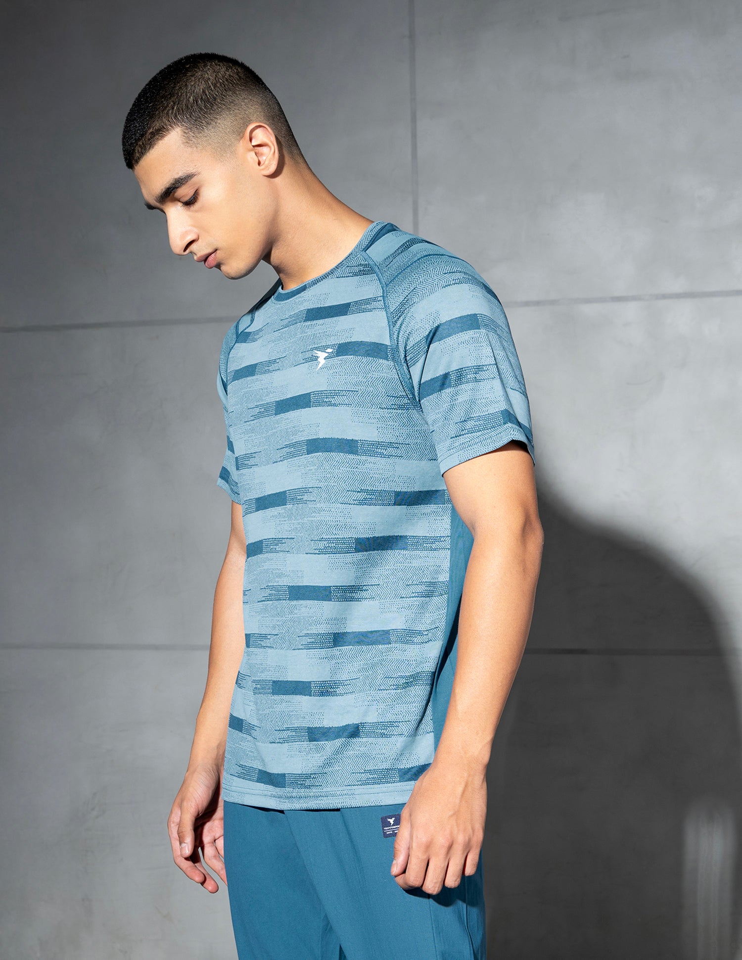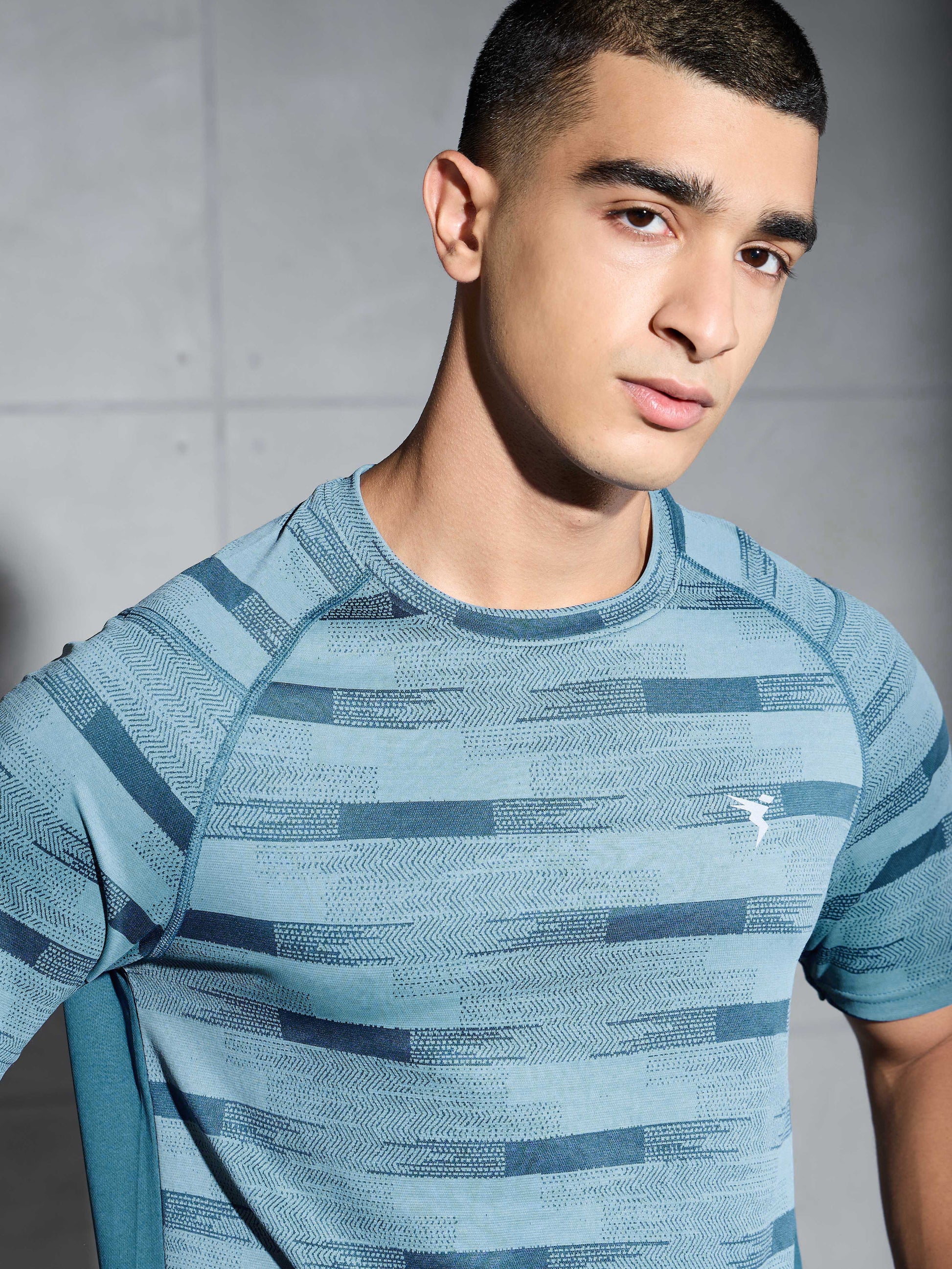 Offer Valid on a Minimum Cart Value of ₹999Men Self Design Slim Fit Crew Neck T-shirt with DOUBLE COOL