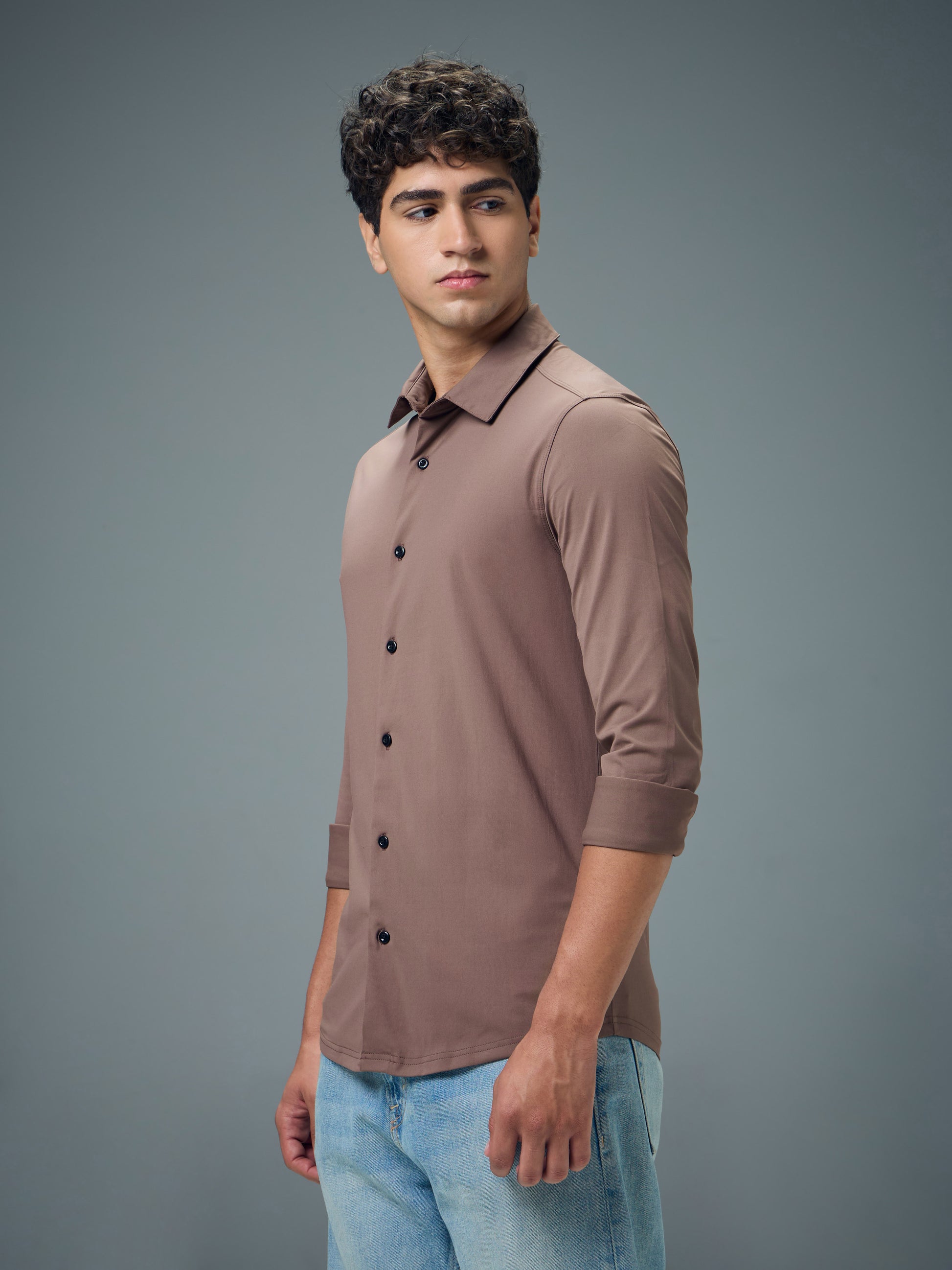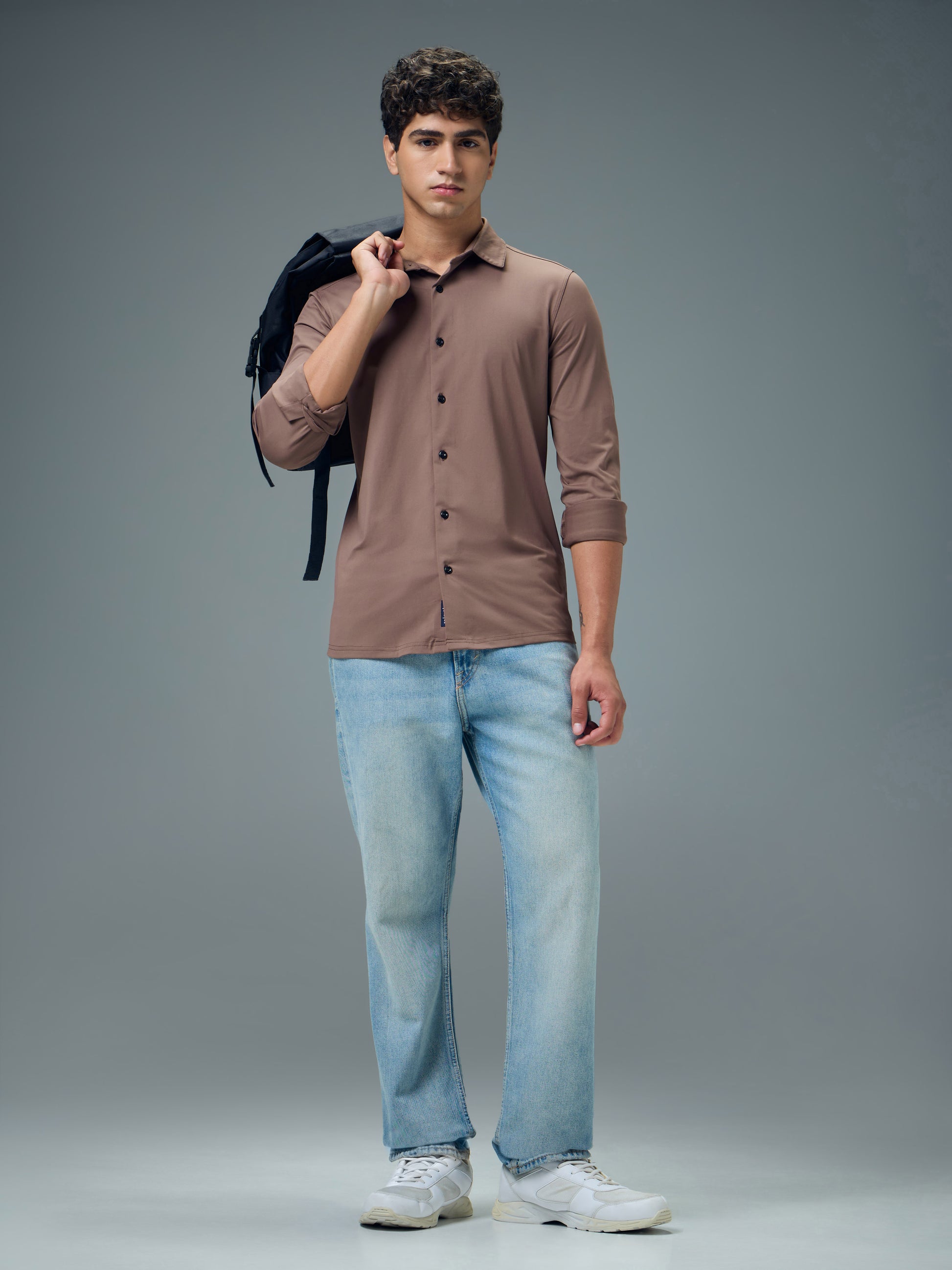 Men Solid Regular Fit Spread Collar Casual Shirt with COTFLEX