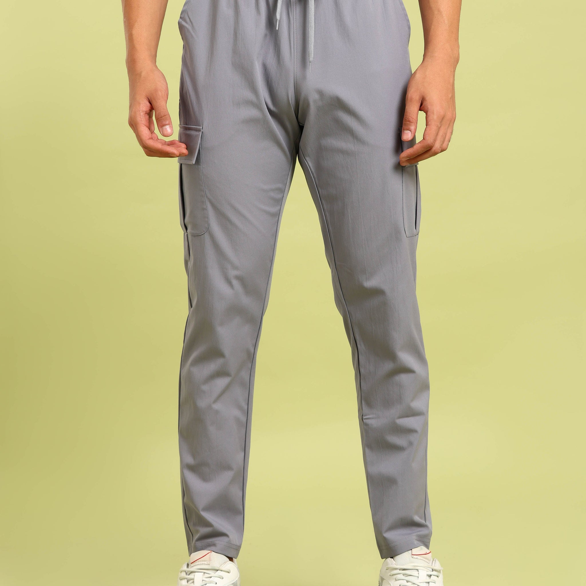 Men Solid Relax Fit Sports Cargo Trackpants with TS FLEXI
