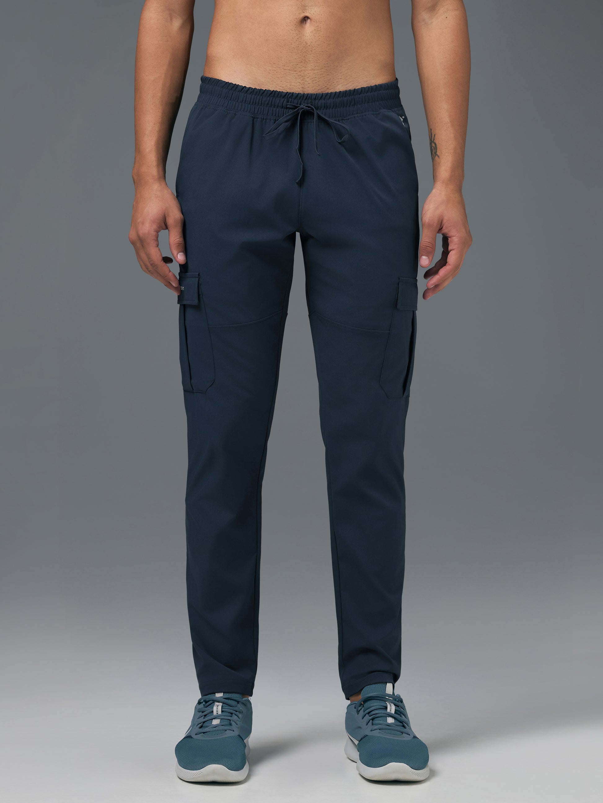 Men Solid Relax Fit Sports Cargo Trackpants with TS FLEXI