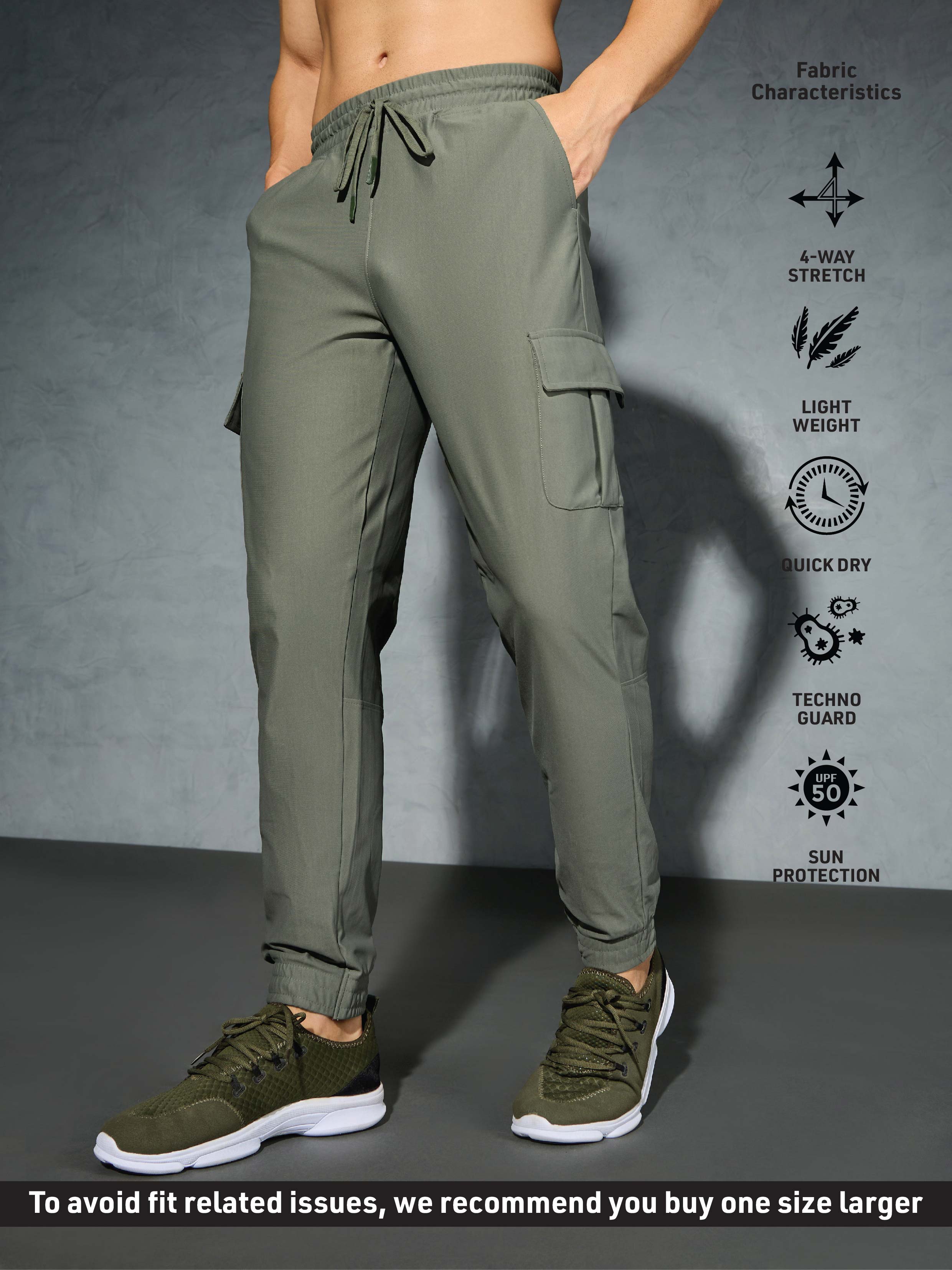 Men Solid Slim Fit Cargo Joggers with DURACOOL+