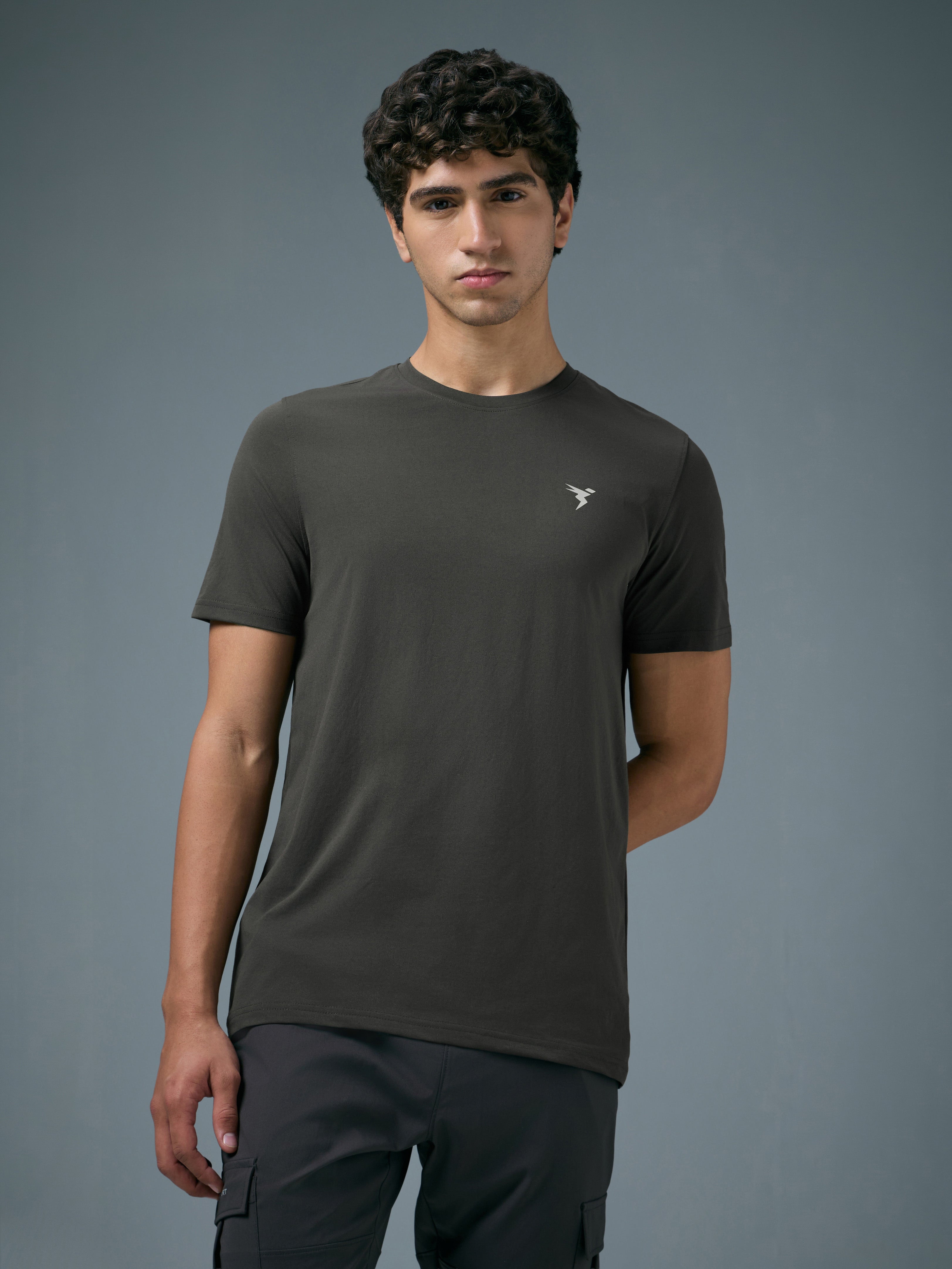Offer Valid on a Minimum Cart Value of ₹999Men Solid Slim Fit Crew Neck T-shirt with COTFLEX