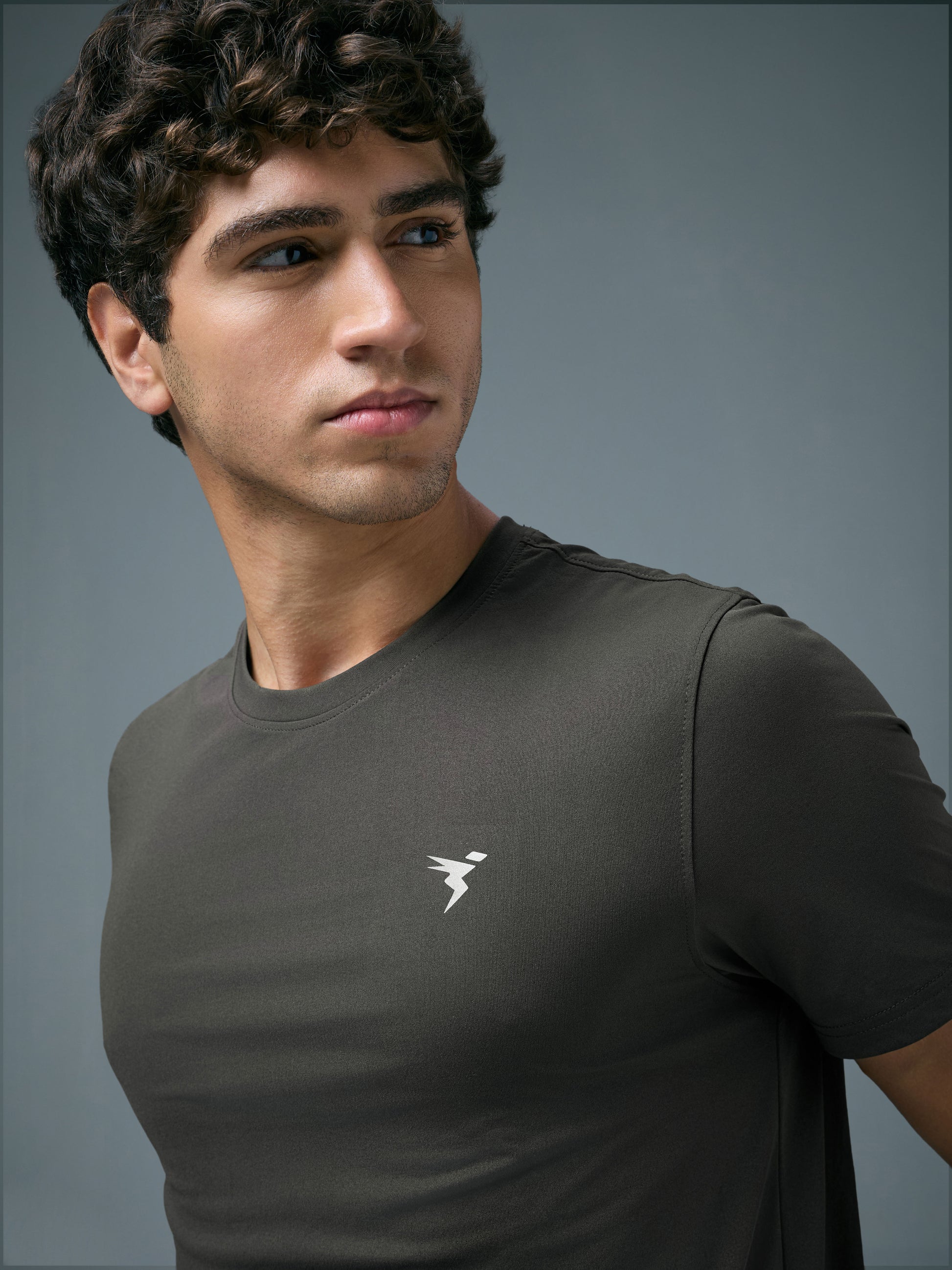 Men Solid Slim Fit Crew Neck T-shirt with COTFLEX