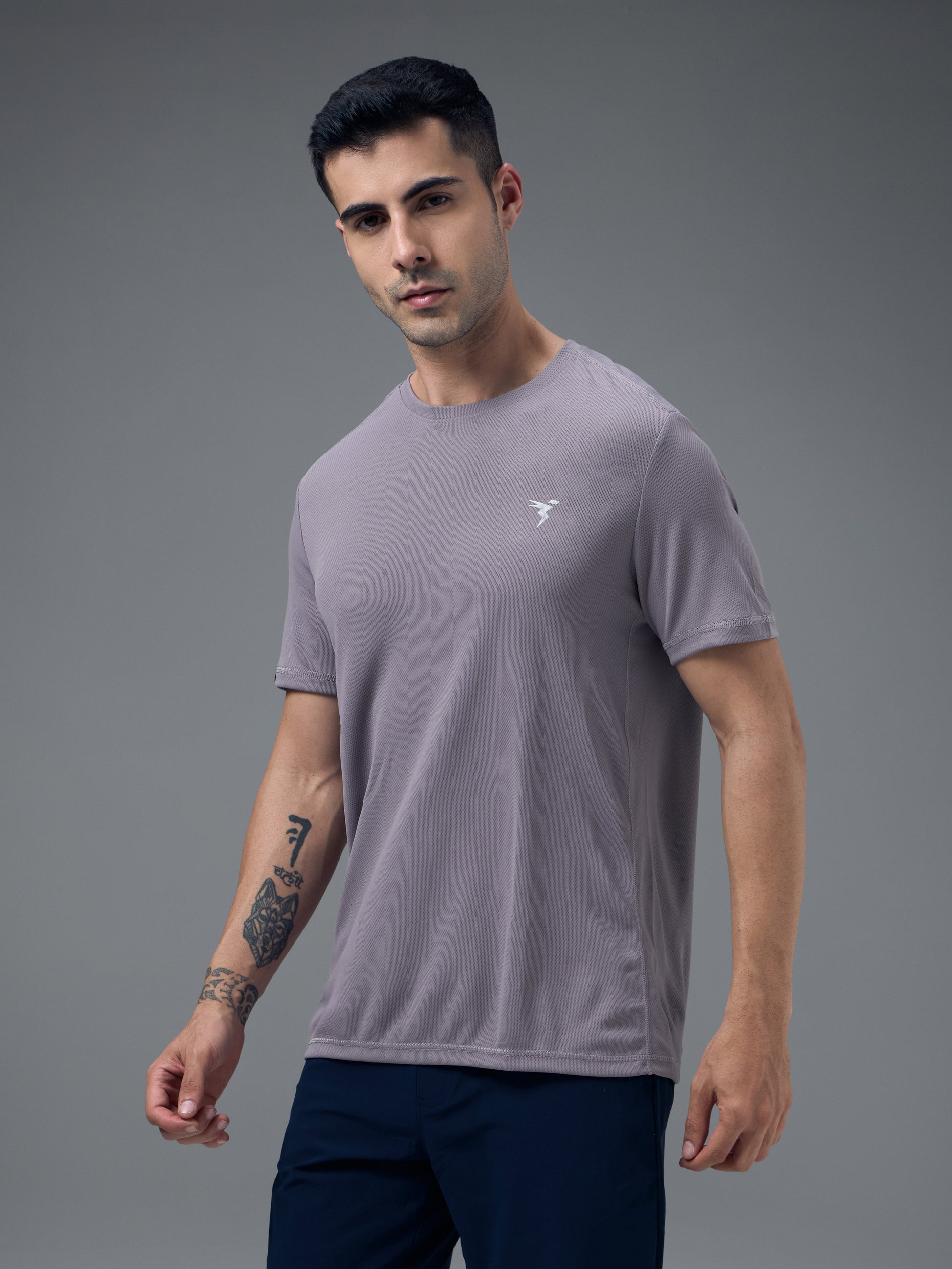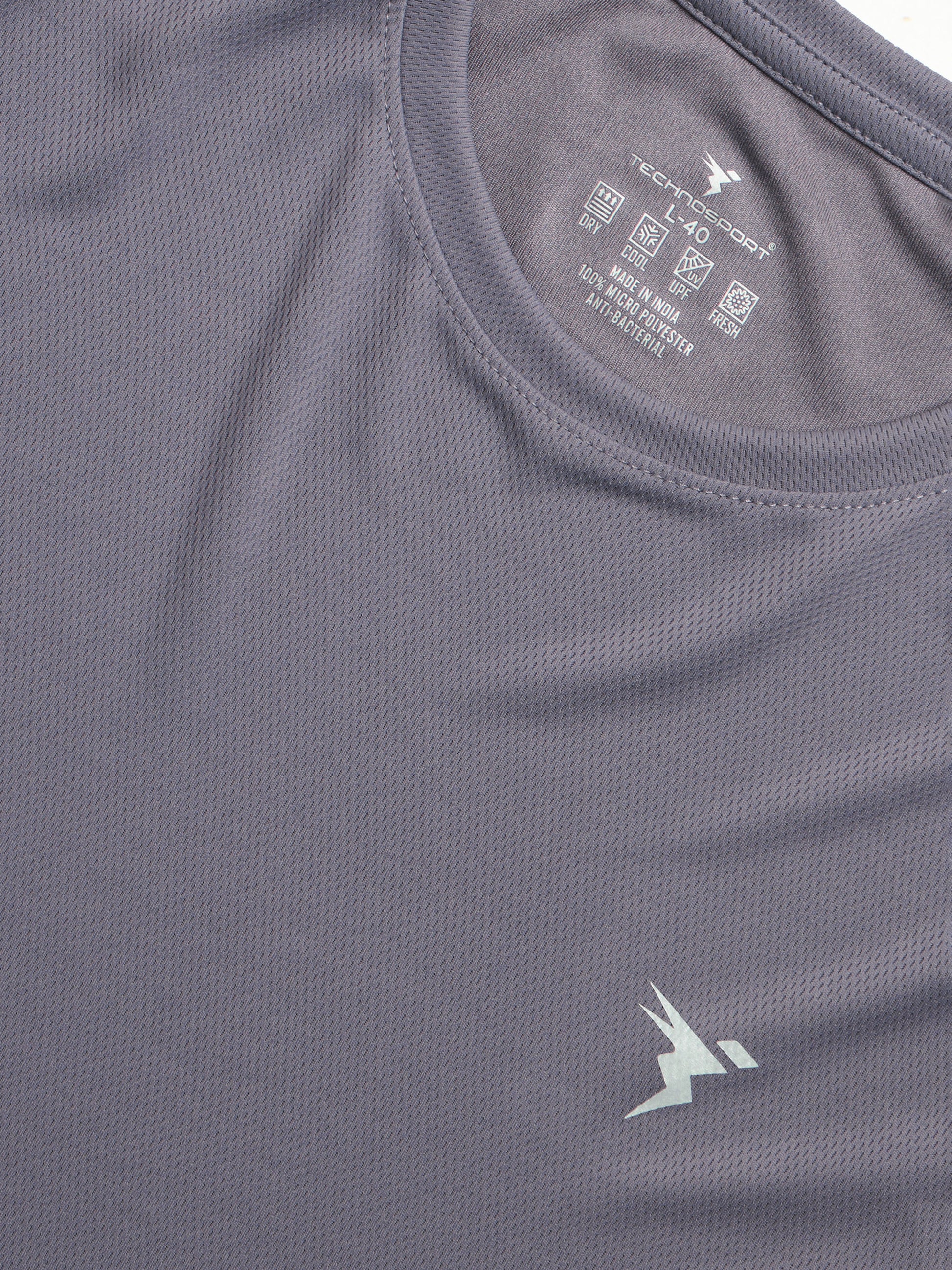 Men Solid Slim Fit Crew Neck T-shirt with TECHNO COOL+
