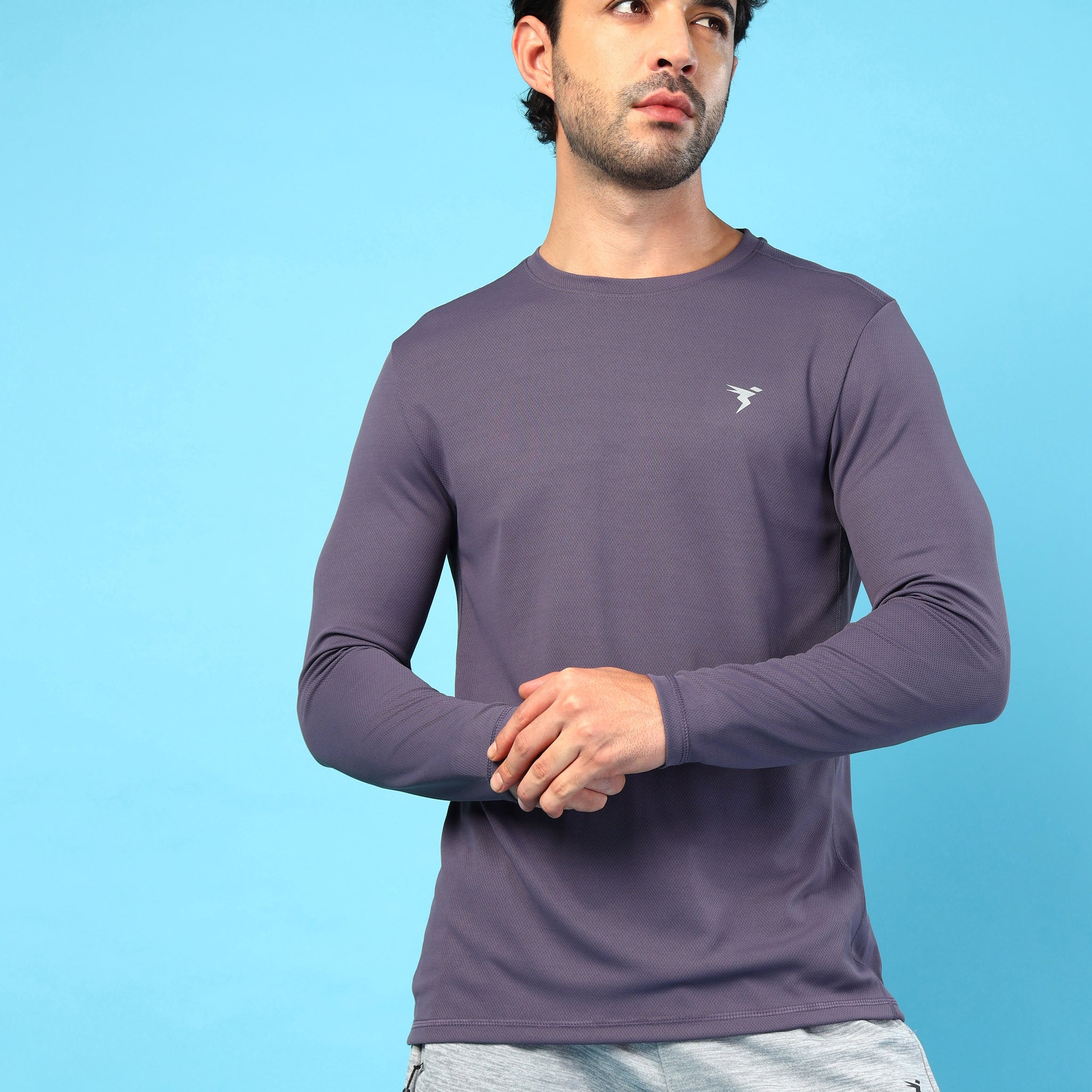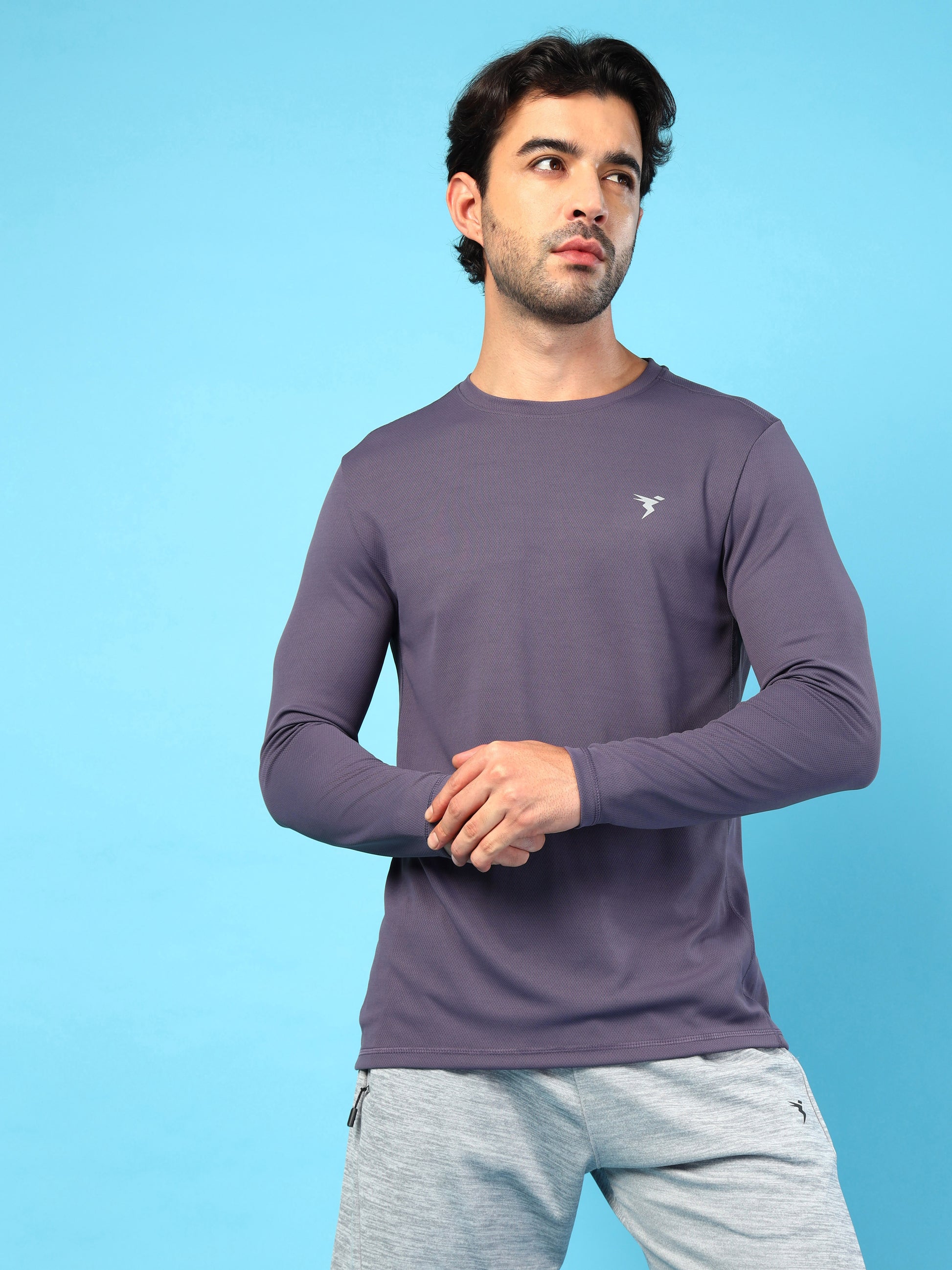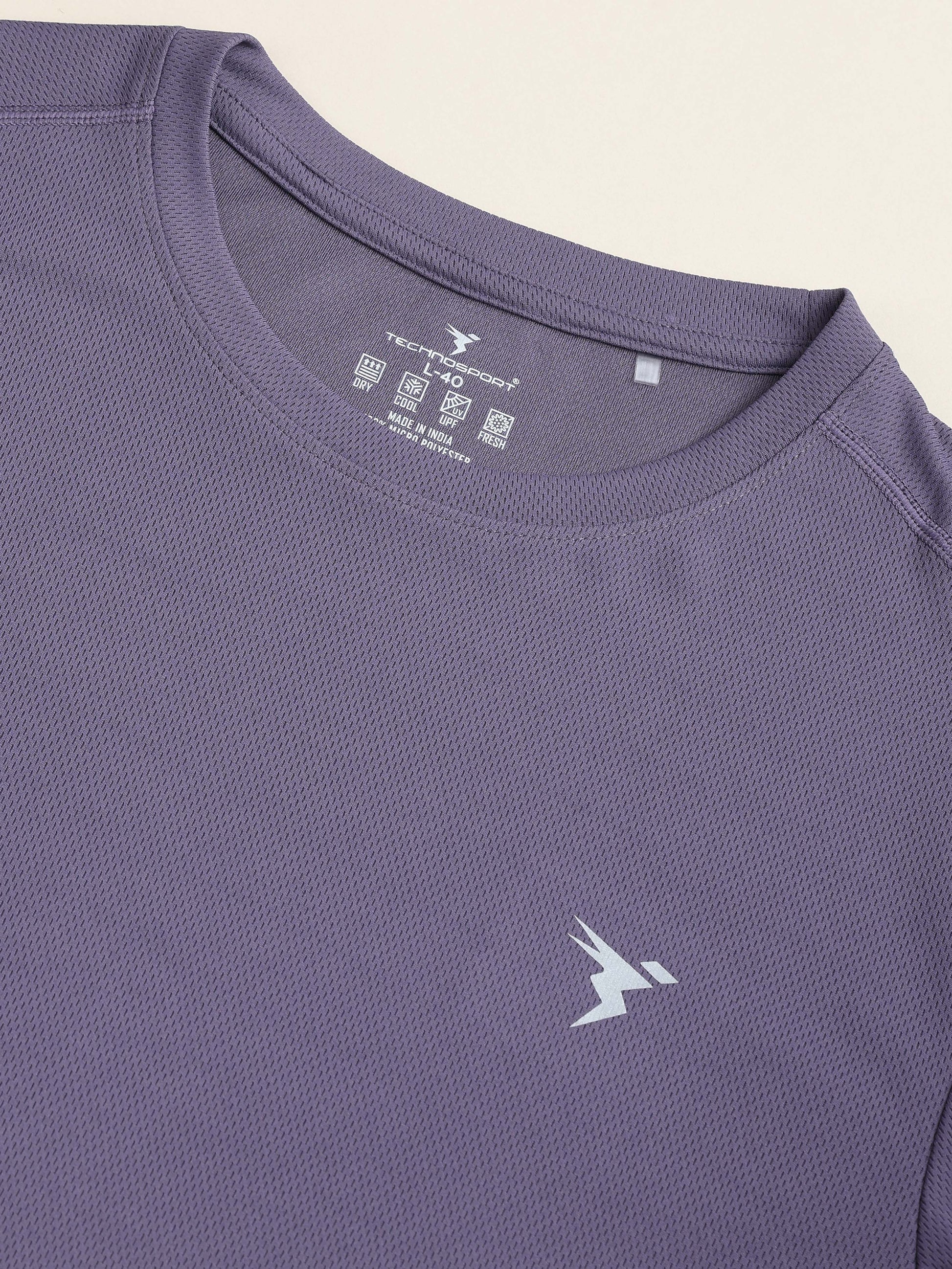 Men Solid Slim Fit Crew Neck T-shirt with TECHNO COOL+