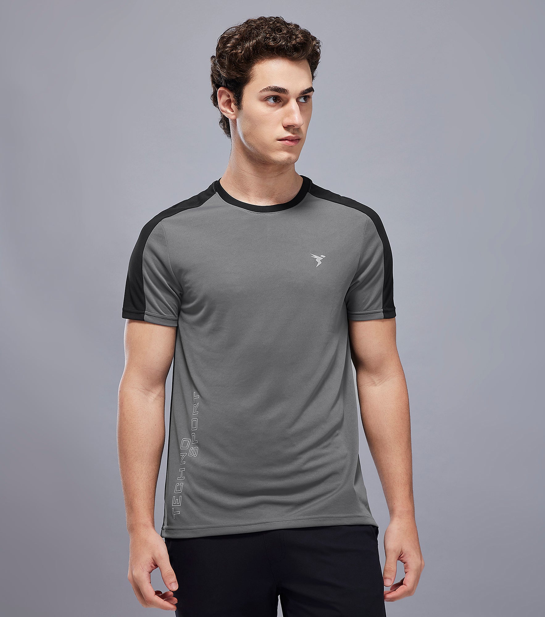 Men Solid Slim Fit Crew Neck T-shirt with TECHNO COOL+