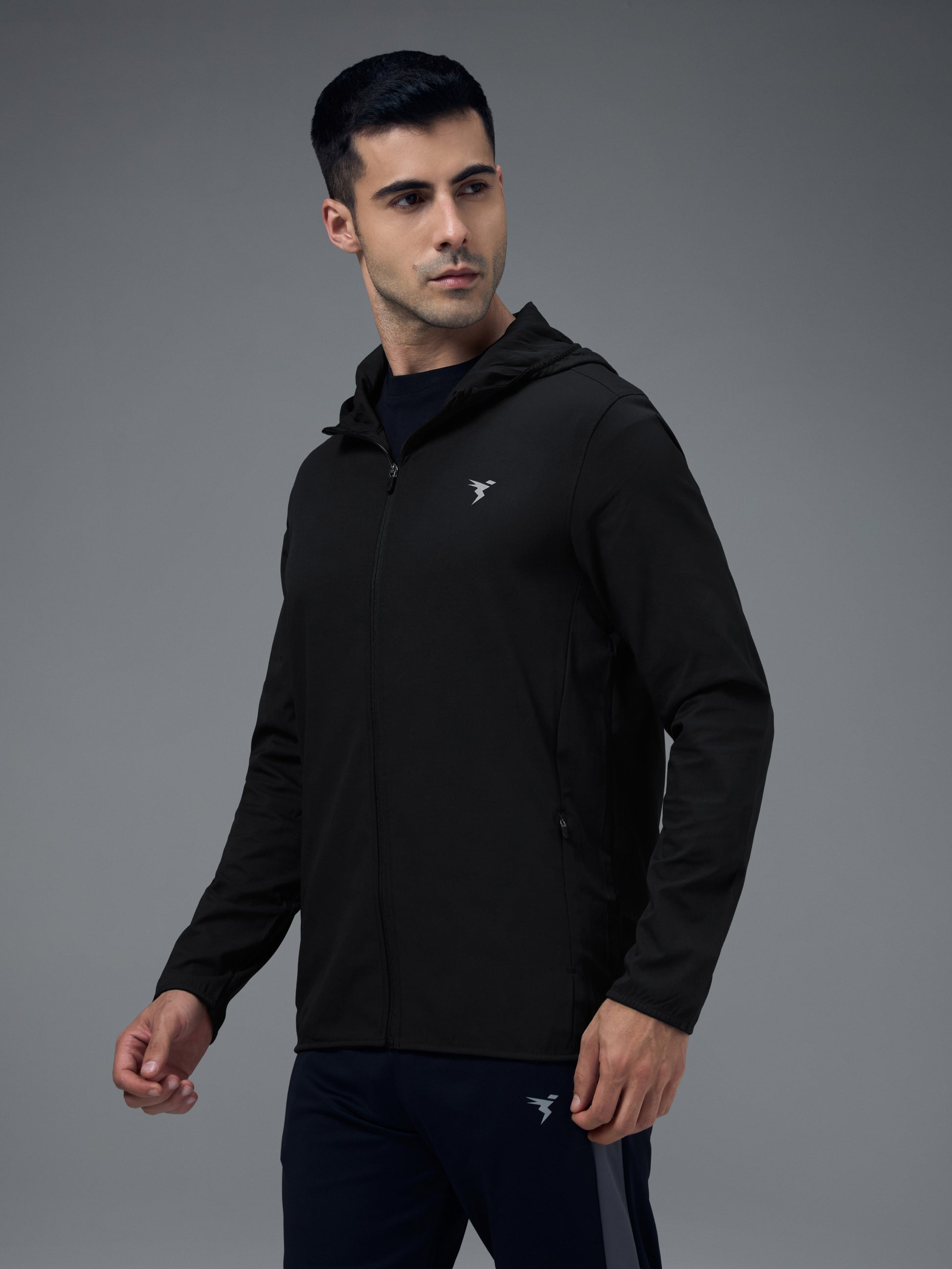 Offer Valid on a Minimum Cart Value of ₹999Men Solid Slim Fit Hooded Jacket with TS FLEXI