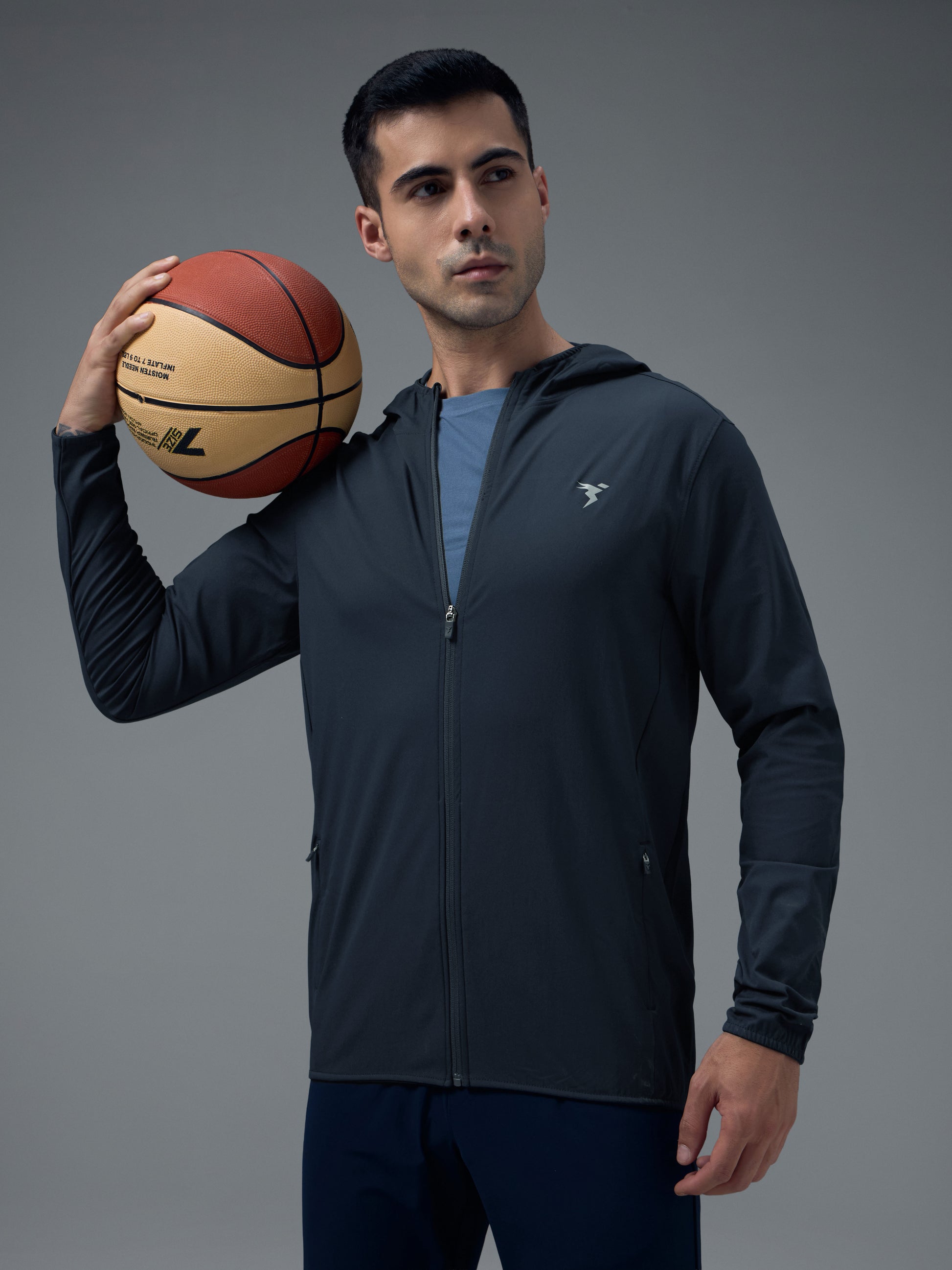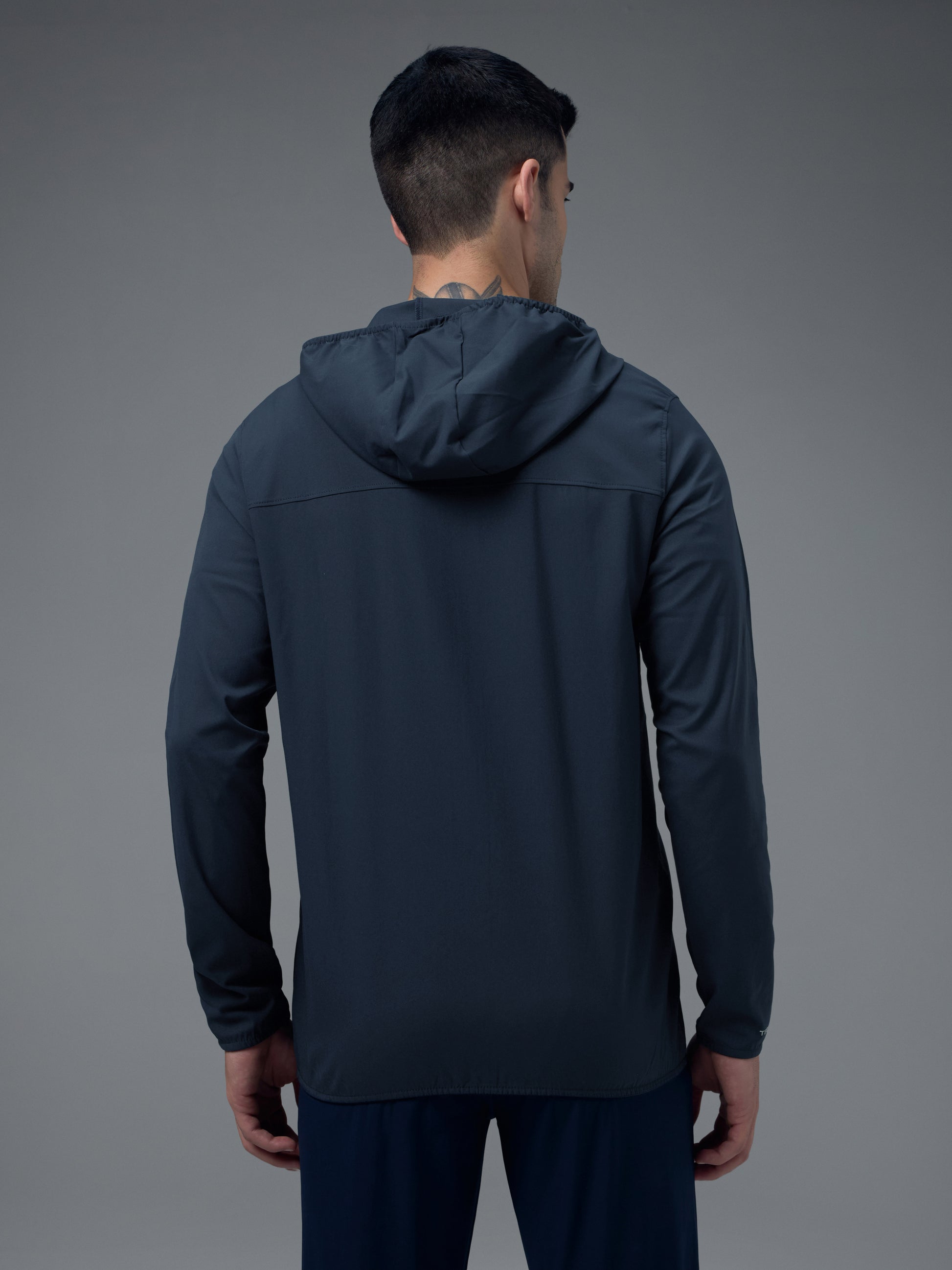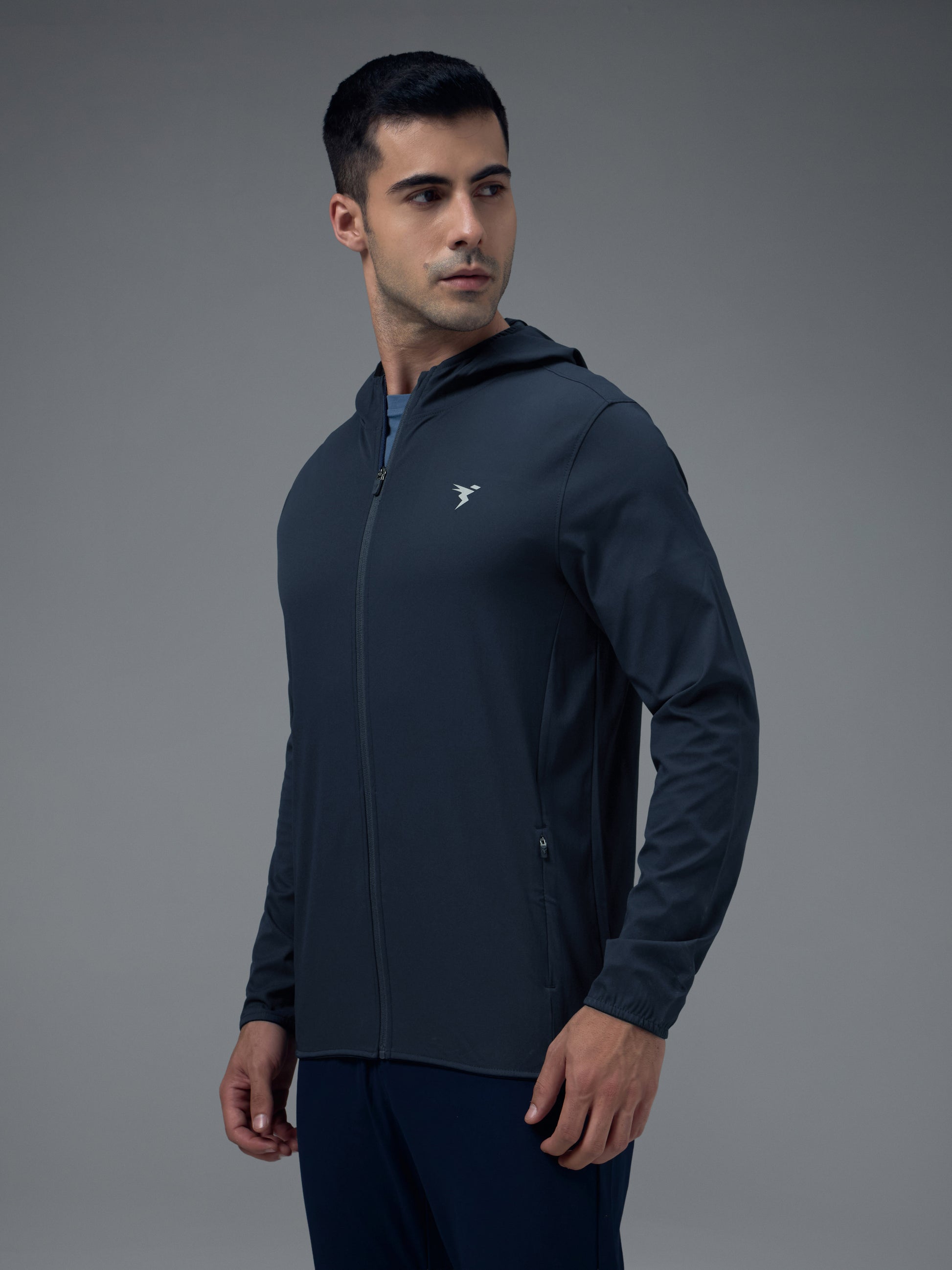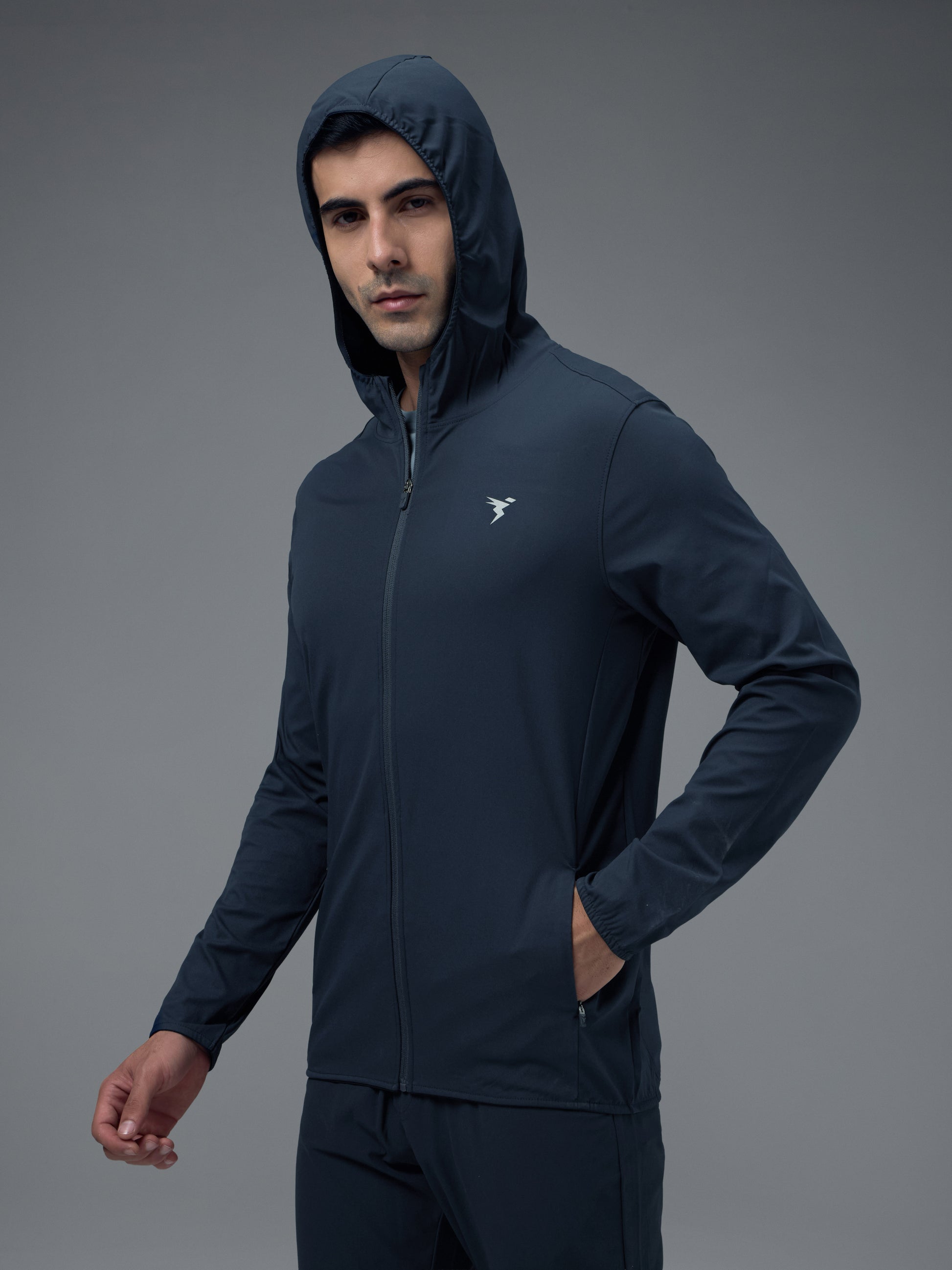 Men Solid Slim Fit Hooded Jacket with TS FLEXI