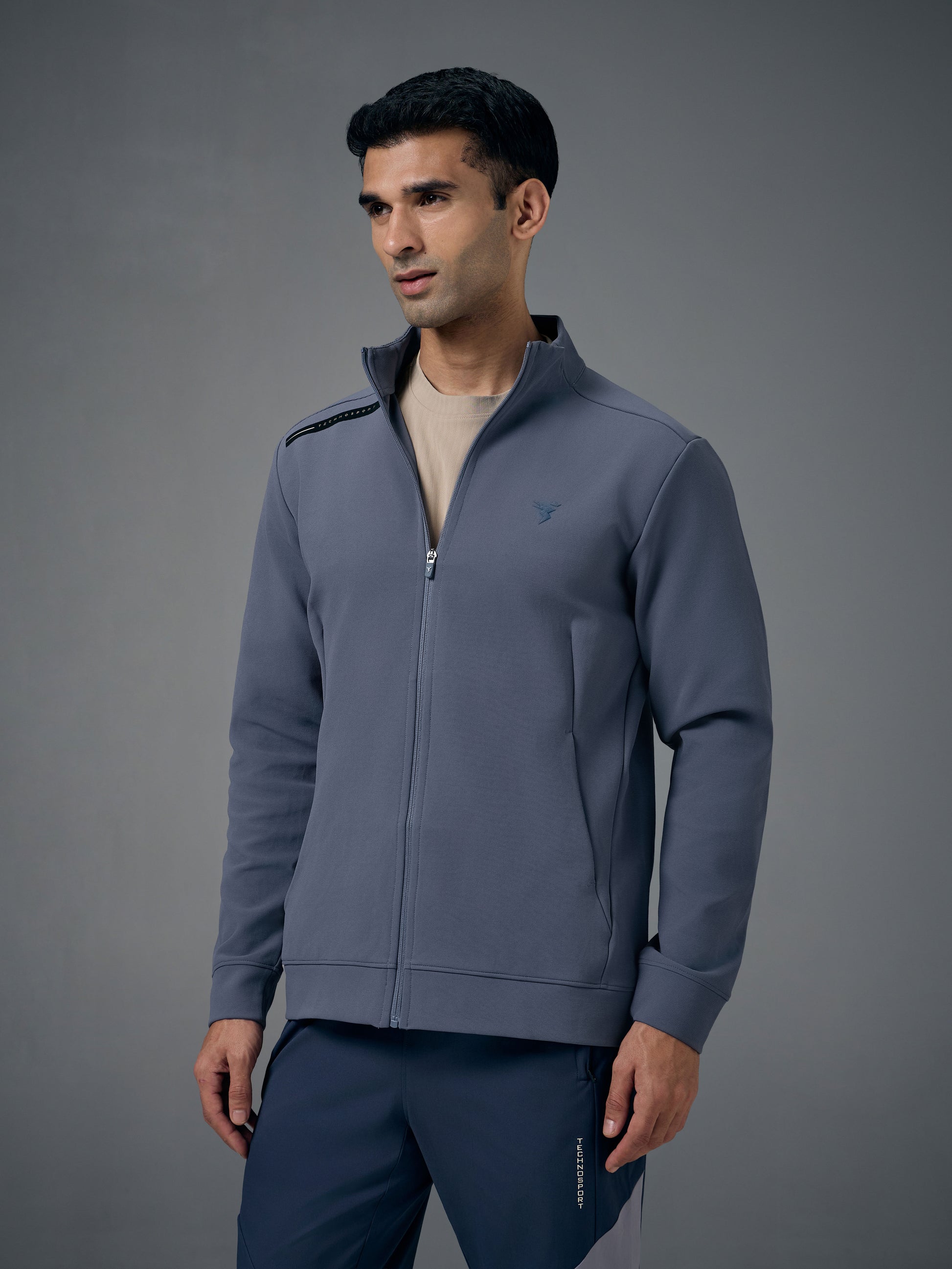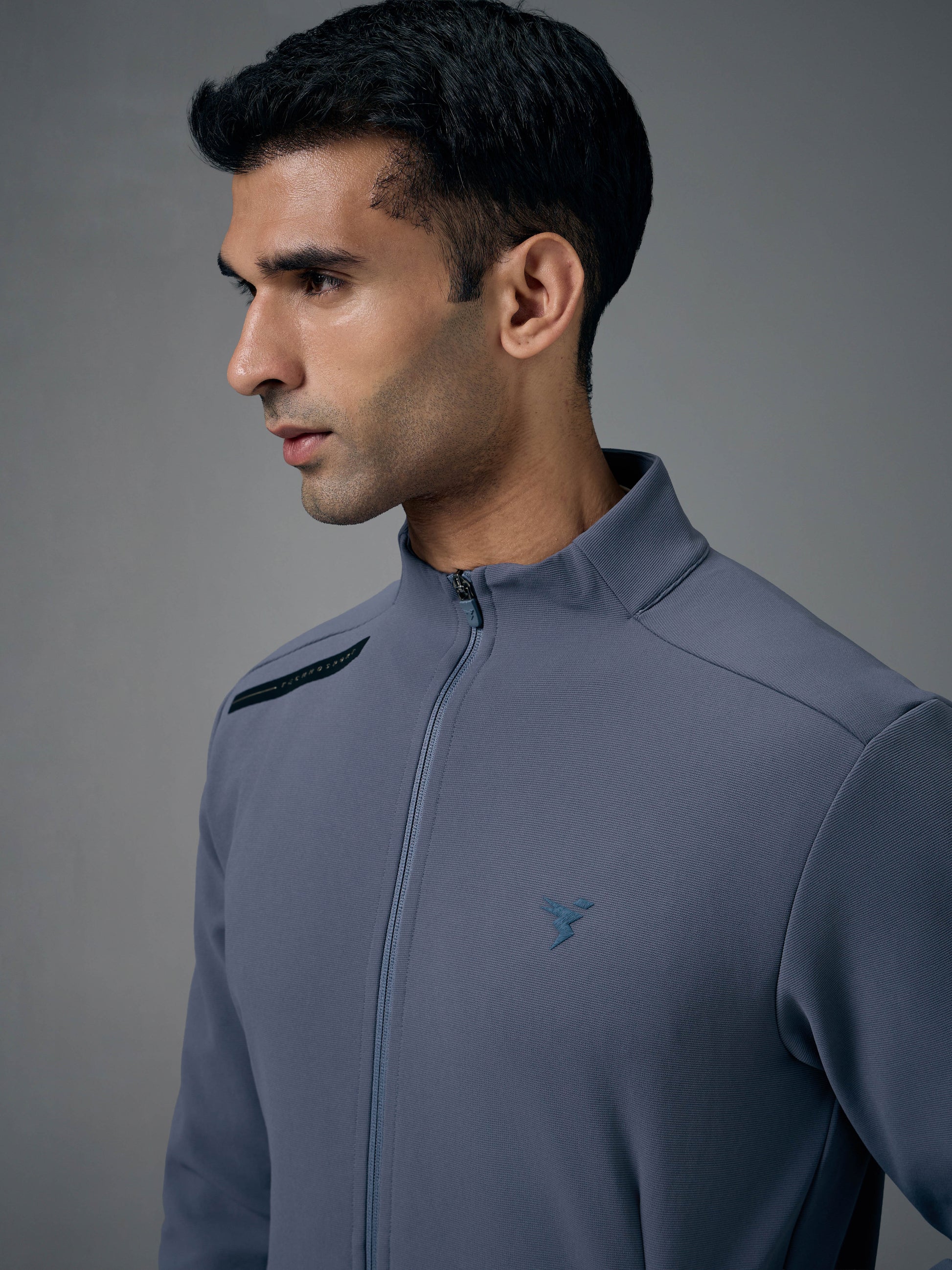 Men Solid Slim Fit Mock Neck Jacket with ELASTO PLUS
