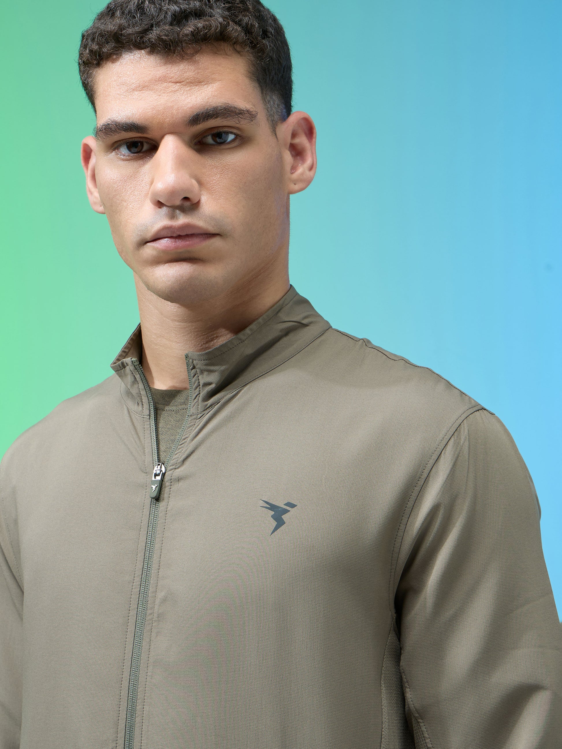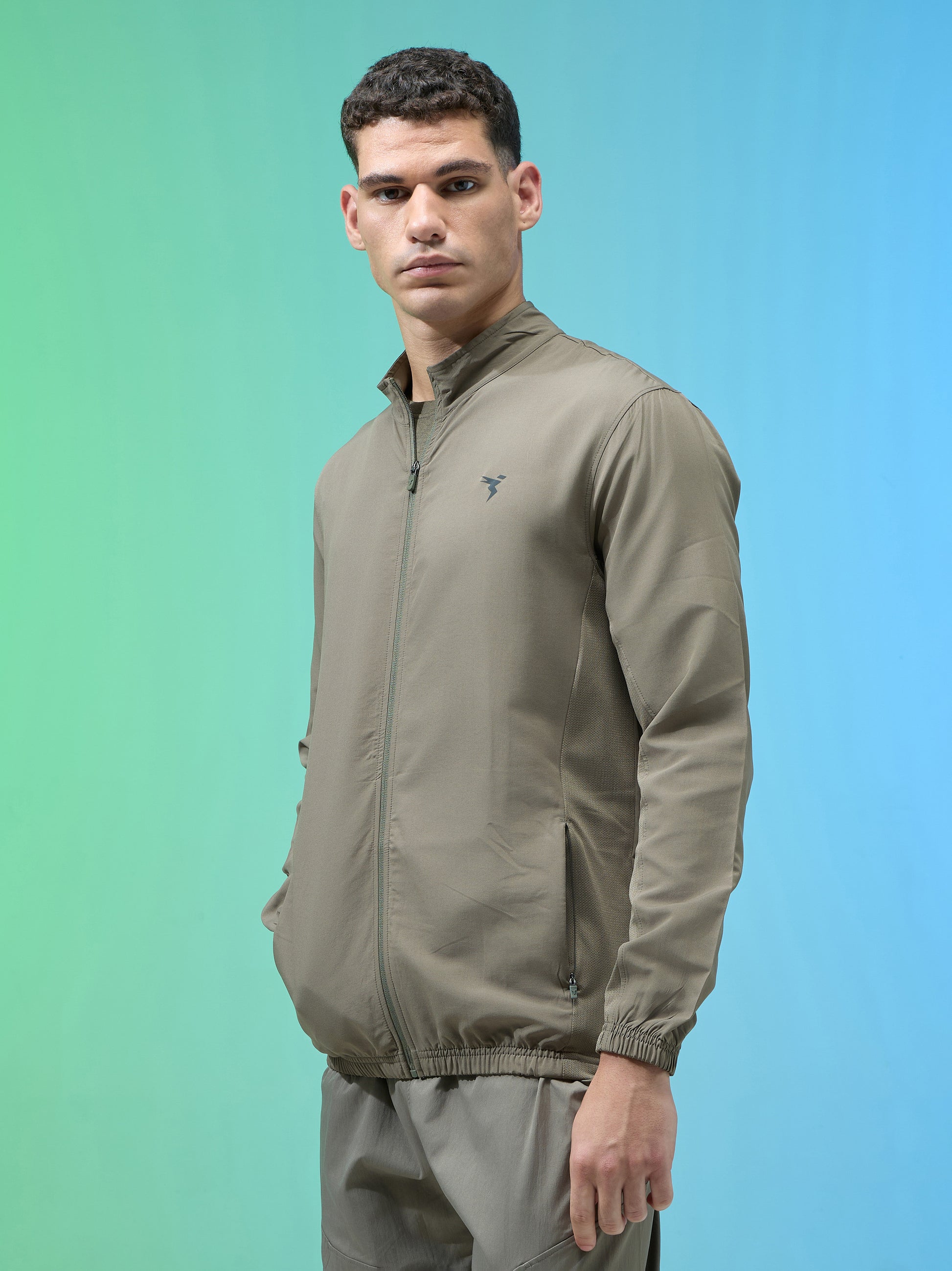 Men Solid Slim Fit Mock Neck Jacket with TECHNOLITE