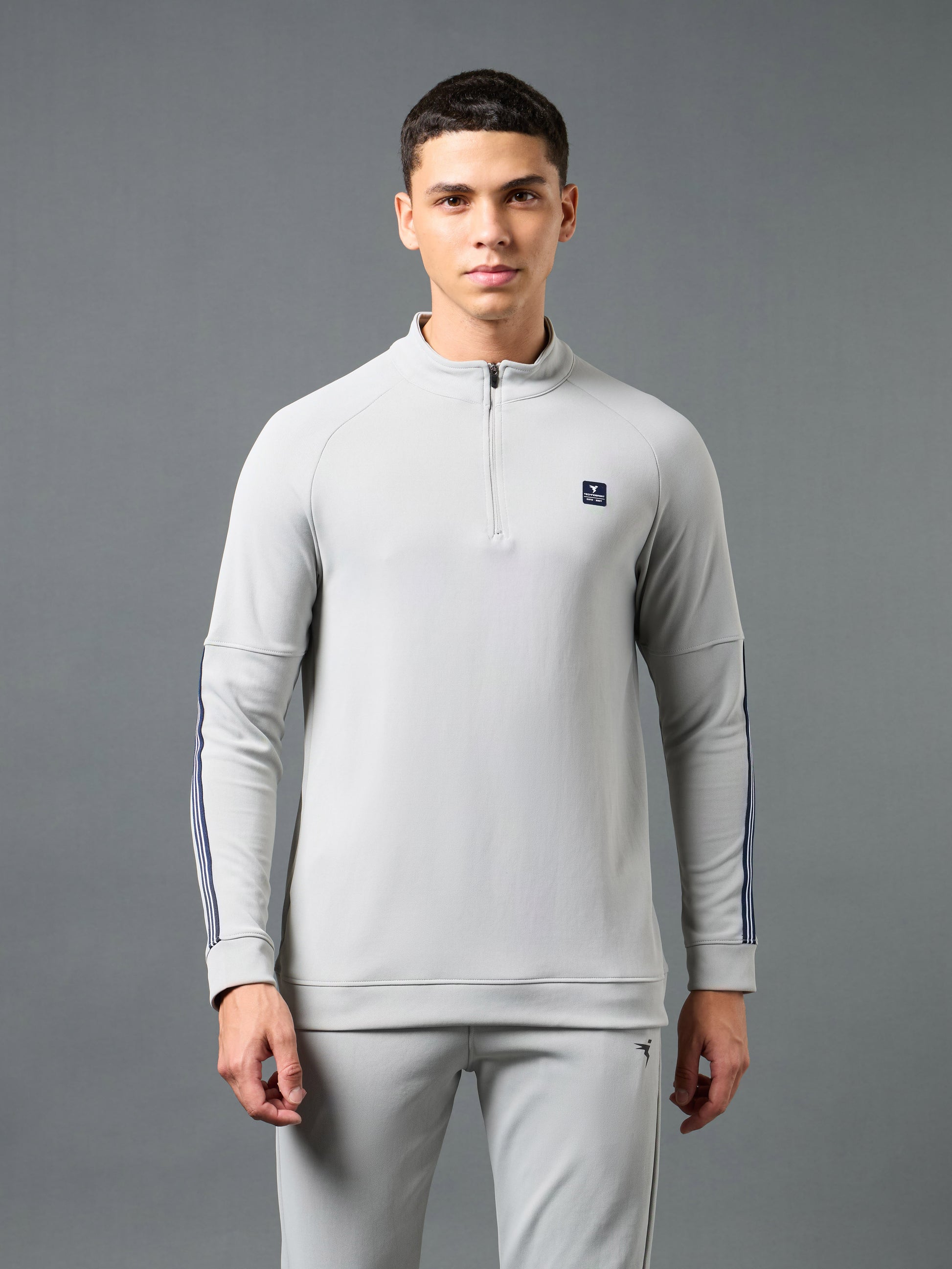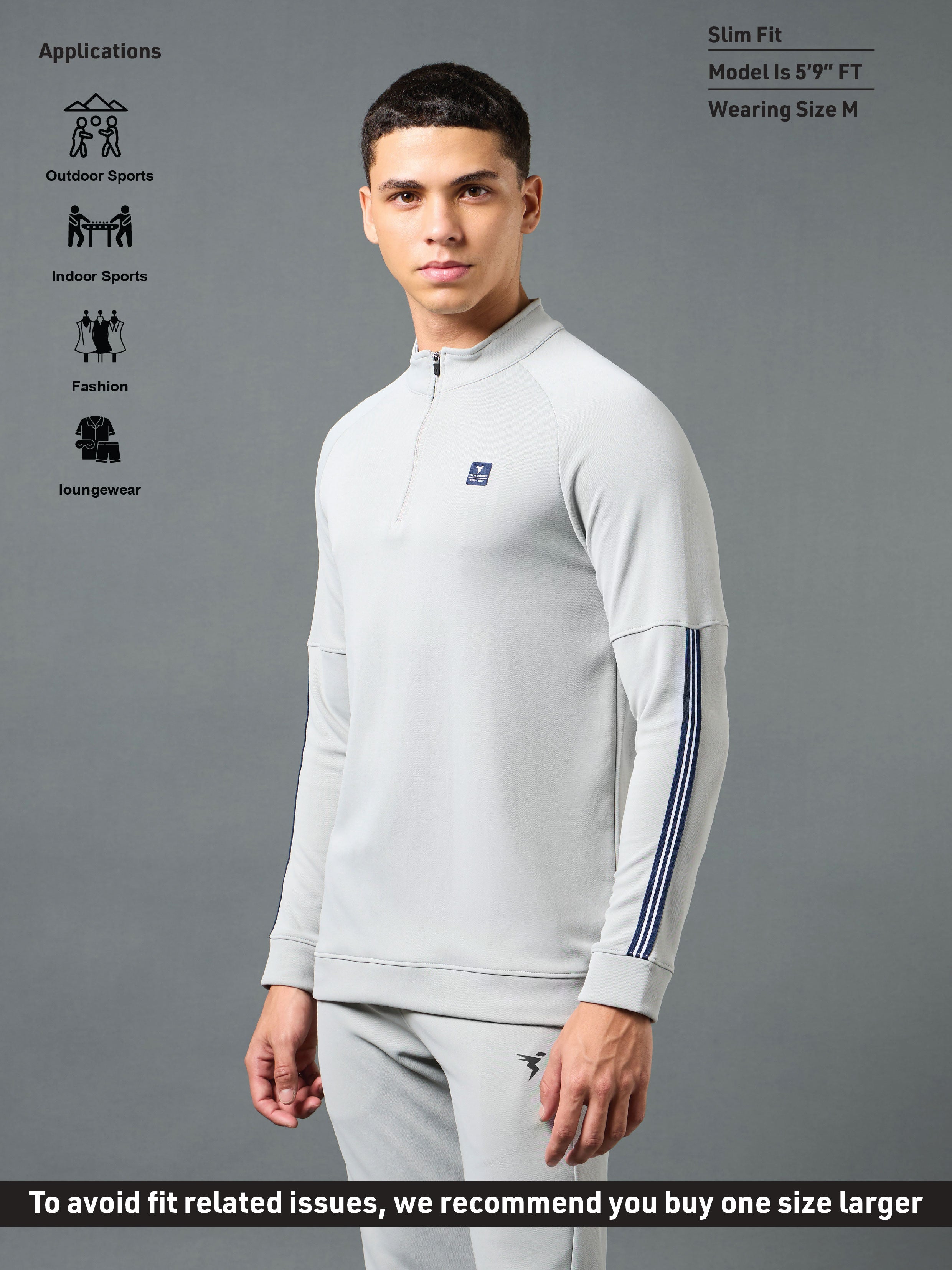Offer Valid on a Minimum Cart Value of ₹999Men Solid Slim Fit Mock Neck Sweatshirt with ELASTO PLUS