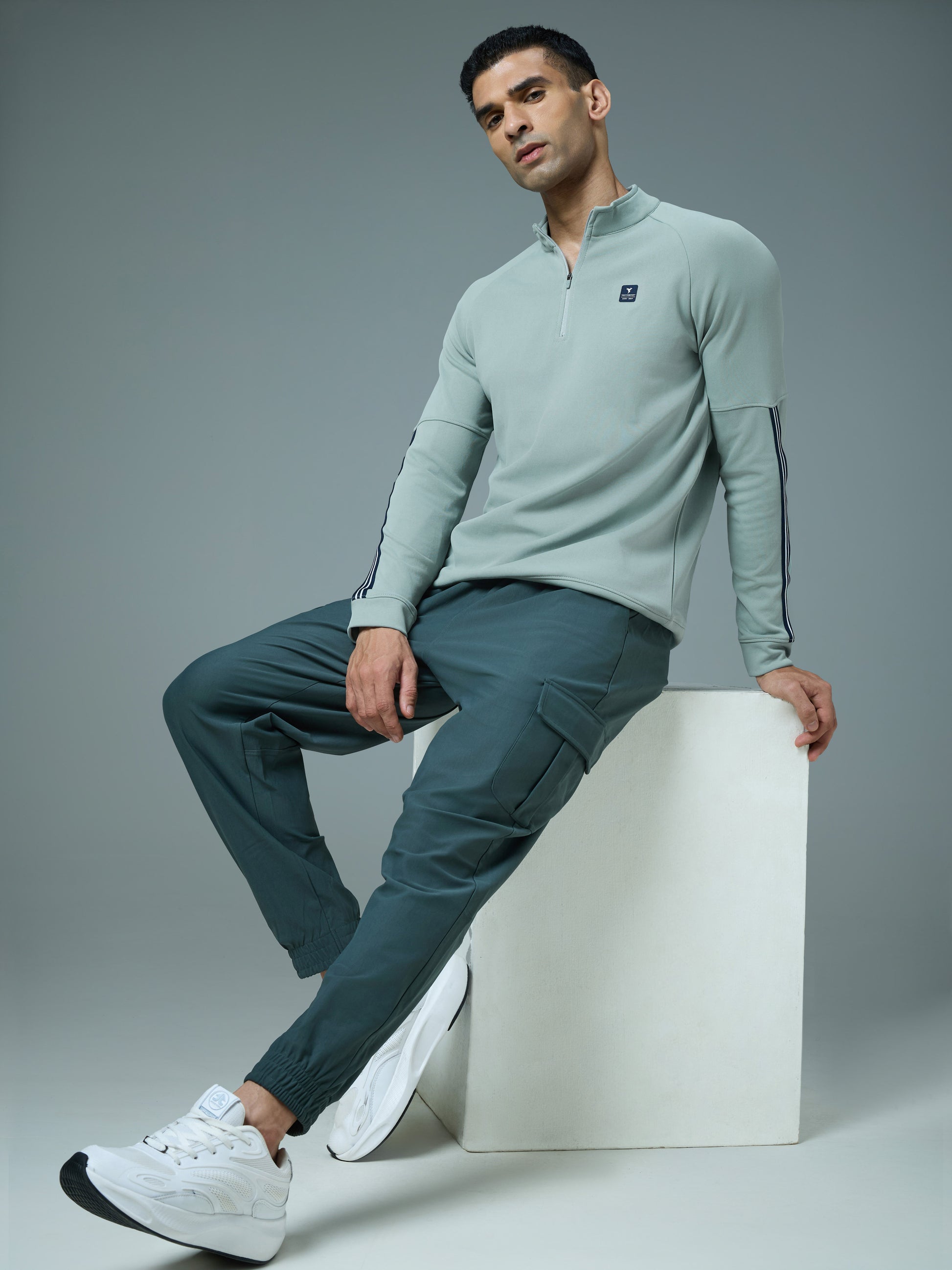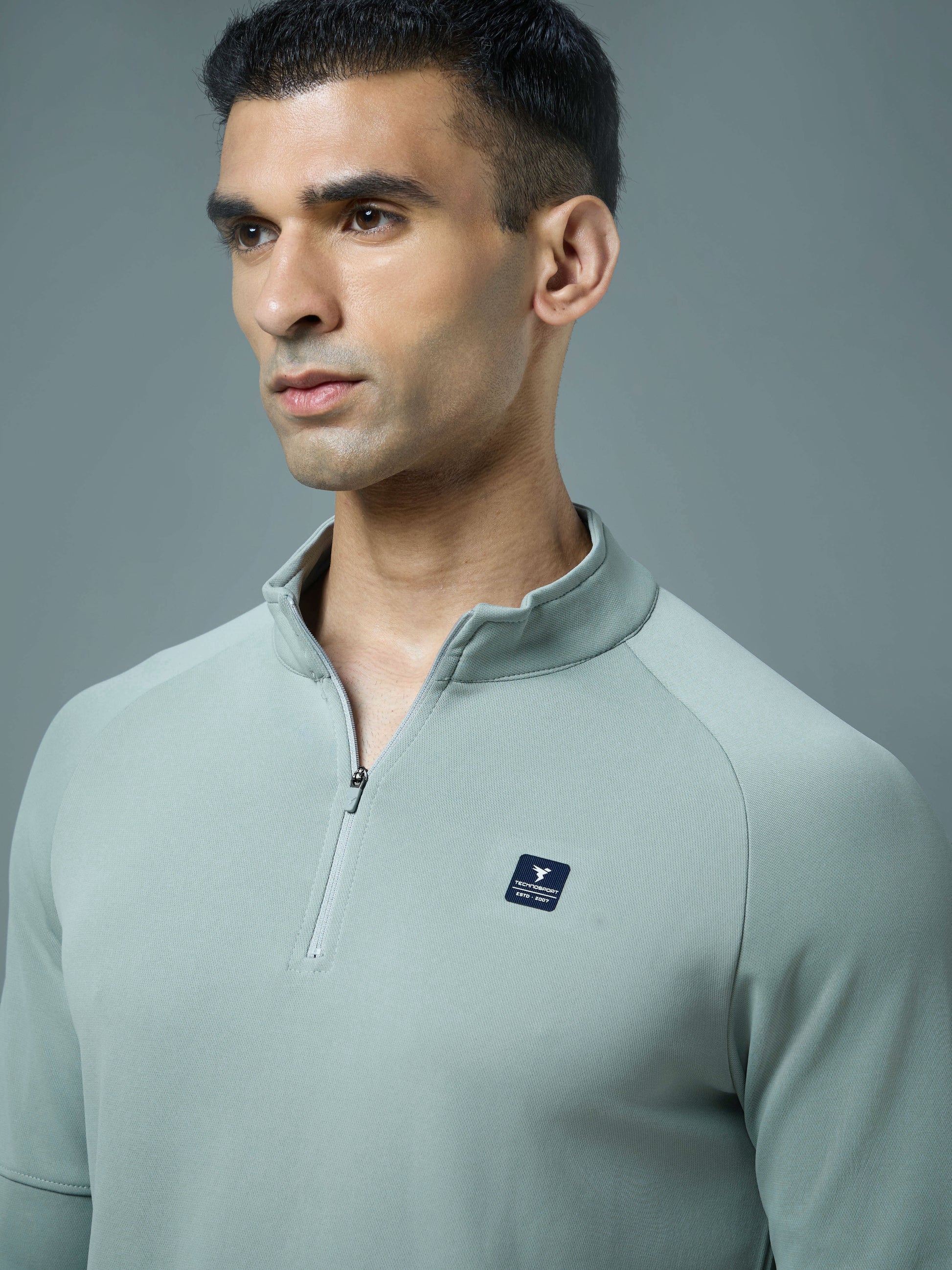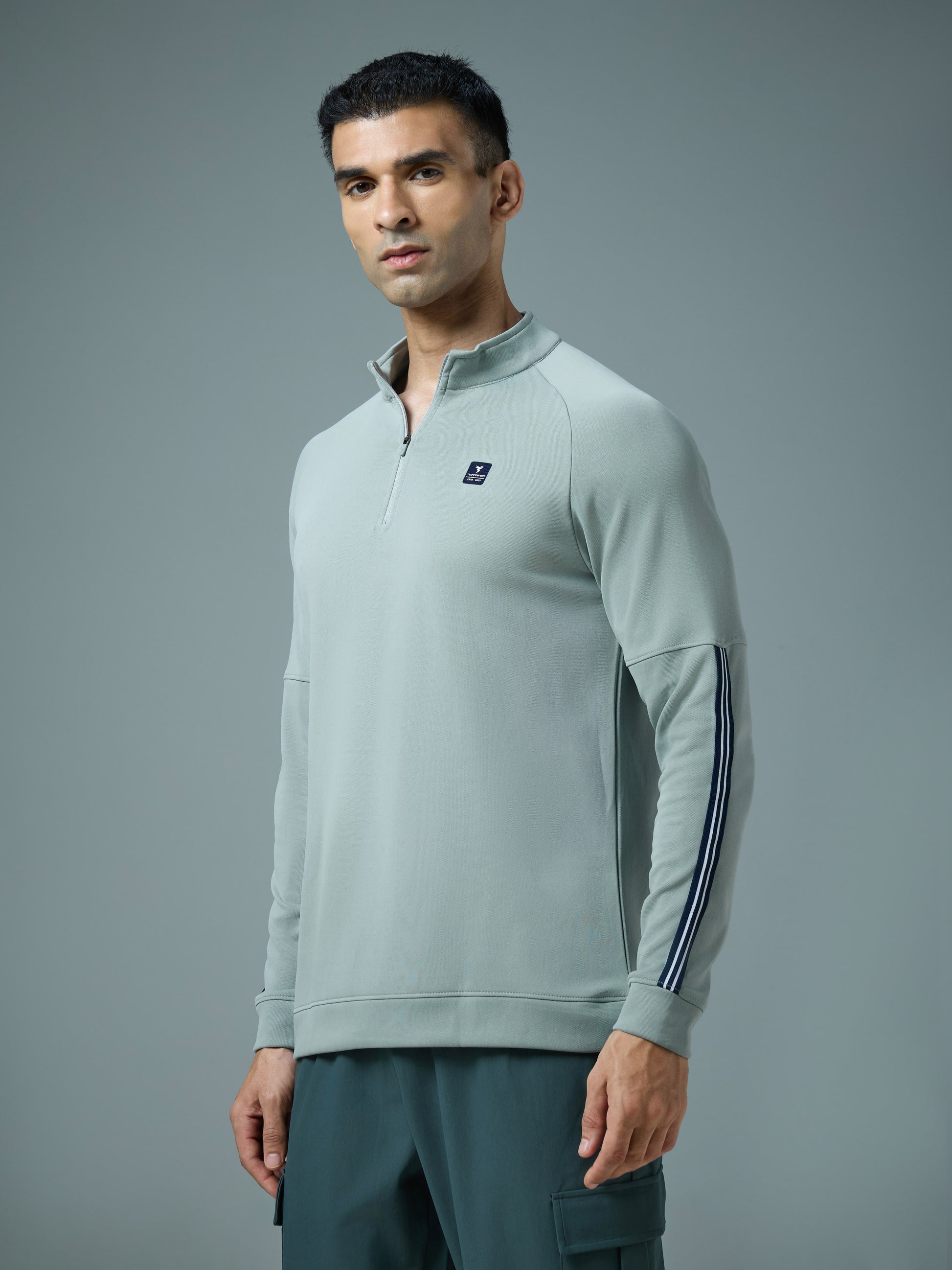 Offer Valid on a Minimum Cart Value of ₹999Men Solid Slim Fit Mock Neck Sweatshirt with ELASTO PLUS