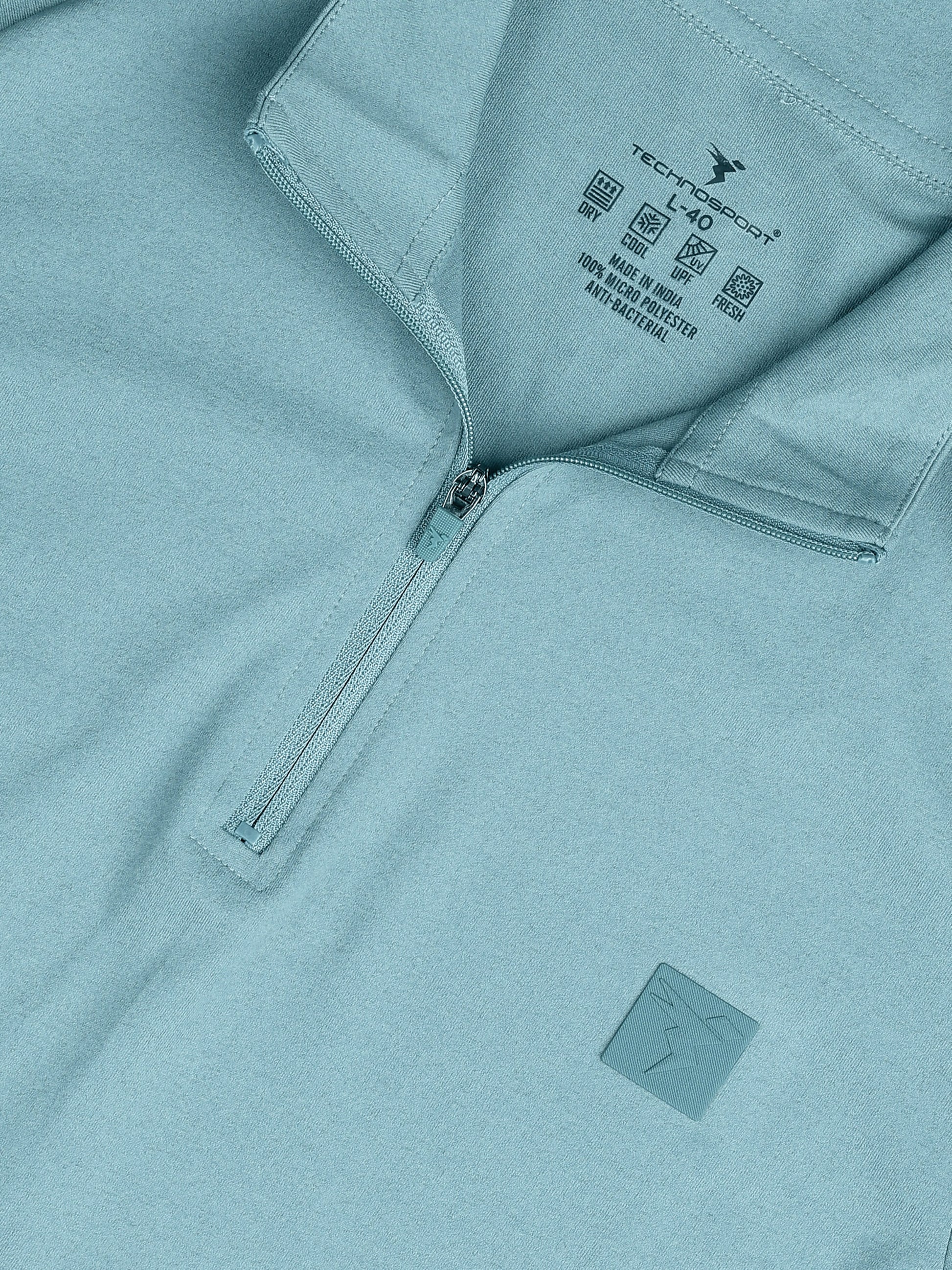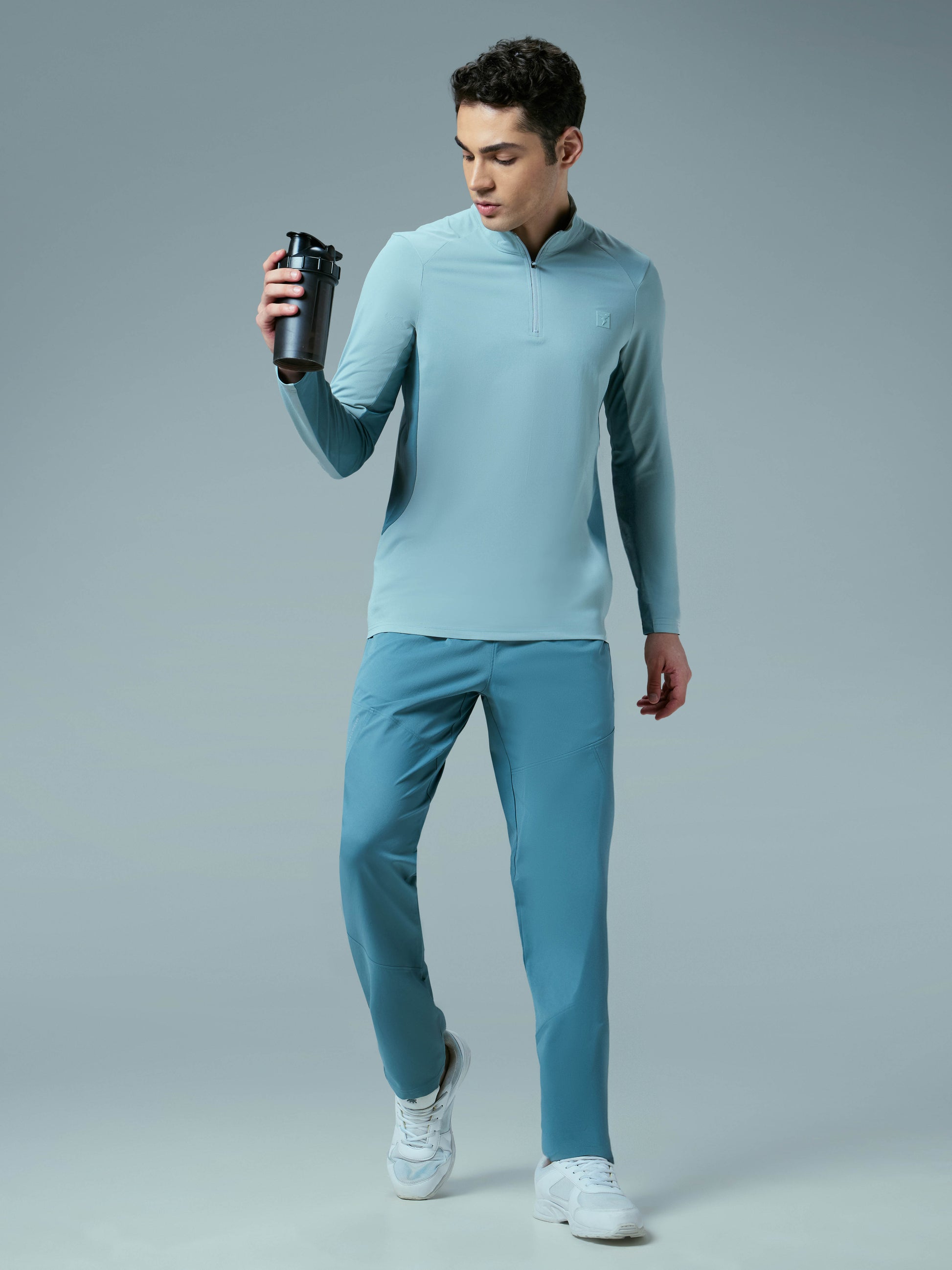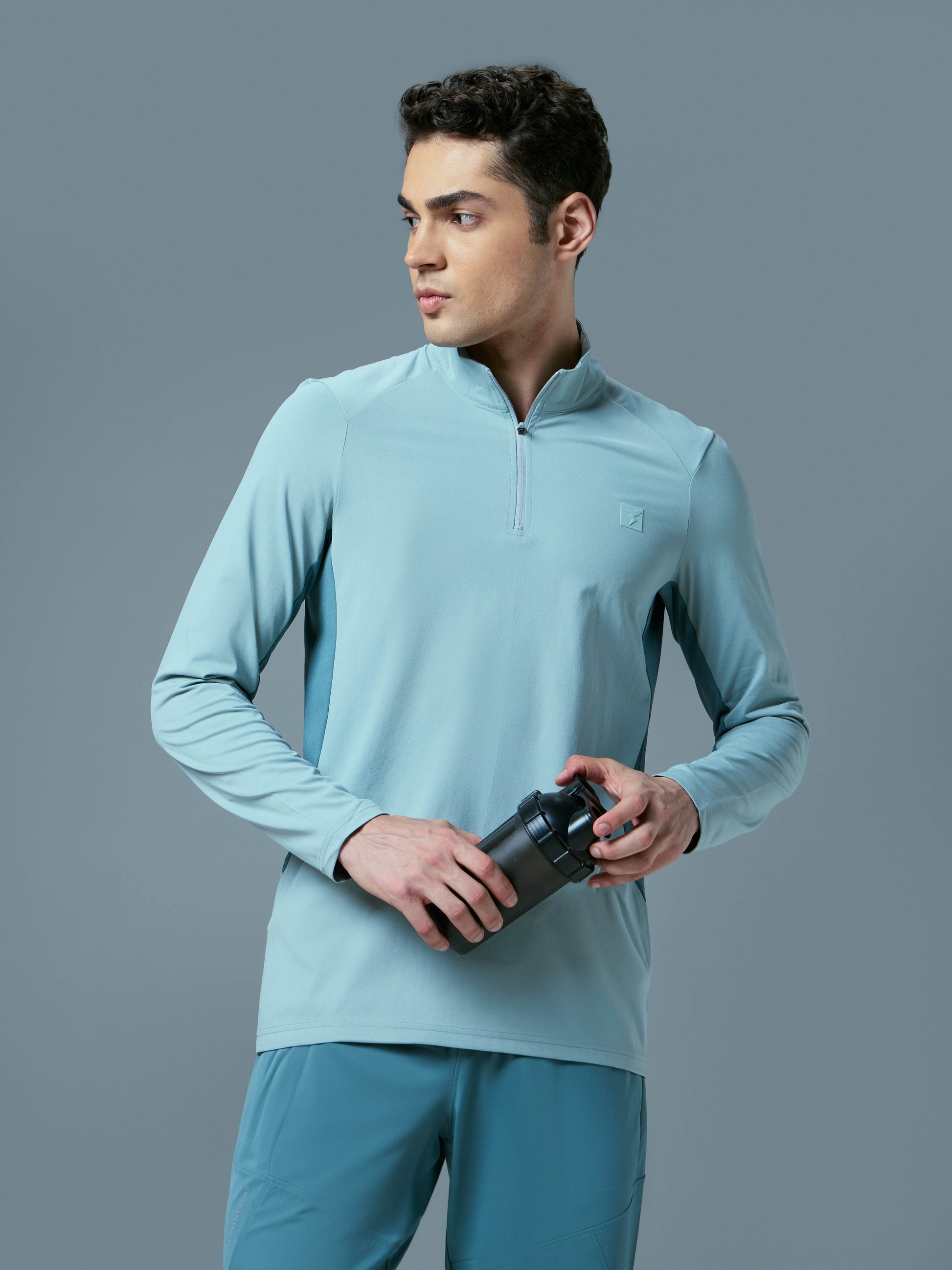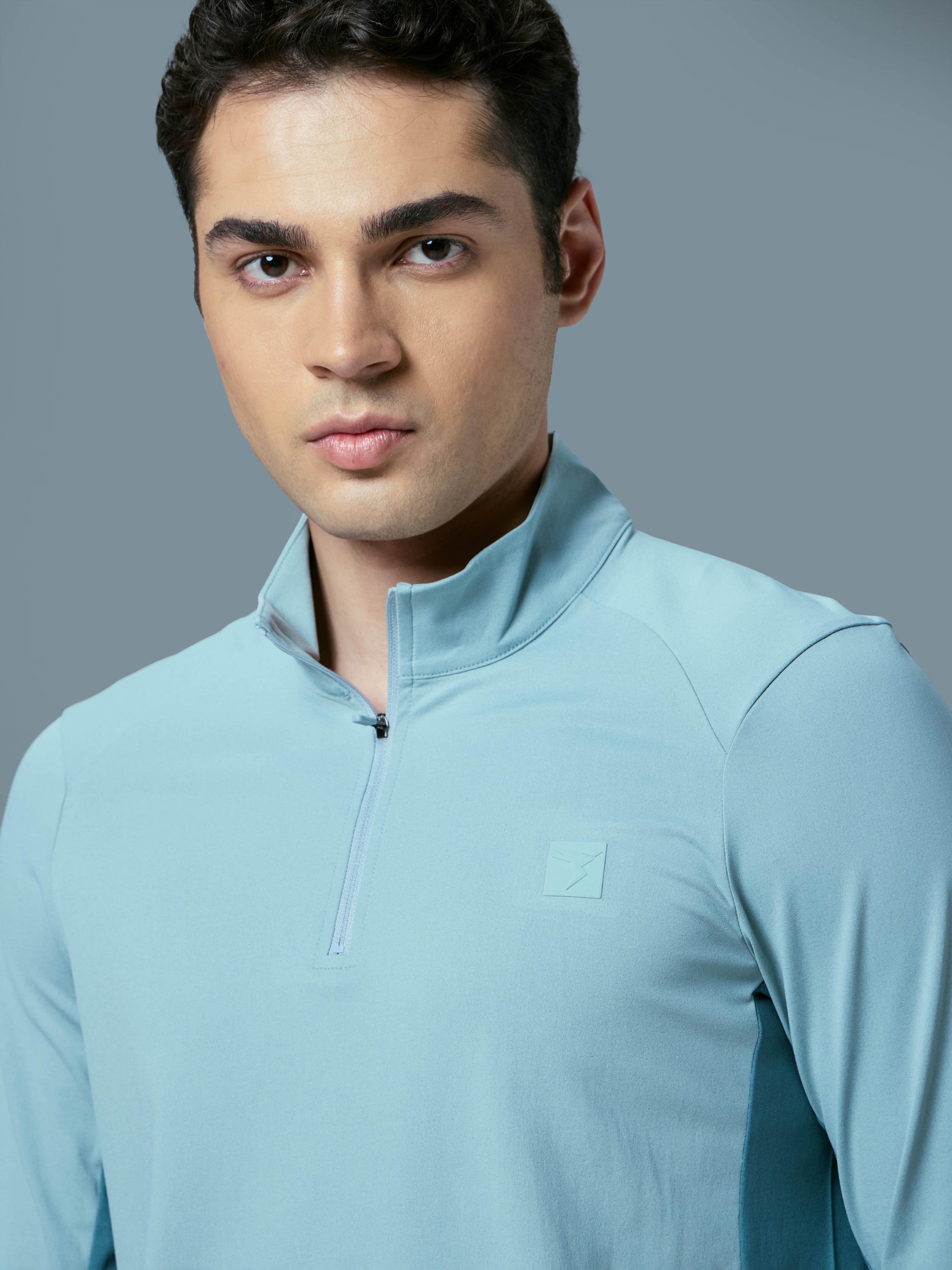Offer Valid on a Minimum Cart Value of ₹999Men Colorblock Slim Fit Mock Neck Sports T-shirt with COTFLEX