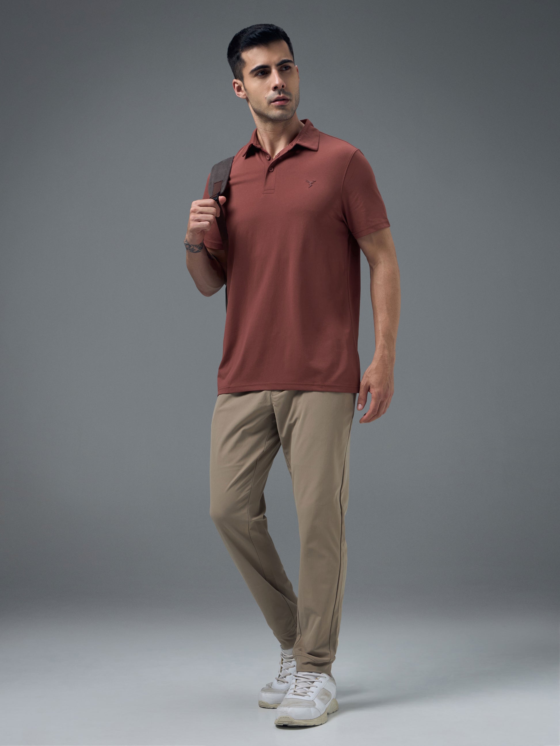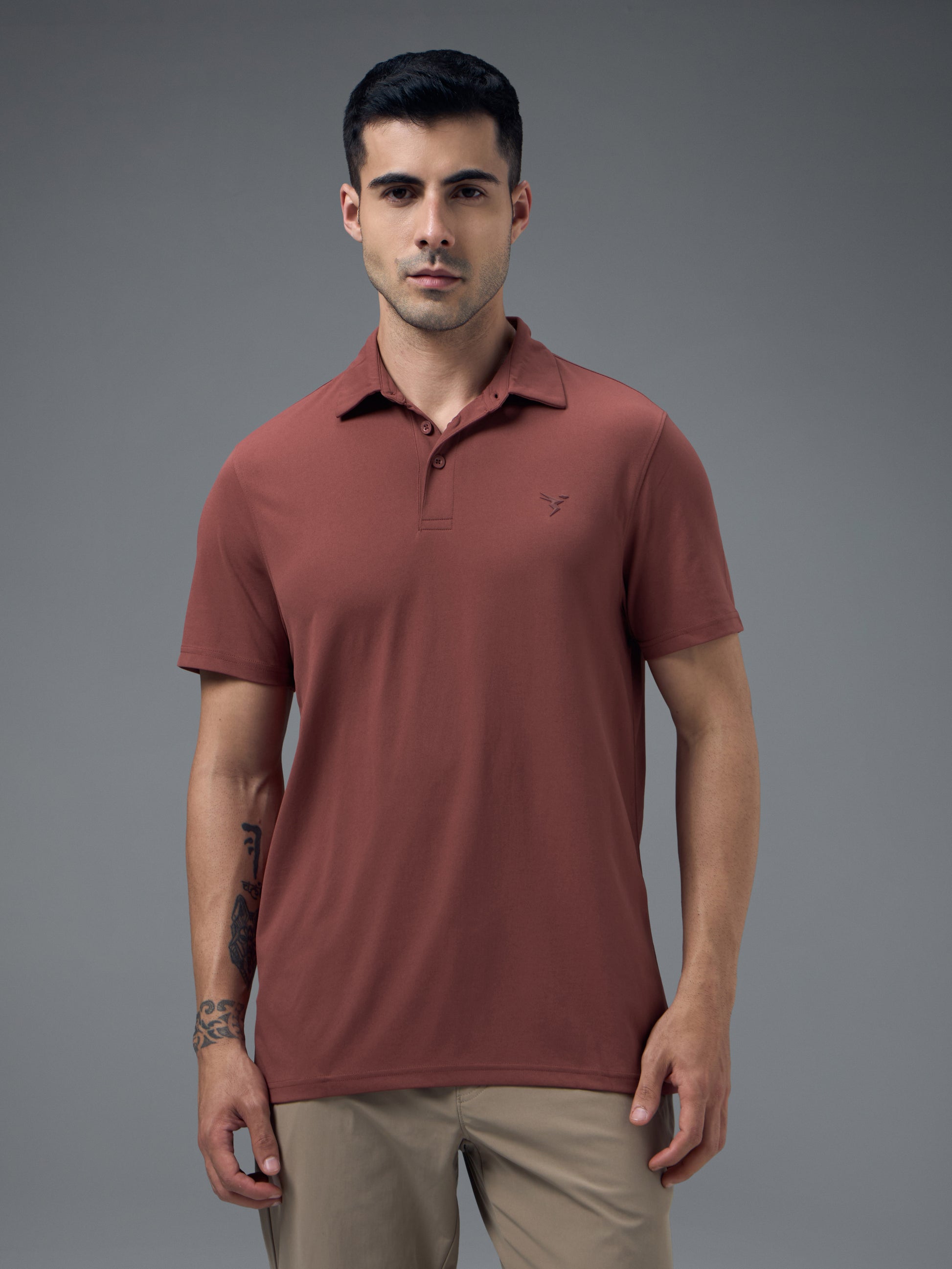 Men Solid Slim Fit Polo T-shirt with COTFLEX