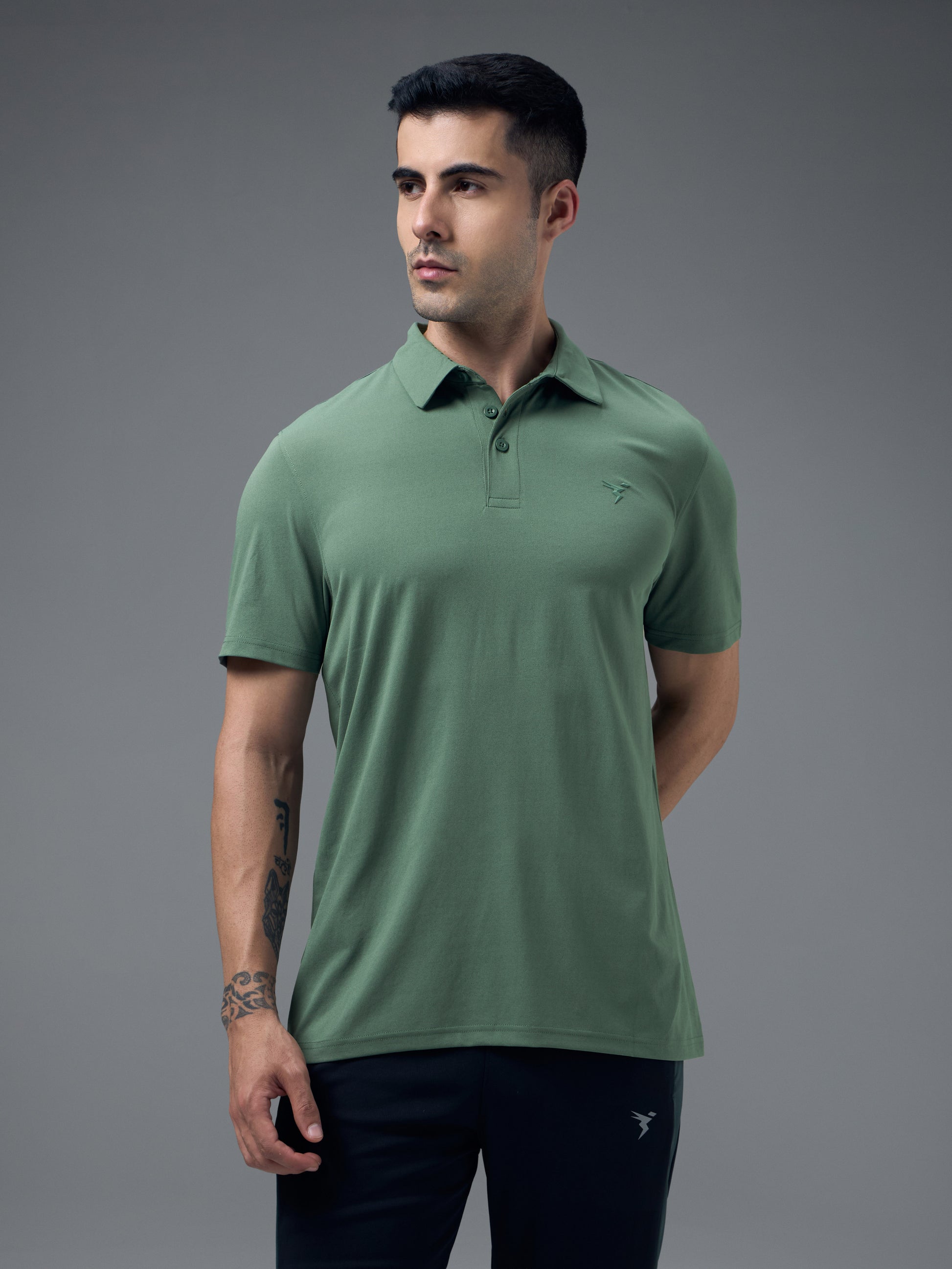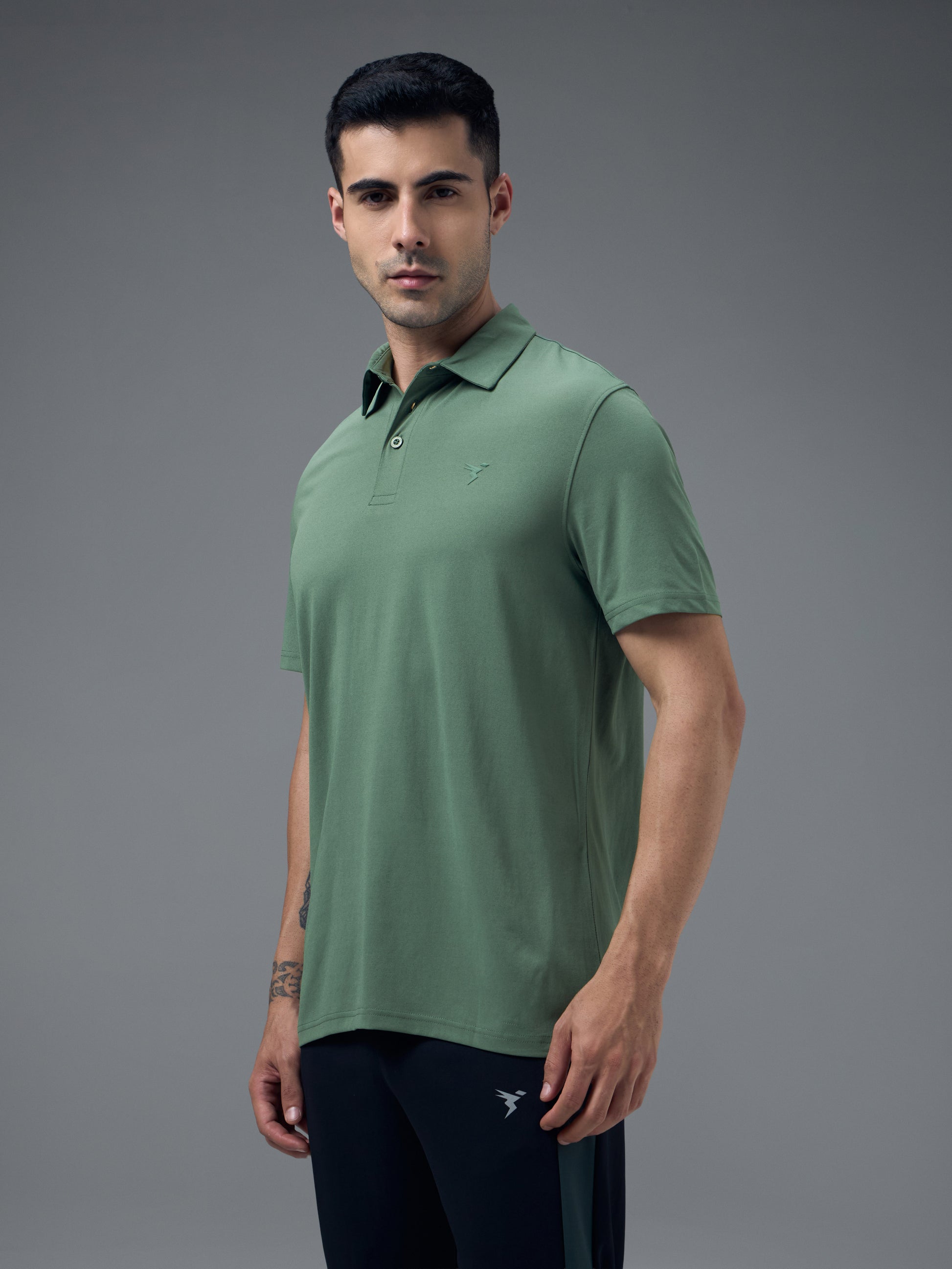 Men Solid Slim Fit Polo T-shirt with COTFLEX