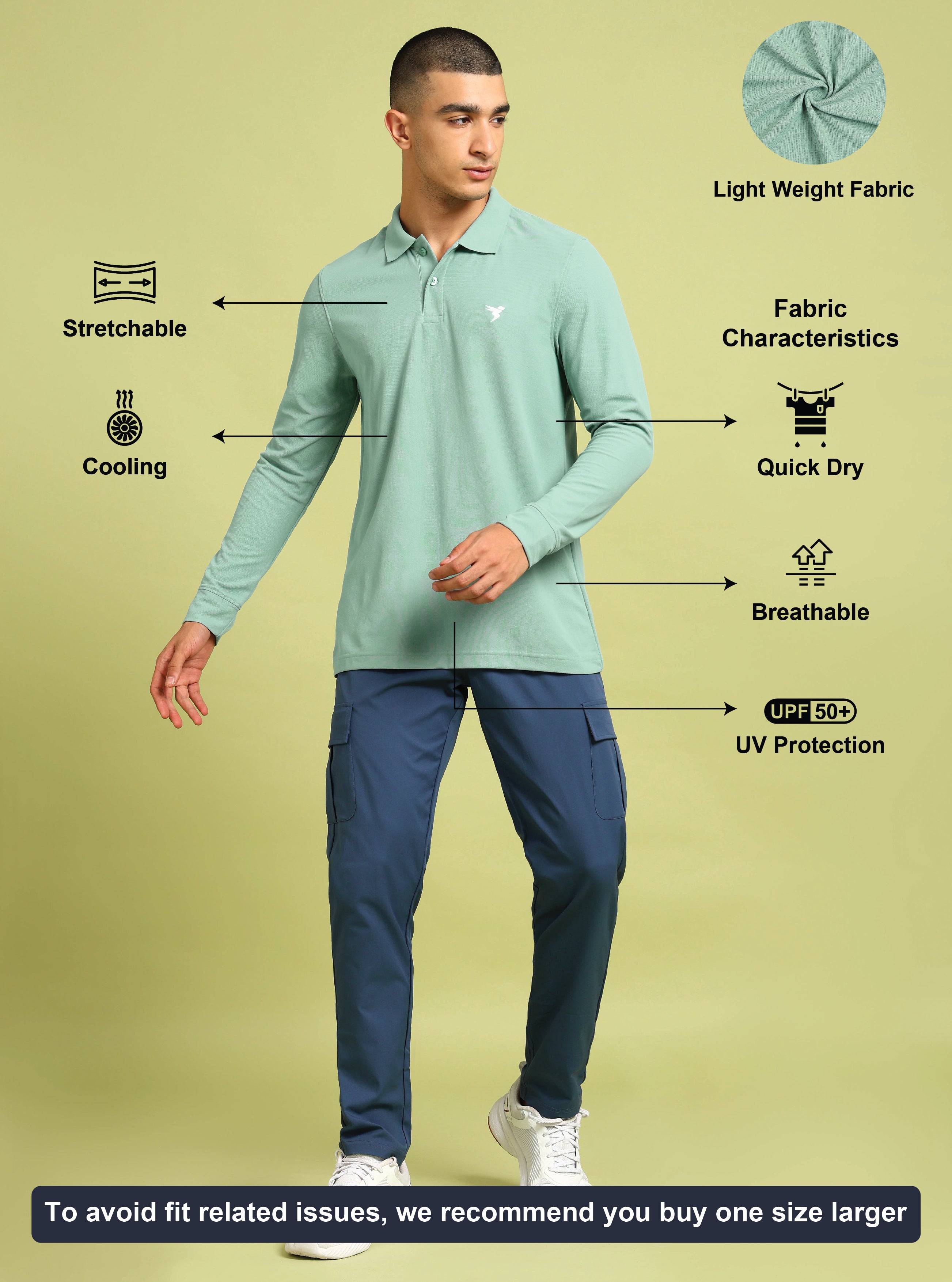 Indulge in supreme comfort with our Men's Polo Active T-Shirt featuring MATPIQ, a super-soft pique fabric with subtle texture. Enjoy UPF50+ sun protection, ODOURFREE freshness, TECHNOGUARD anti-microbial shield, 2-Way Stretch for freedom of movement, Soft & Smooth touch, and Anti Static technology. Embrace natural feel and unmatched style